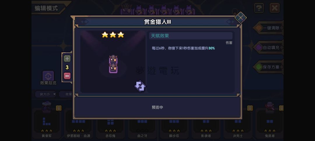 正文摘要:《我的勇者外傳》木忍149對王大秘境 快速閱讀精華 🚀 核心天賦:選擇「賞金獵人」,利用每6秒觸發的30%傷害加成,大幅提升輸出。⏰ 關鍵操作時機: 普攻節奏:在攻速達2.33以上、疊滿10層「青忍傀」後,木忍約每5.7秒能完成兩輪普攻,恰好能銜接「賞金獵人」的觸發時機。技能銜接:在施放「山海復甦」時會短暫中斷普攻,讓兩輪普攻的時間更接近6秒,精準吃到「賞金獵人」加成。 💡 實戰技巧: 開局捨棄:第一次「疾跑」爆發可提前使用,雖然初期傷害較低,但能讓後續爆發更穩定吃到「賞金獵人」加成。魂系與血瓶:在第一次爆發後使用「魂系」,讓後續三次爆發都能吃到爆擊傷害與屬性傷害加成。第二次「血瓶」則配合「卡26層極」在Boss破盾時施放。即時調整:隨時注意「增益狀態欄」,若爆發時機與「賞金獵人」錯開,可短暫停止普攻等待CD,或重新開始挑戰。 ⚔️ 魂寵與魂卡:文章中展示的魂寵與魂卡配置僅供參考,並非最佳解,但提供了一種可行的戰力配置方向。 本文章目錄.article-toc { border: 1px solid #ddd; padding: 15px; background: #f9f9f9; border-radius: 6px; margin: 20px 0; width: 95%;}.toc-title { /* --- 以下是合併進來的 H2 樣式 --- */ font-size: 1.25em; /* 125% */ border-left: 5px solid #2A98DA; border-radius: 2px; padding: 5px 0px 5px 10px; font-weight: bold; margin: 0 0 15px 0; /* 調整了 margin,只留下方 15px */ color: #333; line-height: 1.5; background-color: #f8f8f8; /* --- 樣式合併結束 --- */}.toc-list { list-style: none; padding-left: 0;}.toc-list li { margin: 8px 0;}.toc-list a { color: #2A98DA; text-decoration: none;}.toc-list a:hover { text-decoration: underline;}.back-to-top { display: block; margin-top: 10px; font-size: 0.9em; color: #666;}前言:木忍「賞金獵人」天賦心得分享document.currentScript.previousElementSibling.href = location.href.split('#')[0] + '#intro'; 通關數據一覽document.currentScript.previousElementSibling.href = location.href.split('#')[0] + '#pass_panel'; 天賦配置document.currentScript.previousElementSibling.href = location.href.split('#')[0] + '#talent'; 魂卡搭配document.currentScript.previousElementSibling.href = location.href.split('#')[0] + '#soul_card'; 魂寵搭配document.currentScript.previousElementSibling.href = location.href.split('#')[0] + '#pet'; 魂系與魂珠document.currentScript.previousElementSibling.href = location.href.split('#')[0] + '#soul_system'; 寶石等級document.currentScript.previousElementSibling.href = location.href.split('#')[0] + '#gem_level'; 操作訣竅整理document.currentScript.previousElementSibling.href = location.href.split('#')[0] + '#gameplay_analysis'; 作者聲明document.currentScript.previousElementSibling.href = location.href.split('#')[0] + '#disclaimer'; 我的勇者外傳_木忍149對王大秘境 常見問題Q&Adocument.currentScript.previousElementSibling.href = location.href.split('#')[0] + '#faq'; 前言:木忍「賞金獵人」天賦心得分享 哈囉,各位冒險者!這次要跟大家分享的是《我的勇者外傳》中,木忍攜帶「賞金獵人」天賦,挑戰大秘境的實戰攻略!希望能幫助到想突破瓶頸的玩家們。 為什麼選擇「賞金獵人」天賦? 寶石等級 本次攻略使用的寶石等級為特定等級,主要採用6水壓的畢業配置,這裡就不多做展示囉。 操作訣竅整理 這套「賞金獵人」木忍的實戰操作需要一些精準的時機掌握,請各位玩家一步步跟著練習: 入場準備: 進入房間後,先等待「賞金獵人」的標誌出現。 當標誌出現後,心裡默數到第三秒,立刻重新開始下一場(這樣可以確保「賞金獵人」在開場就進入冷卻,方便後續循環)。 開局爆發: 重開後,立刻點擊「疾跑」和「山海復甦」。 接著馬上施放「極易雷動」和「亂花」。 「亂花」需要持續地開啟與關閉,以便穩定維持「青忍傀」的層數。 上述操作完成後,立即銜接普攻,所有動作盡量要快,確保技能連貫。 魂系與血瓶時機: 等到第一次爆發(即開局施放的技能)打出去後,再使用「魂系」。這樣可以讓接下來的三次爆發都能吃到「小莫魂系」提供的爆擊傷害與屬性傷害加成。 在第二次爆發前,同時使用「魂力」和「血瓶」。 第二次「血瓶」的施放時機,建議採用「卡26層極」的方法,這樣正好可以在Boss被破盾時,同時吃到「血瓶」和「疾跑」的增益效果,打出最大傷害。 戰鬥中調整: 戰鬥期間,請隨時留意螢幕上的「增益狀態欄」。 如果你發現爆發的時間提早於「賞金獵人」的觸發時機,可以考慮短時間內中斷普攻,稍微等待「賞金獵人」的冷卻時間。 如果爆發時間晚於「賞金獵人」,且延遲時間較長,建議可以考慮重新開始挑戰。 要是只差零點幾秒,影響不大,可以繼續普攻,後續的爆發通常能趕上「賞金獵人」的節奏。 作者聲明 最後要特別強調,這個打法不一定是最完美的解法,尤其它並非競速型打法的最佳選擇。這份攻略主要是希望能提供一個上限較高、適合剛好在及格線徘徊的玩家一個新的思路。打法或許還有改進的空間,非常歡迎各位玩家在評論區熱烈討論,分享你們的寶貴意見! 另外,更詳細的一圖流攻略和競速向攻略,建議大家可以等待彼方大佬分享。本攻略中展示的魂寵、魂卡等配置並非最佳解,特別是魂寵部分可能還有提升空間,僅作為個人練度展示,給大家一個參考方向。 《我的勇者外傳》木忍149對王大秘境 重點回顧 選擇「賞金獵人」天賦,是為了最大化稀有的傷害加成效果。透過精準掌握木忍普攻節奏與技能時機,將爆發完美配合「賞金獵人」的6秒CD。開局犧牲第一次爆發,是