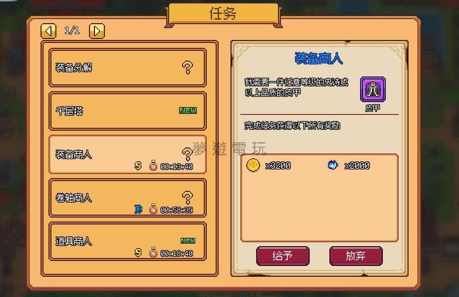 正文摘要:《夢幻地下城:放置好時光》金幣快速入手 快速閱讀精華 💰 金幣用途: 買英雄、買道具,是你強化戰力的核心資源!🚫 賺錢迷思: 光靠推圖、爬塔,賺錢效率超低,根本存不了錢。🔑 兩大致富秘訣: 限時任務: 隨機出現的寶藏任務,CP值爆表,看到就解!裝備倒賣: 把用不到的裝備通通賣掉,等級越高賣越貴! 🛠️ 鐵匠舖小技巧: 製作裝備只耗材料不耗金幣,可以放心大量製造來變現! .article-toc { border: 1px solid #ddd; padding: 15px; background: #f9f9f9; border-radius: 6px; margin: 20px 0; width: 90%;}.article-toc br { display: none;}.toc-title { /* --- 以下是合併進來的 H2 樣式 --- */ font-size: 1.25em; /* 125% */ border-left: 5px solid #2A98DA; border-radius: 2px; padding: 5px 0px 5px 10px; font-weight: bold; margin: 0 0 15px 0; /* 調整了 margin,只留下方 15px */ color: #333; line-height: 1.5; background-color: #f8f8f8; /* --- 樣式合併結束 --- */}.toc-list { list-style: none; padding-left: 0;}.toc-list li { margin: 8px 0;}.toc-list a { color: #2A98DA; text-decoration: none;}.toc-list a:hover { text-decoration: underline;}.back-to-top { display: block; margin-top: 10px; font-size: 0.9em; color: #666;}本文章目錄快速累積財富!金幣賺取兩大核心策略document.currentScript.previousElementSibling.href = location.href.split('#')[0] + '#fast_money'; - 策略一:掌握「限時任務」的致富機會document.currentScript.previousElementSibling.href = location.href.split('#')[0] + '#strategy_1'; - 策略二:把鐵匠舖當提款機!善用販售裝備document.currentScript.previousElementSibling.href = location.href.split('#')[0] + '#strategy_2'; 《夢幻地下城》金幣賺錢 常見問題Q&Adocument.currentScript.previousElementSibling.href = location.href.split('#')[0] + '#faq'; 嘿,各位《夢幻地下城:放置好時光》的冒險者們!是不是常常覺得口袋空空,金幣永遠不夠用?看到商店裡帥氣的英雄夥伴,或是超實用的強力道具,卻只能含淚說再見? 別擔心!老司機告訴你,在這遊戲裡,如果你只知道埋頭刷副本、挑戰千層塔,那注定是個窮忙族。想要快速發家致富,你得用點聰明的小撇步!今天這篇攻略,就是要來傳授大家兩招最實在的賺錢大法,讓你輕鬆賺飽金幣,買遍天下無敵手! 快速累積財富!金幣賺取兩大核心策略 想在《夢幻地下城:放置好時光》裡財富自由嗎?把下面這兩招學起來就對了! 策略一:掌握「限時任務」的致富機會 遊戲玩到一半,有時候會突然跳出一些「限時任務」。大家眼睛可要睜大點,這就是官方送錢來的機會啊!這些任務通常內容很簡單,可能只是需要你繳交一些資源,或是達成個小目標,但給的金幣獎勵卻比平常的任務豐厚超級多! 雖然它們出現的時機很隨機,但只要一看到,二話不說,馬上去解就對了!這絕對是你快速累積第一桶金的最佳管道,錯過可是會捶心肝的喔! 《夢幻地下城》快速賺錢 重點回顧 別再傻傻推圖,賺錢效率太低了。盯緊限時任務,這是官方給的福利,錯過就沒了。把刷到的材料拿去鐵匠舖免費製作裝備,再把用不到的全部賣掉,是穩定又高效的賺錢方法。 以下廣告滑動後還有帖子內容var custom_call_MIR = function (params) {if ( params === null || params.hasAd === false ) {var divRowSide;for (let index = 0; index < ONEADs.length; index++) {if (ONEADs[index].pub.player_mode === "mobile-inread") {divRowSide = ONEADs[index].pub.slotobj;}}var ins = document.createElement('ins');ins.className = 'clickforceads';ins.setAttribute('style', 'display:inline-block;');ins.setAttribute('data-ad-zone', '18264');divRowSide.appendChild(ins);var js = document.createElement('script');js.async = true;js.type = 'text/javascript';js.setAttribute('src', '//cdn.holmesmind.com/js/init.js');js.onload = function(){console.log('[ONEAD MIR] ClickForce Loaded');};divRowSide.appendChild(js);}};var _ONEAD = {};_ONEAD.pub = {};_ONEAD.pub.slotobj = document.getElementById("oneadMIRDFPTag");_ONEAD.pub.slots = ["div-onead-ad"];_ONEAD.pub.uid = "1000509";_ONEAD.pub.external_url = "https://onead.onevision.com.tw/";_ONEAD.pub.scopes = ["spotbuy", "speed"];_ONEAD.pub.player_mode_div = "div-onead-ad";_ONEAD.pub.player_mode = "mobile-inread";_ONEAD.pub.queryAdCallback = custom_call_MIR;var ONEAD_pubs = ONEAD_pubs || [];ONEAD_pubs.push(_ONEAD);var truvidScript = document.createElement('script'); truvidScript.async = true; truvidScript.setAttribute('data-cfasync','false'); truvidScript.type = 'text/javascript'; truvidScript.src = '//stg.truvidplayer.com/index.php?sub_user_id=597&widget_id=3309&playlist_id=2381&m=a&cb=' + (Math.random() * 10000000000000000); var currentScript = document.currentScript || document.scripts[document.scripts.length - 1]; currentScript.parentNode.insertBefore(truvidScript, currentScript.nextSibling); 《夢幻地下城》金幣賺錢 常見問題Q&A Q:除了這兩種方法,還有其他賺金幣的方式嗎? A:目前來說,效益最高、最快的就是「限時任務」和「販售裝備」這兩招。雖然推圖和爬塔也會給一點金幣,但真的只是零錢而已,想快速存錢還是得靠這兩個主要管道。 Q:那些低品質的裝備真的可以全賣掉?萬一以後有用怎麼辦? A:放心賣吧!只要你確認是品質低而且自己隊伍用不到的裝備,直接變現換成金幣絕對是最好的選擇。遊戲進程中你很快就會拿到更高等級、更好的裝備,留著那些低階裝備只是佔位置而已。 Q:在鐵匠舖做裝備真的不用錢?那要消耗什麼? A:真的不用金幣!製作裝備主要消耗的是你在各大副本裡辛苦刷來的「材料」。這也是為什麼說這個方法很棒,因為它是個零成本、高報酬的賺錢方式。 Q:限時任務多久才會出現一次啊?會不會錯過? A:限時任務的出現是隨機的,