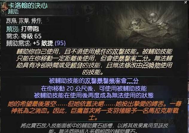 裝備選擇與詞綴建議 通用提示 權杖搭配: 若搭配權杖,並串聯暴擊時施放輔助、火焰之捷、閃電之捷,則至少需要110點智慧。 深淵通貨運用: 所有裝備都可以刻意空出一條詞綴,然後使用深淵通貨,褻瀆出一條額