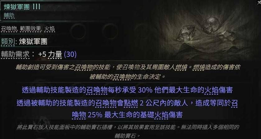正文摘要:《流亡黯道2》泰坦牧羊人BD 快速閱讀精華 🚀 核心玩法: 利用煉獄軍團輔助寶石,將召喚物生命轉換為角色高額點燃傷害,實現「召喚物正火」效果。💰 預算考量: 此BD最大亮點是費用低廉,操作簡單,幾乎可以說是「一鍵放羊」,非常適合想輕鬆玩、高效率打寶的玩家。🔑 關鍵機制: 🔥 高額傷害: 透過疊加召喚物生命,讓你的角色獲得超高基礎點燃傷害。🛡️ 超高生存: 將召喚物的最大火焰抗性堆疊到90%,搭配天賦和水井之心珠寶的每秒回復能力,讓你的召喚物幾乎不會掉血,免去切換武器或喝水的繁瑣操作。 🐾 核心召喚物: 前期過渡:血肉穿刺 (待修復後替換)後期主力:凍結之惡 (高生命、高跑速) 💎 推薦裝備: 武器:骷髏權杖 (優先選擇『召喚物技能等級 +3』、高靈魂精華、召喚物生命、周圍友軍傷害等詞綴)盾牌:降伏 (格擋機率越高越好)項鍊/頭盔:需有『召喚物技能等級 +2』詞綴珠寶:水井之心 (高每秒回復能力) 🌟 昇華建議: 優先點出「無法被影響」,並根據你的格擋率調整相關天賦。 .article-toc { border: 1px solid #ddd; padding: 15px; background: #f9f9f9; border-radius: 6px; margin: 20px 0; width: 90%;}.article-toc br { display: none;}.toc-title { /* --- 以下是合併進來的 H2 樣式 --- */ font-size: 1.25em; /* 125% */ border-left: 5px solid #2A98DA; border-radius: 2px; padding: 5px 0px 5px 10px; font-weight: bold; margin: 0 0 15px 0; /* 調整了 margin,只留下方 15px */ color: #333; line-height: 1.5; background-color: #f8f8f8; /* --- 樣式合併結束 --- */}.toc-list { list-style: none; padding-left: 0;}.toc-list li { margin: 8px 0;}.toc-list a { color: #2A98DA; text-decoration: none;}.toc-list a:hover { text-decoration: underline;}.back-to-top { display: block; margin-top: 10px; font-size: 0.9em; color: #666;}本文章目錄泰坦牧羊人BD介紹:低成本高效率的召喚物正火玩法document.currentScript.previousElementSibling.href = location.href.split('#')[0] + '#build_intro'; 核心機制整理:煉獄軍團與召喚物坦度document.currentScript.previousElementSibling.href = location.href.split('#')[0] + '#core_mechanics'; 技能寶石串法:打造你的強大軍團document.currentScript.previousElementSibling.href = location.href.split('#')[0] + '#skill_gems'; 召喚物獲取地點:哪裡抓最划算?document.currentScript.previousElementSibling.href = location.href.split('#')[0] + '#minion_acquisition'; 裝備選擇與推薦:堆疊召喚物戰力document.currentScript.previousElementSibling.href = location.href.split('#')[0] + '#equipment_guide'; - 武器:骷髏權杖document.currentScript.previousElementSibling.href = location.href.split('#')[0] + '#weapon_choice'; - 盾牌:降伏document.currentScript.previousElementSibling.href = location.href.split('#')[0] + '#shield_choice'; - 項鍊與頭盔:關鍵詞綴document.currentScript.previousElementSibling.href = location.href.split('#')[0] + '#amulet_helmet'; - 其他部位:補足抗性與屬性document.currentScript.previousElementSibling.href = location.href.split('#')[0] + '#other_gear'; 昇華與珠寶建議:提升生存與傷害的關鍵document.currentScript.previousElementSibling.href = location.href.split('#')[0] + '#ascendancy_jewels'; - 昇華:優先點出「無法被影響」document.currentScript.previousElementSibling.href = location.href.split('#')[0] + '#ascendancy_path'; - 珠寶:水井之心與其他選擇document.currentScript.previousElementSibling.href = location.href.split('#')[0] + '#jewel_sockets'; 《流亡黯道2》泰坦牧羊人BD 重點回顧document.currentScript.previousElementSibling.href = location.href.split('#')[0] + '#concluding_summary'; 《流亡黯道2》泰南牧羊人BD 常見問題Q&Adocument.currentScript.previousElementSibling.href = location.href.split('#')[0] + '#faq'; 泰坦牧羊人BD介紹:低成本高效率的召喚物正火玩法 在《流亡黯道2》的0.3版本中,泰坦牧羊人BD以其獨特的召喚物協同機制與超高的生存能力,迅速成為玩家間的熱門玩法。如果你正在尋找一個費用低廉、傷害又高,而且幾乎不需要太多操作就能輕鬆「放羊」打怪的流派,那麼這個泰坦野獸正火BD絕對值得你深入瞭解! 這套BD的核心概念就是透過強化你的召喚物,讓它們變成移動的正火圖騰,為你帶來爆炸性的點燃傷害,同時自身還能輕鬆應對各種挑戰。 《流亡黯道2》泰坦牧羊人BD 重點回顧 此BD透過煉獄軍團將召喚物生命轉化為高額點燃傷害,實現「召喚物正火」。召喚物需堆疊至90%火焰抗性與高每秒回復,確保它們幾乎不死。關鍵技能鏈接包括盟友、幽魂、骷髏弓箭手等,搭配多種輔助寶石。主力召喚物為凍結之惡,獲取地點位於灰燼森林。核心裝備為帶有『召喚物技能等級 +3』的骷髏權杖、降伏盾,以及『召喚物技能等級 +2』的項鍊與頭盔。昇華優先點選「無法被影響」。珠寶方面,水井之心提供關鍵的每秒回復能力。 以下廣告滑動後還有帖子內容var custom_call_MIR = function (params) {if ( params === null || params.hasAd === false ) {var divRowSide;for (let index = 0; index < ONEADs.length; index++) {if (ONEADs[index].pub.player_mode === "mobile-inread") {divRowSide = ONEADs[index].pub.slotobj;}}var ins = document.createElement('ins');ins.className = 'clickforceads';ins.setAttribute('style', 'display:inline-block;');ins.setAttribute('data-ad-zone', '18264');divRowSide.appendChild(ins);var js = document.createElement('script');js.async = true;js.type = 'text/javascript';js.setAttribute('src', '//cdn.holmesmind.com/js/init.js');js.onload = function(){console.log('[ONEAD MIR] ClickForce Loaded');};divRowSide.appendChild(js);}};var _ONEAD = {};_ONEAD.pub = {};_ONEAD.pub.slotobj = document.getElementById("oneadMIRDFPTag");_ONEAD.pub.s