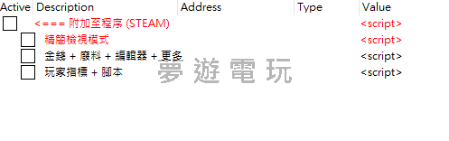 正文摘要:replyreload += ',' + 2405172; 《機甲戰魔 神話之裔》CE中文化腳本 快速閱讀精華 🔧 核心工具: 專為《機甲戰魔 神話之裔》設計的 Cheat Engine (CE) 中文化腳本,大幅降低遊戲難度、客製化你的機甲!💪 主要功能: 無限血量 (機甲/載具)簡易擊殺敵人裝備配件插槽修改機體記憶體容量、負重調整身體變異移除卡牌遊戲輔助 🔑 最重要提醒: 在交付任務關鍵道具時,務必停用「無限道具」相關腳本,以免卡關!🔽 檔案下載: 內文提供 v8 最新版 CT 腳本與 CE 主程式下載點。 .article-toc { border: 1px solid #ddd; padding: 15px; background: #f9f9f9; border-radius: 6px; margin: 20px 0; width: 90%;}.article-toc br { display: none;}.toc-title { /* --- 以下是合併進來的 H2 樣式 --- */ font-size: 1.25em; /* 125% */ border-left: 5px solid #2A98DA; border-radius: 2px; padding: 5px 0px 5px 10px; font-weight: bold; margin: 0 0 15px 0; /* 調整了 margin,只留下方 15px */ color: #333; line-height: 1.5; background-color: #f8f8f8; /* --- 樣式合併結束 --- */}.toc-list { list-style: none; padding-left: 0;}.toc-list li { margin: 8px 0;}.toc-list a { color: #2A98DA; text-decoration: none;}.toc-list a:hover { text-decoration: underline;}.back-to-top { display: block; margin-top: 10px; font-size: 0.9em; color: #666;}本文章目錄前言:打造你的專屬機甲!document.currentScript.previousElementSibling.href = location.href.split('#')[0] + '#intro'; 重要提醒:使用前必讀!document.currentScript.previousElementSibling.href = location.href.split('#')[0] + '#warning'; 核心功能全解析document.currentScript.previousElementSibling.href = location.href.split('#')[0] + '#features'; - 戰鬥輔助類document.currentScript.previousElementSibling.href = location.href.split('#')[0] + '#features_combat'; - 機庫改造類document.currentScript.previousElementSibling.href = location.href.split('#')[0] + '#features_hangar'; - 其他實用功能document.currentScript.previousElementSibling.href = location.href.split('#')[0] + '#features_other'; 工具與腳本下載點 🔽document.currentScript.previousElementSibling.href = location.href.split('#')[0] + '#download'; CE腳本常見問題Q&Adocument.currentScript.previousElementSibling.href = location.href.split('#')[0] + '#faq'; 前言:打造你的專屬機甲! 還在為了刷素材、改裝備而苦惱嗎?或是覺得某些關卡難度太高,想輕鬆體驗劇情?這篇攻略將為大家帶來《機甲戰魔 神話之裔》專用的 Cheat Engine (CE) 中文化腳本,這款腳本最初是為試玩版所設計,經過團隊實際測試後,確認在正式版遊戲中也能完美運作。透過它,你可以自由調整各種遊戲數值,從無限血量到裝備改造,讓你更專注於享受駕駛機甲的快感! 重要提醒:使用前必讀! 使用任何第三方修改工具都存在風險! 在開始前,請務必了解以下幾點,這是我們基於經驗給大家的提醒,能幫助你避免多數問題: 備份存檔: 在使用腳本前,強烈建議先備份你的遊戲存檔,以防萬一發生資料損毀的狀況。單機遊玩: 這類修改器僅限於單機模式使用,在多人連線模式下使用可能導致帳號被鎖定。遊戲版本: 腳本對應特定的遊戲版本,若遊戲更新後可能導致部分功能失效或遊戲閃退。關鍵任務道具: 這是最重要的一點!原開發者特別提醒,當你需要繳交任務用的「關鍵道具」時,請務必暫時關閉「無限道具」的腳本功能,否則可能會造成任務無法正常完成,導致卡關! 核心功能全解析 這款腳本的功能非常豐富,底下我們將它分成幾大類,幫助大家快速了解各項功能的用途。 👉 GM後台版 遊戲 推薦 ⬇️⬇️⬇️ 快速玩各種二次元動漫手遊app 戰鬥輔助類 簡易擊殺 (Easy kill): 覺得敵人太硬打不動?開啟這個功能,讓你輕鬆秒殺對手。敵人減速 (Enemy speed): 讓敵人的動作變慢,更容易閃躲攻擊與瞄準。載具無限HP (inf HP for Horse/LAV/Bike): 不論是馬、地面載具還是摩托車,再也不用擔心半路爆掉。重甲計量表倍率 (Heavy armor gauge fill multiplier): 快速填滿你的重甲計量表,更頻繁地使用強力武裝。 機庫改造類 裝備編輯 (Edit equipment script): 想要打造神裝?這個腳本能讓你修改裝備的各種屬性。增加額外配件插槽 (extra attachment slots): 【小技巧】這項功能需要你的裝備本身至少已有1個配件插槽才能作用。修改數值後,記得存檔再讀檔來確保效果被正確寫入!記憶體與負重調整 (Mem Capacity, Mem used and Weight): 讓你無視機體限制,裝上所有最強的裝備!【小知識】這個功能必須在進入機庫之前啟動,才能成功設定數值。這就像是在系統讀取你的機甲資料前,先告訴它「我的機體規格就是這樣」,才能生效喔! 其他實用功能 冰淇淋腳本 (Ice cream script): 快速獲得遊戲中的冰淇淋相關加成。計時器指針 (timer pointer): 可以鎖定或修改任務的倒數計時器。卡牌遊戲輔助 (Something for card game): 在玩小遊戲時,移動卡牌就能看到攻擊數值的變化,讓你輕鬆獲勝!身體變異移除 (Body mutation removal): 不喜歡主角的身體變異外觀?用這個功能就能恢復原狀。男性變異指針修正: 修正了與男性角色身體變異相關的數據指針。 工具與腳本下載點 🔽 要使用這個腳本,你必須先安裝 Cheat Engine 主程式,然後再載入這份 `.CT` 腳本檔案。 所有站內附件皆會附上安全掃描報告請會員查看純淨度百分比後判斷使用(adsbygoogle = window.adsbygoogle || []).push({});相關檔案須知:取得檔案前,請先詳細閱讀文章內容避免不必要錯誤與誤會發生。也可多參考文章討論樓層內容了解附件檔案相關討論資訊。 【此文章部分內容隱藏中】 解除隱藏說明教學