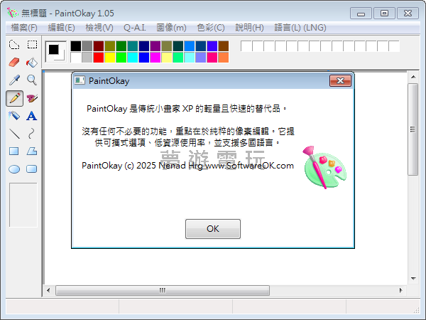 正文摘要:《PaintOkay》輕量化繪圖工具 快速閱讀精華 🚀 軟體亮點: 告別傳統小畫家的臃腫,PaintOkay 提供極致輕量的像素編輯體驗!它不只是一款繪圖工具,更是您電腦上不可或缺的免安裝圖片處理幫手。 ✨ 核心功能: 從基礎繪圖、色彩調整、影像旋轉,到內建多種實用濾鏡(如高斯模糊、銳化),甚至還能一鍵套用AI風格轉換,讓您的作品秒變大師畫風! 🔑 版本速覽: 最新 v1.05 版本,支援多語系含繁體中文,檔案大小僅 339KB,極速下載,立即啟用! 💡 適用對象: 無論您是設計師、業餘愛好者,或是僅需簡單編輯圖片的日常使用者,這款軟體都能提供高效且直覺的操作流程。 🔽 免費下載: 想要輕鬆搞定圖片編輯?點擊下方連結,立即體驗這款強大的輕量化繪圖軟體吧! 【語 言】:多語繁中 【軟體名稱】:PaintOkay 【版本資訊】:v1.05 【軟體大小】:339KB 【更新日期】:未提供 【使用權限】:免費版 【系統支持】:Windows 【軟體介紹】: 您是否正在尋找一款輕巧高效的圖片編輯軟體,能完美取代傳統小畫家,又能處理更多進階功能?由Nenad Hrg精心打造的PaintOkay v1.05正是您的理想選擇!這款免安裝繪圖工具專為像素級編輯與基礎繪圖而生,讓您在不犧牲效能的前提下,輕鬆完成各類影像編修任務。 PaintOkay 不僅提供豐富的自訂色彩與精準的像素畫筆功能,還能讓您隨心所欲地旋轉、翻轉、拉伸、傾斜影像,甚至進行色彩反轉或亮度對比調整。更令人驚艷的是,它內建了多種實用的濾鏡效果,如高斯模糊、浮凸、銳化、邊緣偵測及紅眼修正等,讓您的圖片瞬間煥然一新。無論是處理16色、256色、65536色模式,或是高達24/32位元色深的影像,PaintOkay都能輕鬆應對。 此外,這款強大的圖片編輯軟體支援將圖片匯入畫布,也能直接從掃描器或相機擷取影像。最酷的是,它還加入了AI風格轉換功能,只需一鍵,就能將您的作品瞬間變身為畢卡索、梵谷或康丁斯基等藝術大師的畫風!介面簡潔直覺,操作流暢不卡頓,是所有需要進行單純像素處理與基本影像編修使用者的免費下載最佳選擇。立即體驗 PaintOkay,享受前所未有的繪圖樂趣與便利! 【軟體截圖】: 👉 GM後台版 遊戲 推薦 ⬇️⬇️⬇️ 快速玩各種二次元動漫手遊app 【附件下載】: PaintOkay.zip |