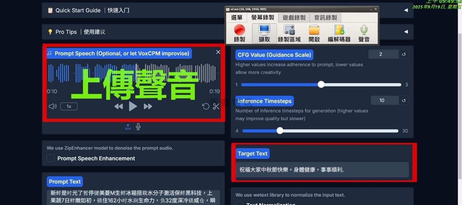 正文摘要:《克隆任意人聲 VoxCPM》核心主題 快速閱讀精華 🚀 核心功能: 運用開源語音大模型,實現「一鍵克隆」任意人聲。⏱️ 超高效率: 無需複雜訓練,短短 3 秒即可完成聲音復刻!💻 硬體要求: 最低僅需具備 6GB 記憶體的 NVIDIA 顯示卡即可順暢運行。✅ 適用對象: 內容創作者、開發者,或對 AI 語音技術有興趣的您。 【語 言】:多語 【軟體名稱】:克隆任意人聲 VoxCPM 【版本資訊】:v20250919 【軟體大小】:5.6GB 【更新日期】:2025年09月19日 【使用權限】:免費開源版 【系統支持】:Windows 作業系統 (需配備至少 6GB 記憶體之 NVIDIA 顯示卡) 【軟體介紹】: 想體驗最先進的 AI 語音克隆技術嗎?『克隆任意人聲 VoxCPM』這款強大的開源語音大模型,讓您輕鬆實現聲音復刻的夢想!它最大的亮點就是「一鍵式」操作,徹底顛覆了傳統語音合成的複雜流程。您無需進行繁瑣的訓練,只需短短三秒鐘,就能精準地完成任何目標人聲的模擬與重建。即便您的硬體設備門檻不高,只要擁有一張至少 6GB 記憶體的 NVIDIA 顯示卡,就能輕鬆運行這款令人驚豔的軟體。無論您是內容創作者、開發者,或是單純對 AI 語音技術感到好奇,VoxCPM 都能提供超乎想像的便利與高效體驗。趕快下載,親手打造專屬的 AI 語音分身吧! 【軟體截圖】: 【附件下載】: 克隆任意人聲 VoxCPM v20250919 |