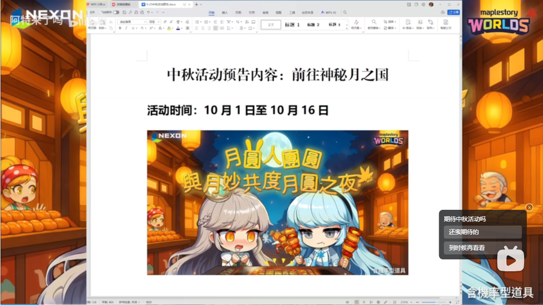 正文摘要:《Artale楓之谷世界》中秋活動 快速閱讀精華 📅 活動時間: 10月1日 ~ 10月16日,期間限定別錯過!🧧 活動基調: 官方掛保證,這次是個可以輕鬆玩、無負擔的慶典活動。🎁 必拿獎勵清單: 洗血藥水: 練功打王必備,讓你血量UP UP!雙倍經驗/掉寶券: 衝等、打寶效率加倍的神器。自選屬性臉飾: 告別看臉時代!物理攻擊、魔法攻擊任你選。全屬性+2髮夾: 挑戰小遊戲就能拿到的限定頭飾。 🛠️ 系統優化更新: 寵物喝水BUG修復: 斷線重連後,寵物不會再傻傻地把喝水%數調回1%了。騎寵優化: 現在騎著心愛的坐騎也能開心喝水吃補品囉! .article-toc { border: 1px solid #ddd; padding: 15px; background: #f9f9f9; border-radius: 6px; margin: 20px 0; width: 90%;}.article-toc br { display: none;}.toc-title { /* --- 以下是合併進來的 H2 樣式 --- */ font-size: 1.25em; /* 125% */ border-left: 5px solid #2A98DA; border-radius: 2px; padding: 5px 0px 5px 10px; font-weight: bold; margin: 0 0 15px 0; /* 調整了 margin,只留下方 15px */ color: #333; line-height: 1.5; background-color: #f8f8f8; /* --- 樣式合併結束 --- */}.toc-list { list-style: none; padding-left: 0;}.toc-list li { margin: 8px 0;}.toc-list a { color: #2A98DA; text-decoration: none;}.toc-list a:hover { text-decoration: underline;}.back-to-top { display: block; margin-top: 10px; font-size: 0.9em; color: #666;}本文章目錄中秋活動「神秘月之國」搶先看document.currentScript.previousElementSibling.href = location.href.split('#')[0] + '#event_intro'; 活動一:挑戰月之國拿限定髮夾document.currentScript.previousElementSibling.href = location.href.split('#')[0] + '#event_1'; 活動二:洗血藥、雙倍券回來啦!document.currentScript.previousElementSibling.href = location.href.split('#')[0] + '#event_2'; 活動三:自選屬性臉飾「月亮花」document.currentScript.previousElementSibling.href = location.href.split('#')[0] + '#event_3'; 活動四:全民合力解鎖限定稱號document.currentScript.previousElementSibling.href = location.href.split('#')[0] + '#event_4'; 活動五:挑戰組隊任務拿好禮document.currentScript.previousElementSibling.href = location.href.split('#')[0] + '#event_5'; 活動六:收集火種換藥水與名聲document.currentScript.previousElementSibling.href = location.href.split('#')[0] + '#event_6'; 其他系統更新與優化document.currentScript.previousElementSibling.href = location.href.split('#')[0] + '#event_fix'; 中秋活動常見問題Q&Adocument.currentScript.previousElementSibling.href = location.href.split('#')[0] + '#faq'; 參考資料document.currentScript.previousElementSibling.href = location.href.split('#')[0] + '#references'; 中秋活動「神秘月之國」搶先看 各位島民安安!中秋節快到了,還在想著要去哪裡烤肉嗎?先別急,《Artale楓之谷世界》阿爾泰亞伺服器最新的中秋節活動預告出爐啦!這次官方預告,從10月1日到10月16日,將會有一場讓大家輕鬆玩、無負擔的「神秘月之國」慶典等著我們。 以下廣告滑動後還有帖子內容var custom_call_MIR = function (params) {if ( params === null || params.hasAd === false ) {var divRowSide;for (let index = 0; index < ONEADs.length; index++) {if (ONEADs[index].pub.player_mode === "mobile-inread") {divRowSide = ONEADs[index].pub.slotobj;}}var ins = document.createElement('ins');ins.className = 'clickforceads';ins.setAttribute('style', 'display:inline-block;');ins.setAttribute('data-ad-zone', '18264');divRowSide.appendChild(ins);var js = document.createElement('script');js.async = true;js.type = 'text/javascript';js.setAttribute('src', '//cdn.holmesmind.com/js/init.js');js.onload = function(){console.log('[ONEAD MIR] ClickForce Loaded');};divRowSide.appendChild(js);}};var _ONEAD = {};_ONEAD.pub = {};_ONEAD.pub.slotobj = document.getElementById("oneadMIRDFPTag");_ONEAD.pub.slots = ["div-onead-ad"];_ONEAD.pub.uid = "1000509";_ONEAD.pub.external_url = "https://onead.onevision.com.tw/";_ONEAD.pub.scopes = ["spotbuy", "speed"];_ONEAD.pub.player_mode_div = "div-onead-ad";_ONEAD.pub.player_mode = "mobile-inread";_ONEAD.pub.queryAdCallback = custom_call_MIR;var ONEAD_pubs = ONEAD_pubs || [];ONEAD_pubs.push(_ONEAD);var truvidScript = document.createElement('script'); truvidScript.async = true; truvidScript.setAttribute('data-cfasync','false'); truvidScript.type = 'text/javascript'; truvidScript.src = '//stg.truvidplayer.com/index.php?sub_user_id=597&widget_id=3309&playlist_id=2381&m=a&cb=' + (Math.random() * 10000000000000000); var currentScript = document.currentScript || document.scripts[document.scripts.length - 1]; currentScript.parentNode.insertBefore(truvidScript, currentScript.nextSibling); 中秋活動常見問題Q&A Q:這次中秋活動最重要的獎勵是什麼? A:絕對是「洗血藥」和可以「自選屬性」的臉飾「月亮花」!雙倍經驗和掉寶券也非常實用,建議優先兌換。Q:洗血藥是什麼?為什麼戰士洗血加比較多? A:洗血藥是一種可以增加角色HP最大值的特殊藥水。在《楓之谷》的經典設定中,角色的血量成長與力量(STR)屬性掛鉤,因此以力量為主要屬性的劍士職業,使用洗血藥時獲得的血量加成會最為顯著。Q:新的臉飾「月亮花」跟夏日活動的冰棒有什麼不一樣? A:最大的不同在於「屬性可自選」!夏日活動的冰棒屬性是隨機開出來的,非常看運氣。這次的月亮花可以直接選擇你想要的屬性(如物理攻擊),對玩家來說是一大福音。Q:寵物自動喝水的問題真的修好了嗎? A:是的,根據官方更新公告,已經修復了重新連線時,寵物自動喝水設定會間歇性被下調到1%的問題。大家可以放心掛機了!Q:活動什麼時候開始?會持續多久? A:活動時間為10月1日至10月16日,為期大約兩週,記得把握時間參加喔! 參考資料 .video-container { position: relative;