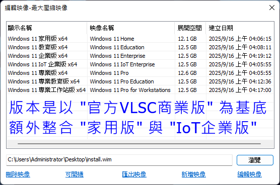 正文摘要:《Windows 11 25H2 多版本整合版》作業系統 快速閱讀精華 🚀 系統核心: 微軟最新 Windows 11 25H2 商業版,深度整合家用版與IoT企業版,一次滿足多樣需求!💪 語系支援: 完整 繁體中文 介面,操作無障礙,輕鬆上手。🔑 獨家工具: 開機快速鍵 Shift+F10 呼叫強大應用工具包,包含磁碟管理、備份還原等,系統安裝與維護更加便捷!💾 檔案大小: 約 5.66 GB,ISO 格式,方便製作安裝碟。🔽 下載方式: 檔案位於 Google 空間,安全可靠,附帶破解下載限制教學。 本文章目錄.article-toc { border: 1px solid #ddd; padding: 15px; background: #f9f9f9; border-radius: 6px; margin: 20px 0; width: 95%;}.toc-title { /* --- 以下是合併進來的 H2 樣式 --- */ font-size: 1.25em; /* 125% */ border-left: 5px solid #2A98DA; border-radius: 2px; padding: 5px 0px 5px 10px; font-weight: bold; margin: 0 0 15px 0; /* 調整了 margin,只留下方 15px */ color: #333; line-height: 1.5; background-color: #f8f8f8; /* --- 樣式合併結束 --- */}.toc-list { list-style: none; padding-left: 0;}.toc-list li { margin: 8px 0;}.toc-list a { color: #2A98DA; text-decoration: none;}.toc-list a:hover { text-decoration: underline;}.back-to-top { display: block; margin-top: 10px; font-size: 0.9em; color: #666;} 作業系統深度介紹document.currentScript.previousElementSibling.href = location.href.split('#')[0] + '#info_intro'; 系統截圖預覽document.currentScript.previousElementSibling.href = location.href.split('#')[0] + '#info_screenshots'; 常見問題Q&Adocument.currentScript.previousElementSibling.href = location.href.split('#')[0] + '#faq_section'; 檔案下載點 🔽document.currentScript.previousElementSibling.href = location.href.split('#')[0] + '#download_links'; 【語 言】: 繁體中文 【軟體名稱】: Windows 11 25H2 VLSC 商業版 【版本資訊】: Windows 11 25H2 Business (25H2_26200.6584) 【軟體大小】: 5.66 GB 【更新日期】: 2025.09.27 【使用權限】: 完整版 (多版本選擇) 【系統支持】: 支援 Windows 11 (64位元) 系統 【軟體介紹】: 這套 Windows 11 25H2 VLSC 商業版作業系統,在微軟官方釋出的商業版基礎上,進行了精心整合與優化。它不僅保留了商業版原有的穩定性與強大功能,更貼心地額外加入了廣受用戶歡迎的家用版,以及專為物聯網設備設計的IoT企業版。這意味著無論您是需要高效辦公、日常家用娛樂,或是開發與部署物聯網應用,都能在這一個ISO檔案中找到最適合您的版本。它提供了一個全面且彈性的安裝選擇,讓您無需四處尋找不同版本,就能輕鬆打造個人化的電腦環境。同時,此版本內建多款實用工具,可在安裝過程中透過快捷鍵呼叫,讓系統部署與維護變得更有效率。 【軟體截圖】: 常見問題Q&A Q:這個版本有什麼特別之處? A:本版在微軟官方釋出的 Windows 11 25H2 商業版基礎上,額外整合了家用版與IoT企業版,提供更多元的選擇,滿足不同用戶的需求。它包含了多種常見的 Windows 11 版本,讓您在安裝時可以根據實際需求進行選擇,省去尋找不同版本檔案的麻煩。 Q:我該如何呼叫內建的應用工具包? A:在系統安裝或維護介面中,按下 Shift+F10 即可調用應用工具。輸入 APP 後按 Enter 可開啟工具包選單,裡麪包含 Aomei Backupper、DiskGenius、Dism++ 等實用工具。例如:輸入 AB 啟用 Aomei Backupper,DM 啟用 Dism++。其他工具包括 Aomei Partition Assistant (AP)、DiskGenius (DG)、易數一鍵還原 (ES)、Symantec Ghost (GT)、Windows Login Unbocker (PW)、SGI備份還原 (SG) 及 WinNTSetup (WS) 等,都可透過對應指令快速啟動。 Q:是否有提供官方原汁原味的商業版下載連結? A:是的,如果您偏好未經整合的官方原版商業版,可以參考此連結:官方原汁原味的商業版由此進。本帖提供的版本是經過整合與優化的,主要優勢在於一次下載即可擁有更多版本選擇。 Q:Google Drive 下載有容量限制怎麼辦? A:如果您在下載檔案時遇到 Google 雲端空間下載限制,可以參考這部教學影片,它提供了破解限制的方法:破解Google空間下載限制教學。 Q:下載檔案後如何驗證其完整性? A:為確保檔案下載正確無誤且未被竄改,安裝前請務必使用 MD5 或 SHA1 工具比對以下驗證碼: MD5: 0cc6e62bd6bd0d86cb4d1875b5b2aa8e SHA1: 46ad96a09e82da58f9edf61f469539a6bec9759e 確認數值一致後再進行安裝,以保障您的系統安全與穩定性。 以下廣告滑動後還有帖子內容var custom_call_MIR = function (params) {if ( params === null || params.hasAd === false ) {var divRowSide;for (let index = 0; index < ONEADs.length; index++) {if (ONEADs[index].pub.player_mode === "mobile-inread") {divRowSide = ONEADs[index].pub.slotobj;}}var ins = document.createElement('ins');ins.className = 'clickforceads';ins.setAttribute('style', 'display:inline-block;');ins.setAttribute('data-ad-zone', '18264');divRowSide.appendChild(ins);var js = document.createElement('script');js.async = true;js.type = 'text/javascript';js.setAttribute('src', '//cdn.holmesmind.com/js/init.js');js.onload = function(){console.log('[ONEAD MIR] ClickForce Loaded');};divRowSide.appendChild(js);}};var _ONEAD = {};_ONEAD.pub = {};_ONEAD.pub.slotobj = document.getElementById("oneadMIRDFPTag");_ONEAD.pub.slots = ["div-onead-ad"];_ONEAD.pub.uid = "1000509";_ONEAD.pub.external_url = "https://onead.onevision.com.tw/";_ONEAD.pub.scopes = ["spotbuy", "speed"];_ONEAD.pub.player_mode_div = "div-onead-ad";_ONEAD.pub.player_mode = "mobile-inread";_ONEAD.pub.queryAdCallback = custom_call_MIR;var ONEAD_pubs = ONEAD_pubs || [];ONEAD_pubs.push(_ONEAD);var truvidScript = document.createElement('script'); truvidScript.async = true; truvidScript.setAttribute('data-cfasync','false'); truvidScript.type = 'text/javascript'; truvidScript.src = '//stg.truvidplayer.com/