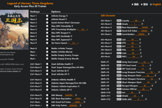 正文摘要:《英雄立志傳:三國志》修改器 快速閱讀精華 🔧 支援版本: Early Access+ (更新至 2025.09.30)💪 核心功能: 提供無限體力、無限資源、戰鬥無敵、一鍵修改角色屬性等50項超強功能。⚔️ 戰鬥無憂: 無限兵力、無限士氣,還能直接清空敵軍,讓你輕鬆稱霸每一場戰役。💬 社交達人: 一鍵刷滿NPC好感度、恩義、認可,讓你的人際關係暢行無阻。💰 財富自由: 隨心所欲修改金錢、名聲、善惡值,打造你心目中的完美主角。 本文章目錄.article-toc { border: 1px solid #ddd; padding: 15px; background: #f9f9f9; border-radius: 6px; margin: 20px 0; width: 95%;}.toc-title { /* --- 以下是合併進來的 H2 樣式 --- */ font-size: 1.25em; /* 125% */ border-left: 5px solid #2A98DA; border-radius: 2px; padding: 5px 0px 5px 10px; font-weight: bold; margin: 0 0 15px 0; /* 調整了 margin,只留下方 15px */ color: #333; line-height: 1.5; background-color: #f8f8f8; /* --- 樣式合併結束 --- */}.toc-list { list-style: none; padding-left: 0;}.toc-list li { margin: 8px 0;}.toc-list a { color: #2A98DA; text-decoration: none;}.toc-list a:hover { text-decoration: underline;}.back-to-top { display: block; margin-top: 10px; font-size: 0.9em; color: #666;}重要提醒:使用前必讀document.currentScript.previousElementSibling.href = location.href.split('#')[0] + '#warning'; 修改器功能總覽 (50項)document.currentScript.previousElementSibling.href = location.href.split('#')[0] + '#features'; - 日常與社交功能document.currentScript.previousElementSibling.href = location.href.split('#')[0] + '#features_daily'; - 戰場無雙功能document.currentScript.previousElementSibling.href = location.href.split('#')[0] + '#features_battle'; - 單挑舌戰神技document.currentScript.previousElementSibling.href = location.href.split('#')[0] + '#features_duel'; - 數值修改大師document.currentScript.previousElementSibling.href = location.href.split('#')[0] + '#features_values'; - 角色屬性編輯document.currentScript.previousElementSibling.href = location.href.split('#')[0] + '#features_char'; - 兵種與技能全開document.currentScript.previousElementSibling.href = location.href.split('#')[0] + '#features_skills'; 風靈月影修改器下載點 🔽document.currentScript.previousElementSibling.href = location.href.split('#')[0] + '#download'; 《英雄立志傳:三國志》修改器 常見問題Q&Adocument.currentScript.previousElementSibling.href = location.href.split('#')[0] + '#faq'; 亂世出英雄,但不想再被虐了? 剛踏入《英雄立志傳:三國志》的Early Access+版本,是不是覺得體力總是不夠用、打仗老是兵力不足,或是跟NPC打好關係比登天還難?別擔心,你不是一個人!這篇攻略就是要為大家帶來一款超實用的工具——風靈月影修改器,專為目前最新的 Early Access+ 版本打造,讓你告別煩惱,專心體驗稱霸三國的樂趣! 重要提醒:使用前必讀 在使用修改器之前,請務必了解以下幾點: 修改器屬於第三方輔助工具,可能會被防毒軟體誤判為病毒,使用前請自行評估風險。使用修改器可能會影響遊戲的穩定性,造成閃退或存檔損壞的風險,強烈建議修改前先備份你的遊戲存檔。本工具僅建議在單人模式下使用,若在任何形式的連線或多人模式中使用,可能會有帳號被封鎖的風險。請確保修改器版本與你的遊戲版本(Early Access+)相符,版本不對應可能導致功能無效或遊戲出錯。 👉 GM後台版 遊戲 推薦 ⬇️⬇️⬇️ 快速玩各種二次元動漫手遊app 修改器功能總覽 (50項) 這款修改器功能非常全面,從日常活動到戰場廝殺,幾乎涵蓋了遊戲的所有層面。底下我們將功能分門別類,方便大家快速查找! 日常與社交功能 Num 1: 無限體力 - 讓你跑圖、執行指令永不疲倦。 Num 2: 無限心情 - 角色永遠保持最佳狀態。 Num 3: 社交活動不減 - 盡情跟NPC互動,不用擔心次數限制。 Num 4: NPC好感度全滿 - 一秒變成交際花,所有人都愛你。 Num 5: NPC好感度倍率 - 自訂獲取好感度的速度。 Num 6: NPC敬意全滿 Num 7: NPC恩義全滿 Num 8: NPC認可全滿 Num 9: 調整遊戲速度 - 覺得遊戲太慢?自己加速吧! 戰場無雙功能 Num 0: 戰鬥中無限兵力 - 你的軍隊就是不死軍團! Num . : 戰鬥中無限士氣 - 部隊士氣永遠高昂,絕不潰散。 Num + : 清空敵方兵力 - 輕輕一按,對手灰飛煙滅。 Num - : 清空敵方士氣 - 讓敵人瞬間失去戰意,不戰而降。 單挑舌戰神技 Ctrl+Num 1: 單挑無限血量 Ctrl+Num 2: 單挑超級傷害/一擊必殺 Ctrl+Num 3: 單挑無限氣力 Ctrl+Num 4: 單挑無限行動點 (AP) Ctrl+Num 5: 舌戰無限血量 Ctrl+Num 6: 舌戰超級傷害/一擊必殺 Ctrl+Num 7: 舌戰無限才氣 Ctrl+Num 8: 舌戰無限行動點 (AP) 數值修改大師 Ctrl+Num 9: 編輯金錢 - 想買什麼就買什麼! Ctrl+Num 0: 編輯基礎名聲 Ctrl+Num . : 編輯善惡值 - 輕鬆扮演大善人或大惡霸。 Ctrl+Num + : 編輯濟世點 Ctrl+Num - : 編輯發言力 Ctrl+Num / : 編輯滑鼠懸停道具數量 - 背包裡的道具想有多少就有多少。 角色屬性編輯 Alt+Num 1: 忠誠度 Alt+Num 2: 品級 Alt+Num 3: 基礎名聲 Alt+Num 4: 善惡值 Alt+Num 5: 功績 Alt+Num 6: 統率 (LEA) Alt+Num 7: 武力 (STR) Alt+Num 8: 智力 (INT) Alt+Num 9: 政治 (POL) Alt+Num 0: 魅力 (CHA) Alt+Num . : 意志 (WILL) 兵種與技能全開 Shift+F1: 兵魂等級 Shift+F2: 武魂等級 Shift+F3: 智魂等級 Shift+F4: 長兵器 (刺) Shift+F5: 長兵器 (斬) Shift+F6: 短兵器 (刺) Shift+F7: 短兵器 (斬) Shift+F8: 遠程兵器 Shift+F9: 文官 Shift+F10: 藝術 Shift+F11: 盾牌 Shift+F12: 全部技能 《英雄立志傳:三國志》修改器重點回顧 這款修改器可以說是新手玩家的福音,也是老玩家想體驗不同玩法的利器。幾個最實用的重點