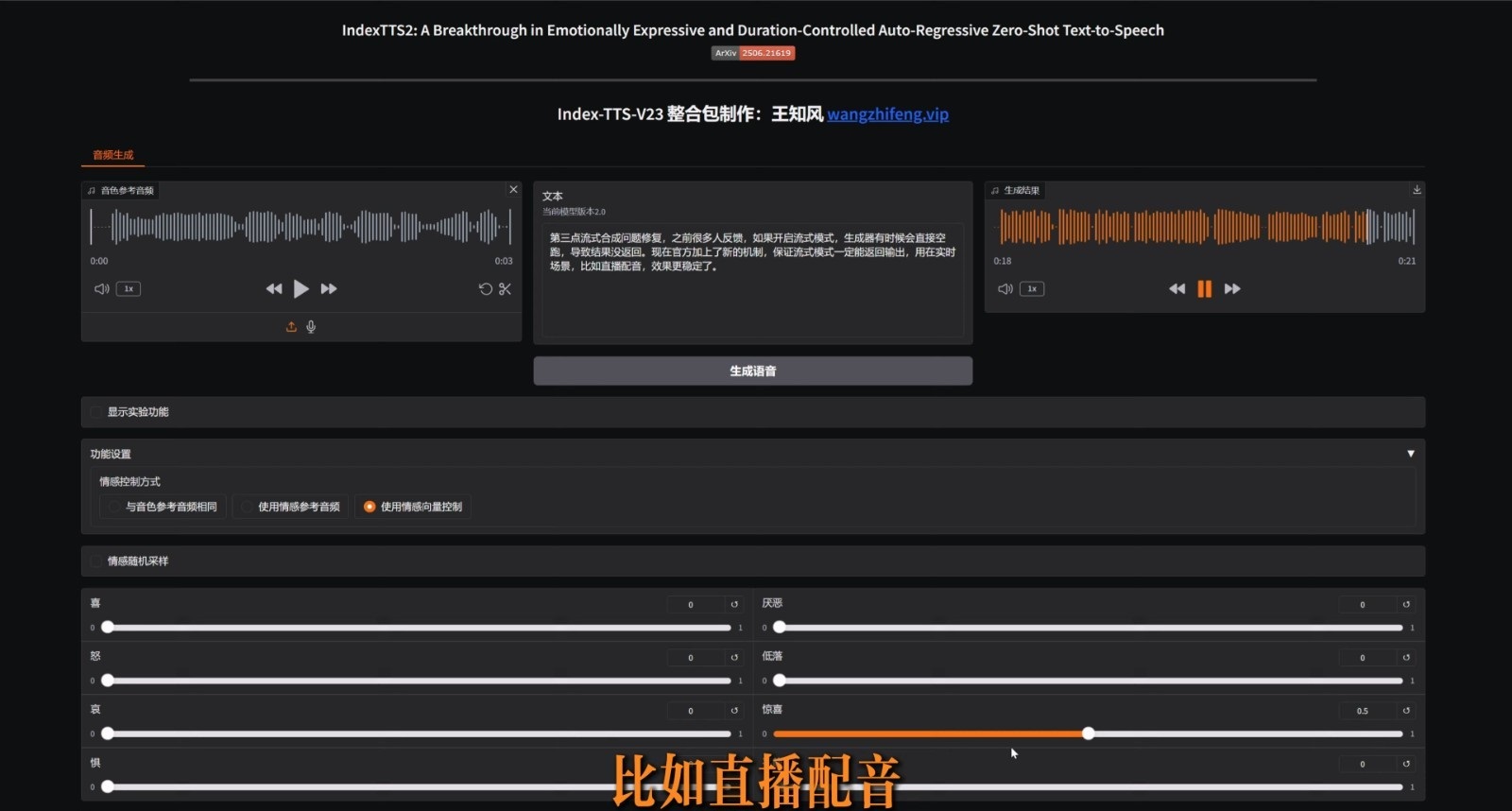 正文摘要:《IndexTTS V23》核心功能 快速閱讀精華 🚀 軟體核心: 具備一鍵啟動功能的 IndexTTS V23,讓您輕鬆實現文字轉語音! 🌐 語言支援: 提供多語系選項,應用彈性極高。 📦 檔案大小: 安裝檔案約 12GB,確保完整功能體驗。 🔑 使用方式: 無需複雜設定,直接啟用即可享受高品質語音合成! 【語 言】: 多語 【軟體名稱】: IndexTTS 【版本資訊】: V23 【軟體大小】: 12GB 【更新日期】: 未提供 【使用權限】: 免費一鍵啟動版 【系統支持】: 未提供 【軟體介紹】: IndexTTS V23 是一款功能強大的文字轉語音(Text-to-Speech, TTS)軟體,專為追求效率與便利的使用者設計。此版本最大特色是其「一鍵啟動」功能,讓您告別繁瑣的安裝與設定步驟,下載後即可立即體驗高品質的語音合成服務。無論您是需要將文字內容轉換為語音進行學習、製作有聲讀物,或是為影片配音,IndexTTS V23 都能提供流暢且自然的多語系發音選項,大幅提升您的工作效率與創作彈性。其約12GB的檔案大小,確保了語音資料庫的豐富性與音質的優異表現。立即免費下載體驗,開啟全新的語音世界!為了您的使用安全,我們也提供檔案的掃毒報告連結供您參考:IndexTTS掃毒報告。 【軟體截圖】: 【附件下載】: 2.2版升級不要主程式_老用戶升級代碼.zip 下載 (進門左邊1010) |