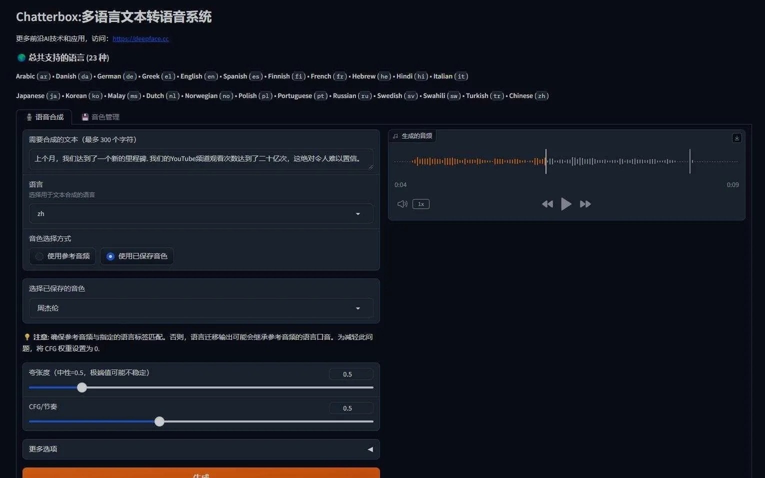 正文摘要:《ChatterBox》核心主題 快速閱讀精華 🚀 軟體核心: 由 Resemble AI 開發,一款強大的開源多語言文本轉語音 (TTS) 模型,並支援驚人的零樣本語音克隆技術。 🔑 主要特色: 支援全球 23種語言(包含中文、英文、日文等)。 僅需幾秒語音樣本即可實現聲音克隆,極具個性化。 輕巧高效,僅0.5B參數量,純CPU即可快速生成語音,無需高性能顯卡。 可細膩調整語音的情感表現,讓聲音更生動自然。 內建水印技術,保障音頻來源可追溯。 💡 適用場景: 遊戲/動畫配音、短影音旁白、AI助手語音、語言學習輔助等,應用廣泛。 ⚙️ 硬體要求: 建議NVIDIA顯卡(4GB顯存以上),但純CPU也能生成。 本文章目錄.article-toc { border: 1px solid #ddd; padding: 15px; background: #f9f9f9; border-radius: 6px; margin: 20px 0; width: 95%;}.toc-title { /* --- 以下是合併進來的 H2 樣式 --- */ font-size: 1.25em; /* 125% */ border-left: 5px solid #2A98DA; border-radius: 2px; padding: 5px 0px 5px 10px; font-weight: bold; margin: 0 0 15px 0; /* 調整了 margin,只留下方 15px */ color: #333; line-height: 1.5; background-color: #f8f8f8; /* --- 樣式合併結束 --- */}.toc-list { list-style: none; padding-left: 0;}.toc-list li { margin: 8px 0;}.toc-list a { color: #2A98DA; text-decoration: none;}.toc-list a:hover { text-decoration: underline;}.back-to-top { display: block; margin-top: 10px; font-size: 0.9em; color: #666;} 軟體資訊一覽document.currentScript.previousElementSibling.href = location.href.split('#')[0] + '#info_brief'; 軟體介紹:解鎖多語言語音的無限可能document.currentScript.previousElementSibling.href = location.href.split('#')[0] + '#soft_intro'; 軟體截圖document.currentScript.previousElementSibling.href = location.href.split('#')[0] + '#screenshots'; 快速上手:ChatterBox 使用教學document.currentScript.previousElementSibling.href = location.href.split('#')[0] + '#tutorial'; 常見問題Q&Adocument.currentScript.previousElementSibling.href = location.href.split('#')[0] + '#faq'; 附件下載 🔽document.currentScript.previousElementSibling.href = location.href.split('#')[0] + '#download'; 【語 言】: 繁體中文、英文、日文、法文、西班牙文等23種語言 【軟體名稱】: ChatterBox 【版本資訊】: V2版_TTS 【軟體大小】: 16GB 【更新日期】: 未提供 【使用權限】: 免費版 【系統支持】: N卡 (顯存4G以上)、50系顯卡、純CPU (無顯卡限制) 【軟體介紹】:解鎖多語言語音的無限可能 想像一下,能用幾乎任何聲音、任何語言輕鬆創造出逼真的語音,這不再是遙不可及的夢想!ChatterBox 正是這樣一款由 Resemble AI 開發的開源多語言文本轉語音(TTS)模型,它以其卓越的性能和易用性,在全球的語音生成領域掀起了一股熱潮。這款強大的工具不僅支援多達23種語言,更具備令人驚豔的「零樣本語音克隆」能力,只需極短的語音樣本,就能讓您的文字瞬間擁有相似的聲音特質。 今天我們為您帶來的 ChatterBox V2版,更是在官方基礎上進行了全面升級與強化。它完美整合了包括中文在內的全球23種語言支援,讓跨語言的語音內容創作變得前所未有的簡單。此外,V2版還新增了自定義音色功能,讓您能根據需求打造獨一無二的語音風格。最令人振奮的是,ChatterBox V2版以其小巧輕量的設計著稱,僅需0.5B的參數量,即使是純CPU環境也能實現快速、流暢的語音生成,打破了高性能硬體的限制,讓更多人能體驗到頂尖的AI語音技術。 ChatterBox V2版的強大特色: 🌐 多語言支援: 涵蓋中文、英語、日語、法語、西班牙語等23種主流語言,無論您想創作何種語言內容,ChatterBox 都能輕鬆應對,是全球化應用不可或缺的利器。 🎭 情感控制: 您可以自由調整語音的「誇張程度」,讓聲音更加激昂澎湃或沉靜平和,完美適配遊戲、動畫角色配音等需要豐富情感表達的場景。 🔑 零樣本語音克隆: 只需短短幾秒的語音樣本,ChatterBox 就能精準合成出與之相似的聲音,無需漫長且複雜的額外訓練,極大提升了個人化語音的效率。 ⚡ 低延遲生成: 語音生成速度飛快,非常適合應用於AI助手、遊戲NPC對話等需要即時互動的場景,確保流暢的用戶體驗。 🛡️ 水印技術: 內建獨特的防濫用機制,所有生成的音頻均包含不可見的數位水印,有效追蹤音源,保障內容的安全性與版權。 ChatterBox 廣泛的應用領域: 🎮 遊戲與動畫: 為遊戲角色或動畫人物生成多語言配音,並精準調整情感表現,讓角色更加栩栩如生。 🎬 短影音與自媒體: 快速製作多語言旁白或趣味搞怪的語音內容,大幅提升影片製作效率與觀看體驗。 🤖 AI 助手: 讓您的AI助手擁有更自然、更具個性的語音交互體驗,提升用戶滿意度。 📚 教育輔助: 生成不同語言的朗讀內容,為語言學習者提供生動的聽力教材,輔助語言學習。 【軟體截圖】: 👉 GM後台版 遊戲 推薦 ⬇️⬇️⬇️ 快速玩各種二次元動漫手遊app 快速上手:ChatterBox 使用教學 ChatterBox 的操作介面設計直覺,無論您是文本轉語音 (TTS) 還是語音轉換 (VC),都能輕鬆上手。以下是兩種模式的簡易教學,讓您快速掌握: TTS(文本轉語音)模式: 輸入文字: 在指定欄位輸入您希望轉換成語音的文字內容。 上傳參考音頻: 選擇一份簡短的語音樣本,ChatterBox 將會模仿該聲音的特質來生成您輸入的文字。 點擊生成: 簡單一步,即可獲得您想要的語音檔案。 VC(語音轉換)模式: 上傳原始音頻: 選擇您想要進行語音轉換的原始音頻檔案。 上傳參考音頻: 提供一份作為目標聲色的參考音頻,ChatterBox 會將原始音頻的內容轉換成參考音頻的聲音