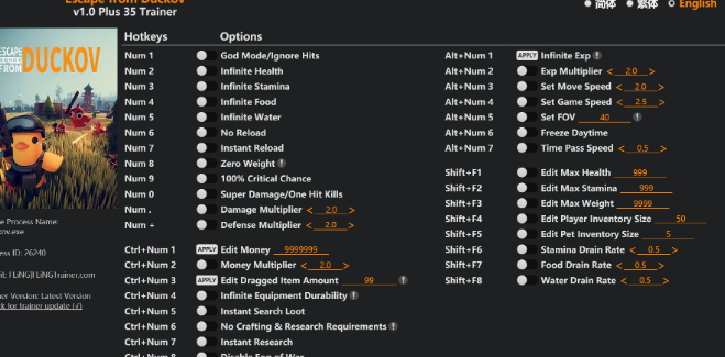 正文摘要:replyreload += ',' + 2411442; 《逃離鴨科夫》風靈月影修改器 快速閱讀精華 🔧 修改器名稱: 風靈月影 (FLiNG Trainer)🎮 支援版本: v1.0+💪 核心戰鬥功能: 上帝模式: 開了直接橫著走,完全無視傷害!無限生命/耐力: 讓你跑得比誰都快,打得比誰都久。一擊必殺: 所有敵人在你面前都跟紙糊的一樣。 📦 資源管理大師: 無限資源: 食物、飲水、子彈通通不用愁。零負重: 戰利品隨便撿,把整個地圖搬回家!無限耐久: 裝備武器永遠跟新的一樣。 🚀 遊戲進程加速: 經驗值倍率: 練等像坐火箭,等級狂飆。秒速製作/研究: 跳過所有等待時間,立即完成。無視製作需求: 身上沒材料?沒關係,照樣做給你看! .article-toc { border: 1px solid #ddd; padding: 15px; background: #f9f9f9; border-radius: 6px; margin: 20px 0; width: 90%;}.article-toc br { display: none;}.toc-title { /* --- 以下是合併進來的 H2 樣式 --- */ font-size: 1.25em; /* 125% */ border-left: 5px solid #2A98DA; border-radius: 2px; padding: 5px 0px 5px 10px; font-weight: bold; margin: 0 0 15px 0; /* 調整了 margin,只留下方 15px */ color: #333; line-height: 1.5; background-color: #f8f8f8; /* --- 樣式合併結束 --- */}.toc-list { list-style: none; padding-left: 0;}.toc-list li { margin: 8px 0;}.toc-list a { color: #2A98DA; text-decoration: none;}.toc-list a:hover { text-decoration: underline;}.back-to-top { display: block; margin-top: 10px; font-size: 0.9em; color: #666;}本文章目錄重要提醒:使用前必讀document.currentScript.previousElementSibling.href = location.href.split('#')[0] + '#important_notice';修改器功能全覽document.currentScript.previousElementSibling.href = location.href.split('#')[0] + '#trainer_functions';- 核心戰鬥功能document.currentScript.previousElementSibling.href = location.href.split('#')[0] + '#trainer_functions_combat';- 生存與資源管理document.currentScript.previousElementSibling.href = location.href.split('#')[0] + '#trainer_functions_resource';- 遊戲進程與數值修改document.currentScript.previousElementSibling.href = location.href.split('#')[0] + '#trainer_functions_progression';- 環境與其他設定document.currentScript.previousElementSibling.href = location.href.split('#')[0] + '#trainer_functions_environment';修改器檔案下載點 🔽document.currentScript.previousElementSibling.href = location.href.split('#')[0] + '#download_link';常見問題Q&Adocument.currentScript.previousElementSibling.href = location.href.split('#')[0] + '#faq'; 各位在鴨科夫世界裡奮戰的玩家們,安安!是不是覺得有時候資源難找、敵人又特別兇猛,玩起來有點心累?別擔心,你的救星來了! 這篇要為大家介紹由知名大神「風靈月影 (FLiNG)」製作的《逃離鴨科夫》v1.0+ 專用修改器,內含高達35項超實用功能。無論你是想輕鬆體驗劇情、或是想當個橫行無阻的戰場主宰,這款工具都能幫你實現。接下來,我們會一步步帶大家瞭解這些強大的功能要怎麼用! 重要提醒:使用前必讀 在開始之前,有幾點心裡話必須跟大家說清楚,這非常重要! 風險評估: 使用任何第三方修改工具都存在一定的風險,特別是在有連線模式的遊戲中,可能導致帳號被鎖定或停用。建議優先在單機模式或離線狀態下使用,並自行承擔所有後果。檔案安全: 我們提供的連結皆來自原作者發布的站點,但仍建議在下載和執行任何檔案前,先用防毒軟體掃描,確保電腦安全。遊戲樂趣: 修改器雖然強大,但過度使用可能會降低遊戲的挑戰性和樂趣。建議大家在真正卡關或想輕鬆玩的時候再開啟,才能保有最好的遊戲體驗喔! 👉 GM後台版 遊戲 推薦 ⬇️⬇️⬇️ 快速玩各種二次元動漫手遊app 修改器功能全覽 這款修改器功能非常全面,我們把它們分成了幾個大類,方便大家快速找到自己需要的功能。記得,修改器上的數字鍵指的是鍵盤右邊的九宮格數字鍵 (NumPad) 喔! 核心戰鬥功能 數字鍵 1: 上帝模式/無視傷害數字鍵 2: 無限生命數字鍵 9: 100% 暴擊率數字鍵 0: 超級傷害/一擊必殺數字鍵 . : 傷害倍率調整數字鍵 + : 防禦倍率調整 生存與資源管理 數字鍵 3: 無限耐力數字鍵 4: 無限食物數字鍵 5: 無限飲水數字鍵 6: 無需換彈數字鍵 7: 瞬間換彈數字鍵 8: 零負重Ctrl+數字鍵 4: 無限裝備耐久度Ctrl+數字鍵 5: 立即搜刮戰利品Shift+F6: 調整耐力消耗率Shift+F7: 調整食物消耗率Shift+F8: 調整飲水消耗率 遊戲進程與數值修改 Ctrl+數字鍵 1: 編輯金錢Ctrl+數字鍵 2: 金錢倍率Ctrl+數字鍵 3: 編輯拖曳中的物品數量Ctrl+數字鍵 6: 無視製作與研究需求Ctrl+數字鍵 7: 立即完成研究Alt+數字鍵 1: 無限經驗值Alt+數字鍵 2: 經驗值倍率Shift+F1: 編輯最大生命值Shift+F2: 編輯最大耐力Shift+F3: 編輯最大負重Shift+F4: 編輯玩家背包大小Shift+F5: 編輯寵物背包大小 環境與其他設定 Ctrl+數字鍵 8: 關閉戰爭迷霧Alt+數字鍵 3: 設定移動速度Alt+數字鍵 4: 設定遊戲速度Alt+數字鍵 5: 設定視野 (FOV)Alt+數字鍵 6: 凍結時間Alt+數字鍵 7: 調整時間流逝速度 修改器檔案下載點 🔽 重頭戲來了!大家最需要的檔案下載連結就在下方。再次提醒,使用前請務必瞭解相關風險喔。 所有站內附件皆會附上安全掃描報告請會員查看純淨度百分比後判斷使用(adsbygoogle = window.adsbygoogle || []).push({});相關檔案須知:取得檔案前,請先詳細閱讀文章內容避免不必要錯誤與誤會發生。也可多參考文章討論樓層內容了解附件檔案相關討論資訊。 【此文章部分內容隱藏中】 解除隱藏說明教學點擊下方 繼續閱讀文章 後請仔細觀看文章內容 並依照指示進行下一步最後完成解除隱藏後