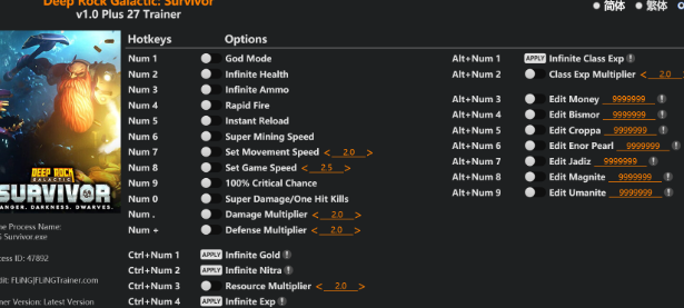 正文摘要:replyreload += ',' + 2411444; 《深岩銀河:倖存者》風靈月影修改器 快速閱讀精華 🔧 修改器名稱: 風靈月影 (FLiNG Trainer)🎮 支援版本: v1.0+💪 戰鬥無雙模式: 上帝模式: 開了直接在蟲潮裡洗澡,完全無視傷害!無限生命/彈藥: 站樁輸出不是夢,子彈永遠滿出來。一擊必殺: 所有蟲子在你面前都跟紙糊的一樣脆弱。 📦 資源採集零煩惱: 無限金礦/硝石: 任務道具隨便撿,再也不用辛苦挖礦。超級挖礦速度: 輕輕一碰,整面牆直接清空。資源倍率: 挖一塊等於別人挖十塊,效率爆表! 🚀 角色光速成長: 無限經驗: 練等像坐火箭,等級瞬間封頂。100%傳說升級: 每次升級都是最高品質,告別手氣差。無限職業經驗: 快速解鎖所有職業的強力技能。 本文章目錄.article-toc { border: 1px solid #ddd; padding: 15px; background: #f9f9f9; border-radius: 6px; margin: 20px 0; width: 95%;}.toc-title { /* --- 以下是合併進來的 H2 樣式 --- */ font-size: 1.25em; /* 125% */ border-left: 5px solid #2A98DA; border-radius: 2px; padding: 5px 0px 5px 10px; font-weight: bold; margin: 0 0 15px 0; /* 調整了 margin,只留下方 15px */ color: #333; line-height: 1.5; background-color: #f8f8f8; /* --- 樣式合併結束 --- */}.toc-list { list-style: none; padding-left: 0;}.toc-list li { margin: 8px 0;}.toc-list a { color: #2A98DA; text-decoration: none;}.toc-list a:hover { text-decoration: underline;}.back-to-top { display: block; margin-top: 10px; font-size: 0.9em; color: #666;}重要提醒:使用前必讀document.currentScript.previousElementSibling.href = location.href.split('#')[0] + '#important_notice';修改器功能全覽document.currentScript.previousElementSibling.href = location.href.split('#')[0] + '#trainer_functions';- 核心戰鬥與屬性document.currentScript.previousElementSibling.href = location.href.split('#')[0] + '#trainer_functions_combat';- 資源與經驗值document.currentScript.previousElementSibling.href = location.href.split('#')[0] + '#trainer_functions_resource';- 永久升級項目document.currentScript.previousElementSibling.href = location.href.split('#')[0] + '#trainer_functions_permanent';修改器檔案下載點 🔽document.currentScript.previousElementSibling.href = location.href.split('#')[0] + '#download_link';常見問題Q&Adocument.currentScript.previousElementSibling.href = location.href.split('#')[0] + '#faq'; 各位矮人礦工們,Rock and Stone!是不是常常覺得蟲潮來得又多又猛,資源卻挖得心累手軟?或是升級時總是選不到想要的傳說技能,感到非常扼腕? 別擔心,矮人科技的結晶來了!這篇要為大家隆重介紹由大神「風靈月影 (FLiNG)」為《深岩銀河:倖存者》量身打造的超強修改器,提供多達27項逆天功能。無論你是想輕鬆體驗虐殺蟲群的快感,還是想快速解鎖所有強力裝備,這款工具都能讓你成為星球上最硬的矮人! 重要提醒:使用前必讀 在我們深入地心開挖之前,有些重要的安全須知得先講清楚,這能讓你挖得更安心! 遊戲版本: 請確保你的遊戲版本與修改器支援的 v1.0+ 相符,版本不對可能會導致功能失效或遊戲崩潰。單機專用: 這款遊戲目前以單人為主,但未來若有任何連線功能,請絕對不要在連線模式下使用,以免造成不必要的麻煩。檔案安全: 我們提供的連結來自原作者,但好習慣是下載後先用防毒軟體掃描一下,確保你的鑽頭(電腦)安全無虞。享受過程: 修改器是為了增加樂趣、跳過煩人肝度的工具,過度使用可能會讓遊戲失去挑戰性。建議在卡關或想輕鬆玩時再開啟,才能體會到最棒的遊戲樂趣! 👉 GM後台版 遊戲 推薦 ⬇️⬇️⬇️ 快速玩各種二次元動漫手遊app 修改器功能全覽 這款修改器功能超多,底下我們把它們分門別類,讓你一眼就能找到需要的功能。記得,數字鍵指的是鍵盤右邊的九宮格數字鍵 (NumPad) 喔! 核心戰鬥與屬性 讓你從礦工變戰神的關鍵功能! 數字鍵 1: 上帝模式 (God Mode)數字鍵 2: 無限生命 (Infinite Health)數字鍵 3: 無限彈藥 (Infinite Ammo)數字鍵 4: 超高射速 (Rapid Fire)數字鍵 5: 瞬間換彈 (Instant Reload)數字鍵 9: 100% 暴擊率 (100% Critical Chance)數字鍵 0: 超級傷害/一擊必殺 (Super Damage/One Hit Kills)數字鍵 . : 傷害倍率調整 (Damage Multiplier)數字鍵 + : 防禦倍率調整 (Defense Multiplier)數字鍵 7: 設定移動速度 (Set Movement Speed)數字鍵 8: 設定遊戲速度 (Set Game Speed) 資源與經驗值 告別農夫生活,專心享受戰鬥! 數字鍵 6: 超級挖礦速度 (Super Mining Speed)Ctrl+數字鍵 1: 無限金礦 (Infinite Gold)Ctrl+數字鍵 2: 無限硝石 (Infinite Nitra)Ctrl+數字鍵 3: 資源獲取倍率 (Resource Multiplier)Ctrl+數字鍵 4: 無限經驗值 (Infinite Exp)Ctrl+數字鍵 5: 經驗值獲取倍率 (Exp Multiplier)Ctrl+數字鍵 6: 100% 傳說升級機率 (100% Legendary Upgrade Chance)Alt+數字鍵 1: 無限職業經驗 (Infinite Class Exp)Alt+數字鍵 2: 職業經驗倍率 (Class Exp Multiplier) 永久升級項目 直接修改你在基地中的永久資源,強化基礎能力! Alt+數字鍵 3: 編輯金錢 (Edit Money)Alt+數字鍵 4: 編輯 BismorAlt+數字鍵 5: 編輯 CroppaAlt+數字鍵 6: 編輯 Enor PearlAlt+數字鍵 7: 編輯 JadizAlt+數字鍵 8: 編輯 MagniteAlt+數字鍵 9: 編輯 Umanite 修改器檔案下載點 🔽 說了這麼多,最重要的工具當然要雙手奉上!點擊下方連結,準備好迎接全新的挖礦體驗吧! 所有站內附件皆會附上安全掃描報告請會員查看純淨度百分比後判斷使用(adsbygoogle = window.adsbygoogle || []).push({});相關檔案須知:取得檔案前,請先詳細閱讀文章內容避免不必要錯誤與誤會發生。也可多參考文章討論樓層內容了解附件檔案相關討論資訊。 【此文章部分內容