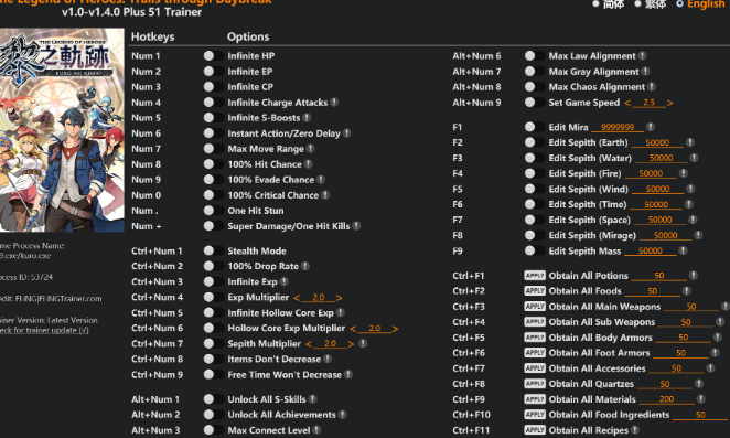 正文摘要:replyreload += ',' + 2412130; 《英雄傳說 黎之軌跡》風靈月影修改器 快速閱讀精華 🔥 戰鬥無雙模式: 無限HP、EP、CP,還有立即行動、必定命中閃避跟一擊必殺,讓你輕鬆碾壓任何戰鬥! 📈 光速成長: 無限經驗、核心迴路經驗,搭配經驗值與晶石倍率,角色成長免煩惱。 💎 資源財富自由: 米拉、七耀石隨你改,道具使用不減少,想買什麼就買什麼,想裝什麼迴路就裝什麼! 🔓 一鍵解鎖全收集: 直接獲得所有武器、防具、迴路、食譜,還能解鎖全S戰技,完美主義者的福音! 🎮 支援遊戲版本: 本修改器支援 v1.0 至 v1.4.0+ 的所有遊戲版本。 .article-toc { border: 1px solid #ddd; padding: 15px; background: #f9f9f9; border-radius: 6px; margin: 20px 0; width: 90%;}.article-toc br { display: none;}.toc-title { /* --- 以下是合併進來的 H2 樣式 --- */ font-size: 1.25em; /* 125% */ border-left: 5px solid #2A98DA; border-radius: 2px; padding: 5px 0px 5px 10px; font-weight: bold; margin: 0 0 15px 0; /* 調整了 margin,只留下方 15px */ color: #333; line-height: 1.5; background-color: #f8f8f8; /* --- 樣式合併結束 --- */}.toc-list { list-style: none; padding-left: 0;}.toc-list li { margin: 8px 0;}.toc-list a { color: #2A98DA; text-decoration: none;}.toc-list a:hover { text-decoration: underline;}.back-to-top { display: block; margin-top: 10px; font-size: 0.9em; color: #666;}本文章目錄修改器介紹與重要提醒document.currentScript.previousElementSibling.href = location.href.split('#')[0] + '#intro';51項修改功能詳細列表document.currentScript.previousElementSibling.href = location.href.split('#')[0] + '#options';風靈月影修改器下載點 🔽document.currentScript.previousElementSibling.href = location.href.split('#')[0] + '#download';常見問題Q&Adocument.currentScript.previousElementSibling.href = location.href.split('#')[0] + '#faq'; 修改器介紹與重要提醒 嘿,各位游擊士...啊不對,是地下萬事屋的夥伴們!在《黎之軌跡》的卡爾瓦德共和國冒險,是不是覺得JRPG的農怪練等、賺錢刷寶石的過程,有時候會讓人有點疲乏,只想好好享受「軌跡」系列最引人入勝的劇情? 你的心聲我們聽到了!這篇攻略就是要為大家獻上大神「風靈月影」的專用修改器,支援遊戲 v1.0 到 v1.4.0+ 版本。它提供了多達51項的超強大功能,從戰鬥、養成到物品收集,讓你擺脫所有枯燥的重複作業,專心沉浸在黎軌的精彩故事中! 👉 GM後台版 遊戲 推薦 ⬇️⬇️⬇️ 快速玩各種二次元動漫手遊app 重要提醒:使用前必讀 在開啟你的「外掛」人生之前,請務必花點時間閱讀以下提醒,這能讓你的共和國之旅更順利也更安全。 風險聲明: 使用任何第三方修改工具都可能存在風險,例如遊戲崩潰或存檔損壞。強烈建議大家在單機模式下使用,並且養成隨時備份遊戲存檔的好習慣,以防萬一! 防毒軟體提示: 修改器因為運作原理的關係,很容易被防毒軟體誤判為有威脅的程式。這其實是正常現象,下載後如果檔案被擋下,請手動將其加入信任清單,或暫時關閉防毒軟體後再執行。 版本對應: 請務必確認你的遊戲版本與修改器支援的版本相符。如果版本不對,可能會導致功能無效或遊戲閃退喔! 51項修改功能詳細列表 功能實在太多了!我們特別把它們分門別類,方便你快速找到需要的功能。 戰鬥相關 數字鍵 1 - 無限HP數字鍵 2 - 無限EP數字鍵 3 - 無限CP數字鍵 4 - 無限蓄力攻擊數字鍵 5 - 無限S-Boost數字鍵 6 - 立即行動/零延遲數字鍵 7 - 最大移動範圍數字鍵 8 - 100%命中率數字鍵 9 - 100%閃避率數字鍵 0 - 100%暴擊率數字鍵 . - 一擊暈眩數字鍵 + - 超級傷害/一擊必殺 探索與資源 Ctrl+數字鍵 1 - 潛行模式Ctrl+數字鍵 2 - 100%掉落率Ctrl+數字鍵 3 - 無限經驗Ctrl+數字鍵 4 - 經驗倍率調整Ctrl+數字鍵 5 - 無限核心迴路經驗Ctrl+數字鍵 6 - 核心迴路經驗倍率Ctrl+數字鍵 7 - 晶石倍率Ctrl+數字鍵 8 - 道具不減Ctrl+數字鍵 9 - 自由時間不減 系統與解鎖 Alt+數字鍵 1 - 解鎖全部S-SkillAlt+數字鍵 2 - 解鎖全部成就Alt+數字鍵 3 - Connect等級最大Alt+數字鍵 4 - 美食點數最大Alt+數字鍵 5 - SP最大/事務所評價最高Alt+數字鍵 6 - 秩序(Law)陣營值最大Alt+數字鍵 7 - 灰色(Gray)陣營值最大Alt+數字鍵 8 - 混沌(Chaos)陣營值最大Alt+數字鍵 9 - 設定遊戲速度 數值編輯 (F1-F9) F1 - 編輯米拉F2 - 編輯地屬性晶石F3 - 編輯水屬性晶石F4 - 編輯火屬性晶石F5 - 編輯風屬性晶石F6 - 編輯時屬性晶石F7 - 編輯空屬性晶石F8 - 編輯幻屬性晶石F9 - 編輯晶石塊 一鍵獲取所有物品 (Ctrl+F1-F12) 【小知識】這是一系列非常強大的功能,按下後會直接給你遊戲中該分類的所有道具各99個,使用前請三思! Ctrl+F1 - 獲得所有藥品Ctrl+F2 - 獲得所有料理Ctrl+F3 - 獲得所有主武器Ctrl+F4 - 獲得所有副武器Ctrl+F5 - 獲得所有身體防具Ctrl+F6 - 獲得所有腳部防具Ctrl+F7 - 獲得所有飾品Ctrl+F8 - 獲得所有迴路Ctrl+F9 - 獲得所有材料Ctrl+F10 - 獲得所有食材Ctrl+F11 - 獲得所有食譜Ctrl+F12 - 獲得所有禮物 風靈月影修改器下載點 🔽 準備好在卡爾瓦德共和國橫著走了嗎?點擊下方連結,立即下載這款軌跡神器! 所有站內附件皆會附上安全掃描報告請會員查看純淨度百分比後判斷使用(adsbygoogle = window.adsbygoogle || []).push({});相關檔案須知:取得檔案前,請先詳細閱讀文章內容避免不必要錯誤與誤會發生。也可多參考文章討論樓層內容了解附件檔案相關討論資訊。 【此文章部分內容隱藏中】 解除隱藏說明教學點擊下方 繼續閱讀文章 後請仔細觀看文章內容 並依照指示進行下