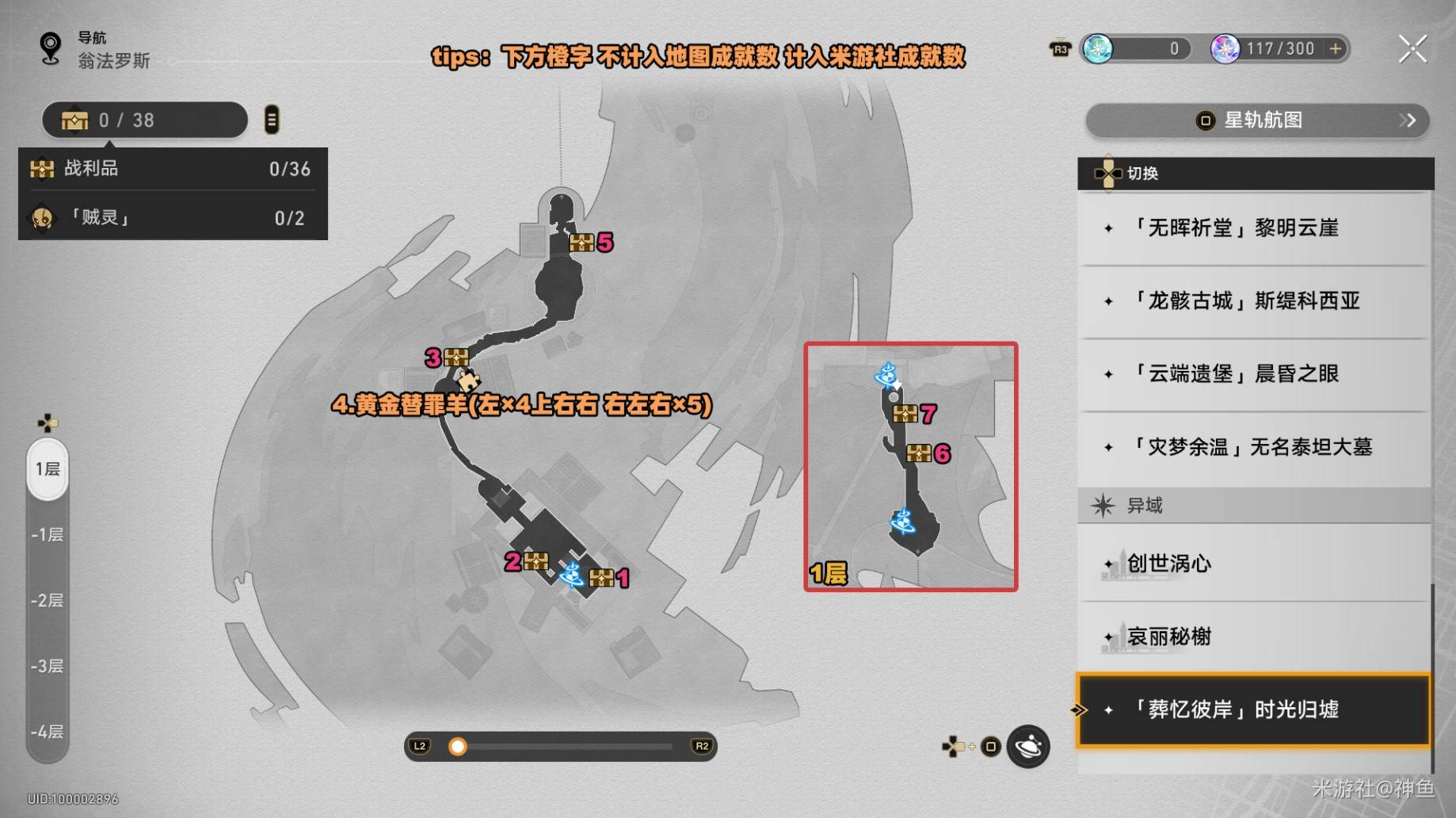 正文摘要:《崩壞:星穹鐵道》葬憶彼岸 時光歸墟 戰利品寶箱全收集 快速閱讀精華 🚀 核心目標: 收集《崩壞:星穹鐵道》3.7版本新地圖「葬憶彼岸」的「時光歸墟」區域,總共 46個戰利品!🔑 戰利品組成: 36個 一般可見戰利品 2個 賊靈寶箱 4個 隱藏黃金替罪羊 1個 神祕預言算碑 (解謎後才會顯示在地圖上) 2個 黃金短矛 1個 特殊蟲鳴祕聞 💡 重要提醒: 「預言算碑」在解謎前地圖上不會顯示,完成解謎後才會出現喔! 本文章目錄.article-toc { border: 1px solid #ddd; padding: 15px; background: #f9f9f9; border-radius: 6px; margin: 20px 0; width: 95%;}.toc-title { /* --- 以下是合併進來的 H2 樣式 --- */ font-size: 1.25em; /* 125% */ border-left: 5px solid #2A98DA; border-radius: 2px; padding: 5px 0px 5px 10px; font-weight: bold; margin: 0 0 15px 0; /* 調整了 margin,只留下方 15px */ color: #333; line-height: 1.5; background-color: #f8f8f8; /* --- 樣式合併結束 --- */}.toc-list { list-style: none; padding-left: 0;}.toc-list li { margin: 8px 0;}.toc-list a { color: #2A98DA; text-decoration: none;}.toc-list a:hover { text-decoration: underline;}.back-to-top { display: block; margin-top: 10px; font-size: 0.9em; color: #666;}葬憶彼岸 時光歸墟 戰利品分佈總覽document.currentScript.previousElementSibling.href = location.href.split('#')[0] + '#overview'; 常見問題Q&Adocument.currentScript.previousElementSibling.href = location.href.split('#')[0] + '#faq'; 是不是還在為了找《崩壞:星穹鐵道》3.7版本全新地圖「葬憶彼岸」中「時光歸墟」區域的戰利品寶箱而傷透腦筋呢?別擔心!本篇攻略將手把手帶你掌握所有戰利品的位置,讓你輕鬆將46個寶箱通通抱回家! 我們實際探索後發現,「時光歸墟」的戰利品共包含36個可見寶箱、2個賊靈、4個黃金替罪羊、1個預言算碑、2個黃金短矛以及1個蟲鳴祕聞。其中最特別的就是「預言算碑」,它並不會一開始就顯示在地圖上,需要完成特定解謎後才會出現喔!快跟著我們一起,不錯過任何一個珍貴的寶箱吧! 葬憶彼岸 時光歸墟 戰利品分佈總覽 這裡提供的是『葬憶彼岸 時光歸墟』區域內所有46個戰利品的完整分佈概覽。這些戰利品包含了多種類型,確保玩家能夠全面收集。 總體而言,這46個戰利品由以下幾種類型組成: 36個 是地圖上直接可見的一般戰利品寶箱。 2個 是需要擊敗特殊敵人「賊靈」後才能取得的獎勵。 4個 是隱藏的「黃金替罪羊」,通常需要進行一些互動或解謎。 1個 是「預言算碑」,這是一個比較特殊的項目。 2個 是「黃金短矛」,同樣可能需要特定條件才能取得。 1個 是「蟲鳴祕聞」,這類項目通常與劇情或特殊事件相關。 【小知識】預言算碑特別提醒! 我們團隊在收集過程中發現,『預言算碑』這個戰利品在解謎之前並不會在地圖上顯示出來。它只有在玩家成功完成相關的解謎任務後,才會正式出現在地圖上,這點請各位開拓者們務必留意,以免以為是遊戲錯誤而錯過它喔! 以下是地圖上的實際標示,方便大家參考對照: 以下廣告滑動後還有帖子內容var custom_call_MIR = function (params) {if ( params === null || params.hasAd === false ) {var divRowSide;for (let index = 0; index < ONEADs.length; index++) {if (ONEADs[index].pub.player_mode === "mobile-inread") {divRowSide = ONEADs[index].pub.slotobj;}}var ins = document.createElement('ins');ins.className = 'clickforceads';ins.setAttribute('style', 'display:inline-block;');ins.setAttribute('data-ad-zone', '18264');divRowSide.appendChild(ins);var js = document.createElement('script');js.async = true;js.type = 'text/javascript';js.setAttribute('src', '//cdn.holmesmind.com/js/init.js');js.onload = function(){console.log('[ONEAD MIR] ClickForce Loaded');};divRowSide.appendChild(js);}};var _ONEAD = {};_ONEAD.pub = {};_ONEAD.pub.slotobj = document.getElementById("oneadMIRDFPTag");_ONEAD.pub.slots = ["div-onead-ad"];_ONEAD.pub.uid = "1000509";_ONEAD.pub.external_url = "https://onead.onevision.com.tw/";_ONEAD.pub.scopes = ["spotbuy", "speed"];_ONEAD.pub.player_mode_div = "div-onead-ad";_ONEAD.pub.player_mode = "mobile-inread";_ONEAD.pub.queryAdCallback = custom_call_MIR;var ONEAD_pubs = ONEAD_pubs || [];ONEAD_pubs.push(_ONEAD);var truvidScript = document.createElement('script'); truvidScript.async = true; truvidScript.setAttribute('data-cfasync','false'); truvidScript.type = 'text/javascript'; truvidScript.src = '//stg.truvidplayer.com/index.php?sub_user_id=597&widget_id=3309&playlist_id=2381&m=a&cb=' + (Math.random() * 10000000000000000); var currentScript = document.currentScript || document.scripts[document.scripts.length - 1]; currentScript.parentNode.insertBefore(truvidScript, currentScript.nextSibling); 《崩壞:星穹鐵道》葬憶彼岸 時光歸墟 常見問題Q&A Q:我找不到「預言算碑」在哪裡,是不是地圖出問題了? A:別擔心,這不是Bug!「預言算碑」確實比較特別,它在解謎前是不會顯示在地圖上的。請先專注於完成周圍的探索或任務,一旦相關解謎完成,它就會自動在地圖上出現了。 Q:地圖上沒有顯示寶箱,是不是我漏掉了什麼設定? A:地圖上沒有顯示寶箱通常有幾種情況:一種是像「預言算碑」那樣需要解謎才會出現;另一種可能是隱藏的「黃金替罪羊」或「賊靈」,它們需要觸發特定事件或擊敗敵人後才會顯現。建議多探索地圖角落或與NPC互動,說不定會有意外發現喔! Q:『時光歸墟』地圖是不是有不同層樓或隱藏區域? A:是的,「葬憶彼岸」作為一張新地圖,可能會包含多層結構或一些需要特定條件才能進入的隱藏區域。在探索過程中,務必留意是否有電梯、傳送門或可破壞的障礙物,這些都可能通往新的寶箱點
