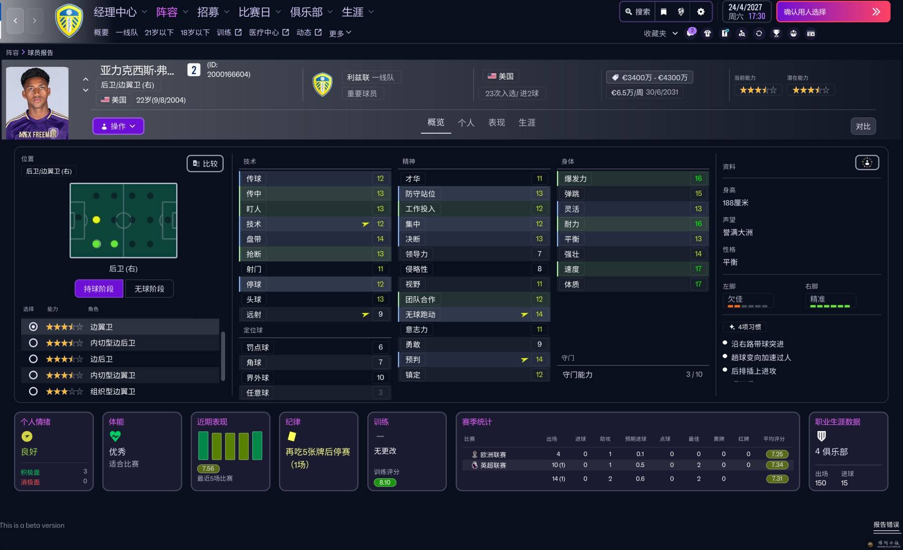 正文摘要:《足球經理2026》便宜右後衛推薦攻略 快速閱讀精華 🚀 核心主題: 尋找《足球經理2026》中CP值超高的右後衛,為中小球隊補強後防線!🔑 推薦球員: 亞歷克西斯·弗里曼 (Alexis Freeman)💰 入手難度: 開檔轉會費不高,物超所值。💪 球員特色: 實力強勁,是防線上的可靠選擇。 是不是還在為了《足球經理2026(FM2026)》裡,預算有限卻想找到CP值超高的右後衛而煩惱呢?別擔心!本篇攻略將為大家揭曉一位又便宜又實用的防線好手,保證讓你的中小球隊戰力大增,輕鬆打造堅實後防! CP值爆表!右後衛球員強勢推薦 我們團隊在實際測試《足球經理2026(FM2026)》後,一致推薦這位防線上的寶藏球員——亞歷克西斯·弗里曼 (Alexis Freeman)。 👉 GM後台版 遊戲 推薦 ⬇️⬇️⬇️ 快速玩各種二次元動漫手遊app 這位年輕的右後衛,在遊戲開檔時只需要一筆不高的轉會費,就能帶回球隊。但別被他的價格騙了,弗里曼在場上的表現絕對是頂級水準,無論是防守還是輔助進攻,都能給球隊帶來巨大幫助,絕對是中小球隊補強後防線的完美人選! 【小知識】 所謂「CP值」,就是「性能價格比」的縮寫。在遊戲中,我們常用來形容那些花費不高,但能力和表現卻遠超預期的球員或道具,可以說是玩家們追求效益最大化的最佳選擇喔! 以下廣告滑動後還有帖子內容var custom_call_MIR = function (params) {if ( params === null || params.hasAd === false ) {var divRowSide;for (let index = 0; index < ONEADs.length; index++) {if (ONEADs[index].pub.player_mode === "mobile-inread") {divRowSide = ONEADs[index].pub.slotobj;}}var ins = document.createElement('ins');ins.className = 'clickforceads';ins.setAttribute('style', 'display:inline-block;');ins.setAttribute('data-ad-zone', '18264');divRowSide.appendChild(ins);var js = document.createElement('script');js.async = true;js.type = 'text/javascript';js.setAttribute('src', '//cdn.holmesmind.com/js/init.js');js.onload = function(){console.log('[ONEAD MIR] ClickForce Loaded');};divRowSide.appendChild(js);}};var _ONEAD = {};_ONEAD.pub = {};_ONEAD.pub.slotobj = document.getElementById("oneadMIRDFPTag");_ONEAD.pub.slots = ["div-onead-ad"];_ONEAD.pub.uid = "1000509";_ONEAD.pub.external_url = "https://onead.onevision.com.tw/";_ONEAD.pub.scopes = ["spotbuy", "speed"];_ONEAD.pub.player_mode_div = "div-onead-ad";_ONEAD.pub.player_mode = "mobile-inread";_ONEAD.pub.queryAdCallback = custom_call_MIR;var ONEAD_pubs = ONEAD_pubs || [];ONEAD_pubs.push(_ONEAD);var truvidScript = document.createElement('script'); truvidScript.async = true; truvidScript.setAttribute('data-cfasync','false'); truvidScript.type = 'text/javascript'; truvidScript.src = '//stg.truvidplayer.com/index.php?sub_user_id=597&widget_id=3309&playlist_id=2381&m=a&cb=' + (Math.random() * 10000000000000000); var currentScript = document.currentScript || document.scripts[document.scripts.length - 1]; currentScript.parentNode.insertBefore(truvidScript, currentScript.nextSibling); 《足球經理2026》便宜右後衛推薦攻略 常見問題Q&A Q:這位推薦的右後衛在什麼時候入手最划算? A:通常在遊戲開檔時(第一個轉會窗),他的轉會費會相對較低,是最佳的入手時機。隨著遊戲時間推進和球員能力成長,價格可能會上漲喔! Q:亞歷克西斯·弗里曼適合所有戰術體系嗎? A:弗里曼屬於全面型右後衛,他的攻守能力都相當不錯。基本上可以適應大多數需要邊後衛參與攻防的戰術,但具體效果還是要根據您的戰術設定和隊友搭配來決定。 |