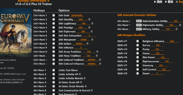 正文摘要:replyreload += ',' + 2413736; 《歐陸風雲V》風靈月影修改器 快速閱讀精華 👑 一秒變富豪: 國庫金錢、穩定度、人力、威望...等核心資源,一鍵鎖定或修改,讓你再也不用為錢煩惱!⚔️ 無敵之師: 啟用我方單位無限血量 (HP)與無限士氣,同時還能削弱 AI 敵軍,輕鬆輾壓所有對手!🚀 帝國光速建成: 啟用快速建造、快速招募、快速研究等功能,體驗光速發展的快感。👨🎓 神君降臨: 自由編輯君主和繼承人的行政、外交、軍事能力,培養完美統治者。⚠️ 版本對應: 本修改器支援遊戲版本 v1.0 至 v1.0.2+,使用前請務必核對。 .article-toc { border: 1px solid #ddd; padding: 15px; background: #f9f9f9; border-radius: 6px; margin: 20px 0; width: 90%;}.article-toc br { display: none;}.toc-title { /* --- 以下是合併進來的 H2 樣式 --- */ font-size: 1.25em; /* 125% */ border-left: 5px solid #2A98DA; border-radius: 2px; padding: 5px 0px 5px 10px; font-weight: bold; margin: 0 0 15px 0; /* 調整了 margin,只留下方 15px */ color: #333; line-height: 1.5; background-color: #f8f8f8; /* --- 樣式合併結束 --- */}.toc-list { list-style: none; padding-left: 0;}.toc-list li { margin: 8px 0;}.toc-list a { color: #2A98DA; text-decoration: none;}.toc-list a:hover { text-decoration: underline;}.back-to-top { display: block; margin-top: 10px; font-size: 0.9em; color: #666;}本文章目錄前言:當上帝,還是當個掙扎的國王?document.currentScript.previousElementSibling.href = location.href.split('#')[0] + '#intro'; 重要風險提醒 (新手必讀)document.currentScript.previousElementSibling.href = location.href.split('#')[0] + '#risk_warning'; 修改器功能詳解 (33項)document.currentScript.previousElementSibling.href = location.href.split('#')[0] + '#functions'; - 核心資源與國家數值修改document.currentScript.previousElementSibling.href = location.href.split('#')[0] + '#functions_core'; - 軍事、建造與發展加速document.currentScript.previousElementSibling.href = location.href.split('#')[0] + '#functions_mil'; - 統治者能力編輯document.currentScript.previousElementSibling.href = location.href.split('#')[0] + '#functions_char'; - 宗教數值修改document.currentScript.previousElementSibling.href = location.href.split('#')[0] + '#functions_rel'; 風靈月影修改器下載 🔽document.currentScript.previousElementSibling.href = location.href.split('#')[0] + '#download'; 修改器常見問題Q&Adocument.currentScript.previousElementSibling.href = location.href.split('#')[0] + '#faq'; 前言:當上帝,還是當個掙扎的國王? 各位國王、皇帝們,在《歐陸風雲V》的壯闊歷史中,是不是也曾遇過國庫見底、人力枯竭、被強敵圍毆的絕望時刻?想推行改革卻點數不足,想建立偉大奇觀卻等到天荒地老? 別擔心,你的煩惱我們都懂!今天就是要為大家帶來治國神兵——風靈月影大神製作的《歐陸風雲V》v1.0-v1.0.2+ 專用 33 項功能修改器。這款工具將賦予你如同上帝般的力量,讓你跳過艱苦的累積過程,專心享受運籌帷幄、擴張版圖的樂趣。無論是想體驗百萬大軍橫掃歐洲的快感,還是想輕鬆達成各種高難度成就,這份攻略都能幫到你! 重要風險提醒 (新手必讀) 在開始您的稱霸之路前,請務必花一分鐘閱讀以下重要提醒,這是我們身為攻略專家的責任: 單人遊戲限定: 修改器絕對不能用於多人連線模式,這不僅會造成連線問題,也是對其他玩家的不尊重。 版本對應是關鍵: 請確保你的遊戲版本與修改器支援的 v1.0-v1.0.2+ 相符。版本不符是導致修改器失效最常見的原因。 存檔損壞風險: 使用修改器可能會有極低機率導致遊戲存檔損壞。強烈建議在啟用修改器前,手動備份您的重要存檔! 樂趣可能減少: 過度依賴修改器可能會減少遊戲本身的挑戰性和樂趣。建議在熟悉遊戲或卡關時適度使用。 防毒軟體誤判: 這類修改器程式很可能被部分防毒軟體誤報為病毒,這屬於正常現象。下載後請自行決定是否要加入信任區。 👉 GM後台版 遊戲 推薦 ⬇️⬇️⬇️ 快速玩各種二次元動漫手遊app 修改器功能詳解 (33項) 底下我們將 33 項強大功能分門別類,並附上熱鍵與口語化說明,讓大家能快速上手! 核心資源與國家數值修改 這部分是帝國的基石,讓你從此不再為資源發愁。 Ctrl+Num 1 – 編輯金錢 (Edit Gold):國庫就是你的提款機,無限金錢不是夢!Ctrl+Num 2 – 編輯穩定度 (Edit Stability):一鍵拉滿穩定,告別叛亂煩惱。Ctrl+Num 3 – 編輯正統性 (Edit Legitimacy):維持最高正統性,國家穩如泰山。Ctrl+Num 4 – 編輯威望 (Edit Prestige):威望輕鬆破百,外交無往不利。Ctrl+Num 5 – 編輯外交官數量 (Edit Diplomats):再也不怕外交官不夠用。Ctrl+Num 6 – 編輯厭戰度 (Edit War Exhaustion):將厭戰降至零,人民好戰如狂。Ctrl+Num 7 – 編輯人力 (Edit Manpower):百萬後備軍隨時待命。Ctrl+Num 8 – 編輯海員 (Edit Sailors):打造無敵艦隊,海員源源不絕。Ctrl+Num 9 – 編輯通货膨脹 (Edit Inflation):消除通膨,經濟健康發展。Ctrl+Num 0 – 編輯陸軍傳統 (Edit Army Tradition):開局就有百戰名將。Ctrl+Num . – 編輯海軍傳統 (Edit Navy Tradition):打造傳奇海軍。Ctrl+Num + – 編輯文化傳統 (Edit Cultural Tradition)Ctrl+Num – – 編輯文化影響力 (Edit Cultural Influence) 軍事、建造與發展加速 想體驗光速擴張的快感?用這些就對了! Alt+Num 1 – 單位快速移動 (Units: Fast Move):大軍橫跨地圖只需一瞬間。Alt+Num 2 – 我方單位無限生命 (Units: Infinite HP):你的軍隊將化身不死鐵軍。Alt+Num 3 – 我方單位無限士氣 (Units: Infinite Morale):士氣永不崩潰,戰鬥到底。Alt+Num 4 – AI 單位生命清空 (AI Uni