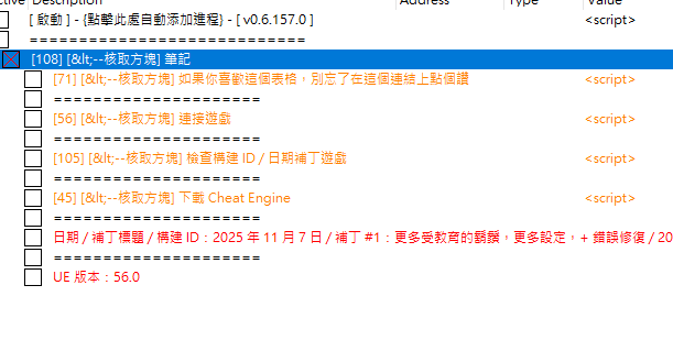 正文摘要:replyreload += ',' + 2413759; 《鼠寶小鎮 Whiskerwood》資源修改腳本 快速閱讀精華 🧀 核心功能: 讓你一秒變身倉鼠富翁!無限 食物、飲料、外交點數、研究貨幣 通通搞定!🛠️ 隱藏彩蛋: 提供「開發者工具 (Dev Tools)」開關,解鎖遊戲內隱藏的上帝模式!🎮 適用版本: v0.6.157.0 (Build ID: 20707012),版本不對腳本會失效喔!💡 最大亮點: 一鍵啟動!腳本會自動幫你綁定遊戲,連手動找進程都省了,懶人福音! 本文章目錄.article-toc { border: 1px solid #ddd; padding: 15px; background: #f9f9f9; border-radius: 6px; margin: 20px 0; width: 95%;}.toc-title { /* --- 以下是合併進來的 H2 樣式 --- */ font-size: 1.25em; /* 125% */ border-left: 5px solid #2A98DA; border-radius: 2px; padding: 5px 0px 5px 10px; font-weight: bold; margin: 0 0 15px 0; /* 調整了 margin,只留下方 15px */ color: #333; line-height: 1.5; background-color: #f8f8f8; /* --- 樣式合併結束 --- */}.toc-list { list-style: none; padding-left: 0;}.toc-list li { margin: 8px 0;}.toc-list a { color: #2A98DA; text-decoration: none;}.toc-list a:hover { text-decoration: underline;}.back-to-top { display: block; margin-top: 10px; font-size: 0.9em; color: #666;}鼠寶小鎮不夠住?資源短缺救星來了!document.currentScript.previousElementSibling.href = location.href.split('#')[0] + '#game_intro'; 重要提醒:使用前必讀document.currentScript.previousElementSibling.href = location.href.split('#')[0] + '#risk_warning'; 腳本功能詳解document.currentScript.previousElementSibling.href = location.href.split('#')[0] + '#feature_list'; CE腳本下載點 🔽document.currentScript.previousElementSibling.href = location.href.split('#')[0] + '#download_point'; 一鍵啟動!超簡單使用教學document.currentScript.previousElementSibling.href = location.href.split('#')[0] + '#install_guide'; 《鼠寶小鎮》腳本常見問題Q&Adocument.currentScript.previousElementSibling.href = location.href.split('#')[0] + '#faq'; 鼠寶小鎮不夠住?資源短缺救星來了! 歡迎來到《鼠寶小鎮 Whiskerwood》,在這個可愛的世界裡,經營一個繁榮的鼠寶家園是最大的樂趣。但隨著小鎮發展,是不是常常覺得食物不夠吃、研究點數卡關,影響力也難以擴張?別擔心,卡關的朋友們有福了! 這篇攻略將為大家帶來一款超方便的CE修改腳本,專為遊戲版本 v0.6.157.0 (Patch #1: More Educated Whiskers, More Settings, + BugFixes / Build ID: 20707012) 設計。它不僅能讓你輕鬆修改各種資源,甚至還能打開遊戲隱藏的「開發者工具」,讓你用更自由的方式體驗遊戲! 👉 GM後台版 遊戲 推薦 ⬇️⬇️⬇️ 快速玩各種二次元動漫手遊app 重要提醒:使用前必讀 在我們開始享受無限資源的快感之前,有幾件重要的事情得先提醒大家: 這是一款非官方的第三方工具,使用前請務必了解可能伴隨的風險。強烈建議大家在啟用腳本前,先手動備份你的遊戲存檔,養成好習慣,以防萬一。請務必核對你的遊戲版本是否為 v0.6.157.0,版本不符是導致腳本失效最常見的原因。本工具僅限於單人遊戲模式下使用,享受自己的遊戲樂趣就好,請勿用於多人模式或破壞他人體驗。 腳本功能詳解 這款腳本的功能非常全面,從基礎資源到進階點數,甚至連隱藏功能都幫你準備好了! 基礎資源修改 再也不用擔心鼠寶們餓肚子了! 食物數量 (Food Count): 包含生的 (Raw) 跟熟的 (Cooked)。飲料數量 (Drink Count) 核心貨幣與點數 加速你的小鎮發展,讓外交和研究暢行無阻! 玩家銀行 (Player Bank): 應該就是你的主要貨幣啦!外交點數 (Diplomacy Points)影響力貨幣 (Influence Currency)研究貨幣 (Research Currency)動盪貨幣 (M_Unrest Currency) 同時,你也可以修改各種貨幣的「容量上限」,讓你存得更多! 上帝模式:開發者工具 這絕對是本腳本最酷的功能! 顯示開發者工具 (Show Dev Tools?): 啟用這個選項後,就可以打開遊戲內建的開發者除錯模式。這通常意味著你可以使用更多官方沒開放給玩家的作弊功能,徹底掌控遊戲的一切!快捷鍵操作: 腳本還貼心提供了數字鍵盤的快捷鍵,讓你快速開關功能: Numpad 1 = 啟用Numpad 0 = 停用 【小知識】在腳本列表中,你會看到一個銀色的項目「pBase」,這是整個腳本運作的核心基礎,就像房子的地基一樣。請絕對不要去修改它,否則整個腳本都會失靈喔! CE腳本下載點 🔽 要使用這個神奇的工具,你需要先安裝 Cheat Engine (CE) 這個主程式。 Cheat Engine (CE修改器) 7.5 漢化版 中文版 https://www.game735.com/thread-377613-1-1.html《Cheat Engine》V7.6 中文化版超強記憶體解鎖工具:遊戲外掛製作神器! https://www.game735.com/thread-416920-1-1.html 接著,就是我們今天的主角——鼠寶小鎮專用腳本啦! 所有站內附件皆會附上安全掃描報告請會員查看純淨度百分比後判斷使用(adsbygoogle = window.adsbygoogle || []).push({});相關檔案須知:取得檔案前,請先詳細閱讀文章內容避免不必要錯誤與誤會發生。也可多參考文章討論樓層內容了解附件檔案相關討論資訊。 【此文章部分內容隱藏中】 解除隱藏說明教學點擊下方 繼續閱讀文章 後請仔細觀看文章內容 並依照指示進行下一步最後完成解除隱藏後系統會回到此文章自動顯示隱藏內容~繼續閱讀 一鍵啟動!超簡單使用教學 這款腳本的作者設計得非常貼心,操作流程超級無腦,大家跟著做就對了! 步驟一:開啟遊戲 先進到《鼠寶小鎮》的遊戲世界中。 步驟二:打開腳本 直接雙擊你下載好的 `.CT` 檔案,它會自動用 Cheat Engine 開啟。 步驟三:點擊啟動 (重頭戲!) 看到 CE 視窗後,找到最上面那條「[ Activate ] - {Click here to add process automa