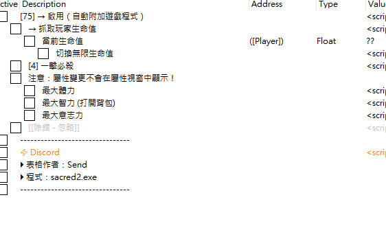 正文摘要:replyreload += ',' + 2414627; 《Sacred 2 Remaster》CE腳本 快速閱讀精華 🎮 支援遊戲: Sacred 2 Remaster🔧 必備工具: 需要搭配 Cheat Engine 軟體執行🚀 核心功能: 無限生命: 開啟無敵模式,再也不怕被怪物圍毆。一擊必殺: 任何敵人都擋不住你的一下攻擊。屬性全滿: 瞬間提升耐力、智力與意志力,成為最強英雄。 💡 版本提示: 提供原版與繁體中文化腳本,可依需求選用。 本文章目錄.article-toc { border: 1px solid #ddd; padding: 15px; background: #f9f9f9; border-radius: 6px; margin: 20px 0; width: 95%;}.toc-title { /* --- 以下是合併進來的 H2 樣式 --- */ font-size: 1.25em; /* 125% */ border-left: 5px solid #2A98DA; border-radius: 2px; padding: 5px 0px 5px 10px; font-weight: bold; margin: 0 0 15px 0; /* 調整了 margin,只留下方 15px */ color: #333; line-height: 1.5; background-color: #f8f8f8; /* --- 樣式合併結束 --- */}.toc-list { list-style: none; padding-left: 0;}.toc-list li { margin: 8px 0;}.toc-list a { color: #2A98DA; text-decoration: none;}.toc-list a:hover { text-decoration: underline;}.back-to-top { display: block; margin-top: 10px; font-size: 0.9em; color: #666;}【重要提醒】使用前必讀document.currentScript.previousElementSibling.href = location.href.split('#')[0] + '#warning'; 腳本功能亮點總整理document.currentScript.previousElementSibling.href = location.href.split('#')[0] + '#features'; 如何啟動你的英雄模式?CE腳本使用教學document.currentScript.previousElementSibling.href = location.href.split('#')[0] + '#how_to_use'; 《Sacred 2 Remaster》腳本下載點 🔽document.currentScript.previousElementSibling.href = location.href.split('#')[0] + '#download'; Sacred 2 Remaster 修改腳本 常見問題Q&Adocument.currentScript.previousElementSibling.href = location.href.split('#')[0] + '#faq'; 踏入廣闊的安卡利亞世界,卻覺得升級打寶的過程有點漫長嗎?想成為傳說中的六英雄之一,卻常常被強大的敵人打得灰頭土臉?如果你想跳過辛苦的農裝練功階段,直接體驗橫掃千軍的快感,那這份攻略就是為你準備的! 🦸 無限生命 (Toggle Infinite Health): 覺得 BOSS 太強或是怪物太多嗎?開啟這個功能後,你的血條就會被鎖定,直接進入無敵狀態,站著讓敵人打都不會死!💥 一擊必殺 (One Hit Kill): 厭倦了跟小怪慢慢磨?這個功能讓你的每一次攻擊都附帶秒殺效果,無論是小兵還是菁英怪,通通一下解決,大幅加快清圖效率。💪 屬性最大化 (Max Stamina / Intelligence / Willpower): 想要角色一開始就擁有頂天素質嗎?一鍵就能將你的耐力、智力、意志力等核心屬性提升到最大值,讓你成為文武雙全的超級英雄。🔍 抓取玩家血量 (Grab Player Health): 這是許多修改功能的基礎,腳本會先透過這個指令精準定位到你角色的生命值數據,才能進行後續的無限生命等操作。 如何啟動你的英雄模式?CE腳本使用教學 就算你是第一次接觸 CE 的新手玩家也別擔心,整個過程非常簡單,只要跟著以下步驟操作,馬上就能上手! 首先,你必須先在電腦上安裝 Cheat Engine 這套軟體。 【小知識】 什麼是CT檔?它就像是一張寫滿了各種密技指令的「武功秘笈」,而 Cheat Engine 就是唯一能看懂並施展這些招式的「練功心法」,兩者缺一不可。 還沒安裝的朋友,可以參考這邊的資源:Cheat Engine (CE修改器) 7.5 漢化版 中文版 https://www.game735.com/thread-377613-1-1.html《Cheat Engine》V7.6 中文化版超強記憶體解鎖工具:遊戲外掛製作神器! https://www.game735.com/thread-416920-1-1.html 下載本篇攻略提供的 CT 腳本檔案。先進入《Sacred 2 Remaster》遊戲中。打開 Cheat Engine,點擊左上角那個閃爍的「電腦」圖示。在跳出來的「處理程序列表」中,找到遊戲的執行檔(通常是 sacred2.exe 或類似的名稱),點選它並按下「開啟」。將你下載好的 CT 檔(例如 `sacred2_ZH.CT`)直接拖曳到 Cheat Engine 的主視窗裡。你會在下方的欄位看到腳本提供的所有功能列表,只要用滑鼠勾選你想要啟用的功能前面的小方框,就能立即生效! 《Sacred 2 Remaster》腳本下載點 底下我們提供了原版與繁體中文化的兩種腳本,建議直接下載中文化版本,介面更友善喔! 所有站內附件皆會附上安全掃描報告請會員查看純淨度百分比後判斷使用(adsbygoogle = window.adsbygoogle || []).push({});相關檔案須知:取得檔案前,請先詳細閱讀文章內容避免不必要錯誤與誤會發生。也可多參考文章討論樓層內容了解附件檔案相關討論資訊。 【此文章部分內容隱藏中】 解除隱藏說明教學點擊下方 繼續閱讀文章 後請仔細觀看文章內容 並依照指示進行下一步最後完成解除隱藏後系統會回到此文章自動顯示隱藏內容~繼續閱讀 Sacred 2 Remaster 修改腳本 常見問題Q&A Q:我應該下載哪個檔案?兩個有什麼不一樣? A:`sacred2.CT` 是英文原版,`sacred2_ZH.CT` 是經過繁體中文化後的版本,功能完全一樣,只是介面文字不同。我們強烈建議新手下載 `_ZH` 版本,所有功能名稱一目了然,更容易操作。 Q:在 Steam 上玩,使用這個會不會被鎖帳號? A:《Sacred 2 Remaster》本質上是一款單機遊戲,在自己的單人世界中使用修改工具,被官方處罰的風險極低。但請記住,絕對不要在任何有連線功能的遊戲上使用,以免造成不必要的麻煩。 Q:為什麼我勾選了功能,但遊戲裡沒有任何反應? A:最常見的原因是遊戲版本不符。請確認你的遊戲版本是否和腳本支援的版本一致。如果遊戲最近有更新,舊的腳本就可能失效。另一個可能是你沒有正確附加到遊戲的處理程序上,可以關掉 CE 重啟一次試試。 Q:開啟 Cheat Engine 後,我的防毒