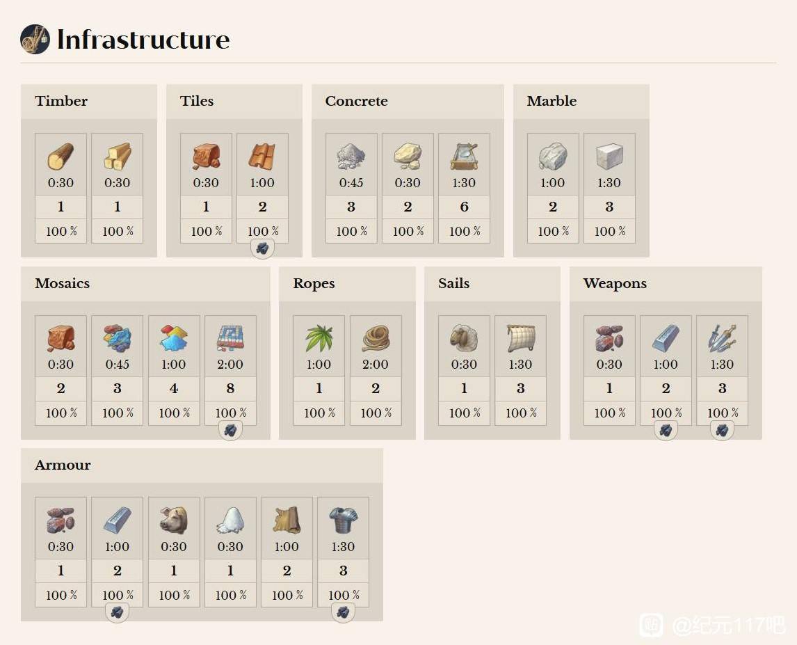 正文摘要:《美麗新世界117: 羅馬治世》建築比例 快速閱讀精華 🔑 核心煩惱: 資源供應鏈不平衡,常常導致某些物資爆炸多、某些物資蓋太多也缺貨!📈 解決之道: 建立精確的生產線比例,達成完美供需平衡,讓你的帝國穩定發展。🎯 本篇重點: 我們整理了完整的建築比例圖表,讓你一眼看清上游原料到下游產品的配置!💡 使用指南: 請直接參考下方各個圖表,確認你當前所需的物資生產鏈比例。 .article-toc { border: 1px solid #ddd; padding: 15px; background: #f9f9f9; border-radius: 6px; margin: 20px 0; width: 90%;}.article-toc br { display: none;}.toc-title { /* --- 以下是合併進來的 H2 樣式 --- */ font-size: 1.25em; /* 125% */ border-left: 5px solid #2A98DA; border-radius: 2px; padding: 5px 0px 5px 10px; font-weight: bold; margin: 0 0 15px 0; /* 調整了 margin,只留下方 15px */ color: #333; line-height: 1.5; background-color: #f8f8f8; /* --- 樣式合併結束 --- */}.toc-list { list-style: none; padding-left: 0;}.toc-list li { margin: 8px 0;}.toc-list a { color: #2A98DA; text-decoration: none;}.toc-list a:hover { text-decoration: underline;}.back-to-top { display: block; margin-top: 10px; font-size: 0.9em; color: #666;}本文章目錄追求完美平衡!必備的建築生產比例document.currentScript.previousElementSibling.href = location.href.split('#')[0] + '#perfect_ratio'; 紀元117 建築比例 常見問題Q&Adocument.currentScript.previousElementSibling.href = location.href.split('#')[0] + '#faq'; 追求完美平衡!紀元117 必備的建築生產比例 在《美麗新世界117: 羅馬治世》這款策略遊戲中,建築比例的配置絕對是決定你帝國能否穩定成長的關鍵。如果你的上游原料生產速度跟不上中游加工需求,或是下游的工廠蓋得比農場多,就會造成嚴重的資源浪費或短缺。 為了讓大家避免這種頭痛的資源分配問題,我們特別整理了這份完美供應鏈建築比例圖表。這些圖表精確地展示了從基礎原料到最終產品所需的工廠、農場和加工廠的最佳數量比例,幫助你達成真正的供需平衡,告別資源過剩或赤字! 供應鏈建築比例圖集 請參考以下圖表,圖中已詳細標示了達成完美供應鏈所需的生產建築比例(例如:1個原料廠對應多少個加工廠)。 《美麗新世界117: 羅馬治世》資源平衡 重點回顧 🔑 比例至上: 在擴展城鎮規模前,務必先確定該資源鏈的上下游建築比例,避免盲目擴張。⚙️ 鏈條思維: 所有的生產都是一條鏈,如果鏈條中斷(例如原料不足),後續所有的產品都會停擺。請確保原料:加工廠的比例穩定。💰 節省成本: 遵循這些比例不僅能保證物資供應,還能避免建造過多閒置的建築,有效節省維護費用。 以下廣告滑動後還有帖子內容var custom_call_MIR = function (params) {if ( params === null || params.hasAd === false ) {var divRowSide;for (let index = 0; index < ONEADs.length; index++) {if (ONEADs[index].pub.player_mode === "mobile-inread") {divRowSide = ONEADs[index].pub.slotobj;}}var ins = document.createElement('ins');ins.className = 'clickforceads';ins.setAttribute('style', 'display:inline-block;');ins.setAttribute('data-ad-zone', '18264');divRowSide.appendChild(ins);var js = document.createElement('script');js.async = true;js.type = 'text/javascript';js.setAttribute('src', '//cdn.holmesmind.com/js/init.js');js.onload = function(){console.log('[ONEAD MIR] ClickForce Loaded');};divRowSide.appendChild(js);}};var _ONEAD = {};_ONEAD.pub = {};_ONEAD.pub.slotobj = document.getElementById("oneadMIRDFPTag");_ONEAD.pub.slots = ["div-onead-ad"];_ONEAD.pub.uid = "1000509";_ONEAD.pub.external_url = "https://onead.onevision.com.tw/";_ONEAD.pub.scopes = ["spotbuy", "speed"];_ONEAD.pub.player_mode_div = "div-onead-ad";_ONEAD.pub.player_mode = "mobile-inread";_ONEAD.pub.queryAdCallback = custom_call_MIR;var ONEAD_pubs = ONEAD_pubs || [];ONEAD_pubs.push(_ONEAD);var truvidScript = document.createElement('script'); truvidScript.async = true; truvidScript.setAttribute('data-cfasync','false'); truvidScript.type = 'text/javascript'; truvidScript.src = '//stg.truvidplayer.com/index.php?sub_user_id=597&widget_id=3309&playlist_id=2381&m=a&cb=' + (Math.random() * 10000000000000000); var currentScript = document.currentScript || document.scripts[document.scripts.length - 1]; currentScript.parentNode.insertBefore(truvidScript, currentScript.nextSibling); 紀元117 建築比例 常見問題Q&A Q:為什麼我按照比例蓋了,資源還是有時候會短缺? A:建築比例是基於100%效率計算的。如果你的原料生產地距離加工廠太遠、道路壅塞、或是工人缺乏,導致建築效率無法達到100%,就會出現短缺。建議優化道路、確保物流順暢。 Q:這些比例是否適用於所有資源? A:是的。這份圖集提供的比例涵蓋了遊戲中關鍵的供應鏈,無論是食物、衣物還是建材,都應遵循圖中所示的上下游比例來配置建築物數量。 Q:如果我的原料生產效率是75%,我該怎麼調整比例? A:你需要按比例增加上游原料的建築數量。舉例來說,如果完美比例是「1個農場對應2個加工廠」,當農場效率只有75%時,你需要蓋大約 1 / 0.75 = 1.33 個農場,才能滿足那2個加工廠的需求。 Q:我可以在不同島嶼上分散生產鏈嗎? A:可以,但這會增加運輸成本和複雜度。在不同島嶼分散生產鏈時,計算比例時必須考慮船運的效率和延遲,並且確保每個島嶼都有足夠的勞動力來支持生產。 Q:資源建築物(如伐木場)需要蓋幾座才夠? A:資源建築的數量取決於你服務的民房數量。你必須先決定要服務多少人口,然後根據人口的消耗速度,反推所需的最終產品數量,再由最終產品的比例圖,來推算出所需的原料建築數量。 |
