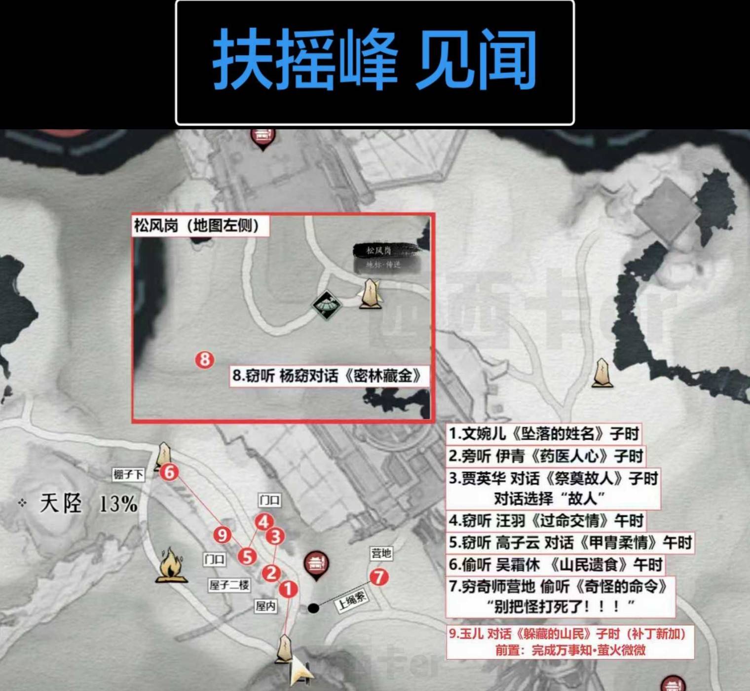 正文摘要:《燕雲十六聲》扶搖峯見聞快速閱讀精華 🚀 快速上手: 一次掌握《燕雲十六聲》新區域「扶搖峯」所有見聞點位!🔍 高清標示: 每張圖都為你精準標出見聞位置,讓你不再迷路!✅ 輕鬆收集: 跟著本篇攻略的圖示走,見聞收集不再是煩惱!🎮 探索必備: 助你徹底探索扶搖峯的每一處隱藏祕密與故事! .article-toc { border: 1px solid #ddd; padding: 15px; background: #f9f9f9; border-radius: 6px; margin: 20px 0; width: 90%;}.article-toc br { display: none;}.toc-title { /* --- 以下是合併進來的 H2 樣式 --- */ font-size: 1.25em; /* 125% */ border-left: 5px solid #2A98DA; border-radius: 2px; padding: 5px 0px 5px 10px; font-weight: bold; margin: 0 0 15px 0; /* 調整了 margin,只留下方 15px */ color: #333; line-height: 1.5; background-color: #f8f8f8; /* --- 樣式合併結束 --- */}.toc-list { list-style: none; padding-left: 0;}.toc-list li { margin: 8px 0;}.toc-list a { color: #2A98DA; text-decoration: none;}.toc-list a:hover { text-decoration: underline;}.back-to-top { display: block; margin-top: 10px; font-size: 0.9em; color: #666;}本文章目錄攻略引言document.currentScript.previousElementSibling.href = location.href.split('#')[0] + '#intro'; 扶搖峯見聞詳細位置document.currentScript.previousElementSibling.href = location.href.split('#')[0] + '#locations'; 扶搖峯見聞常見問題Q&Adocument.currentScript.previousElementSibling.href = location.href.split('#')[0] + '#faq'; 輕鬆探索新區域!《燕雲十六聲》扶搖峯見聞全攻略 各位《燕雲十六聲》的俠客們,是不是剛踏入最新的「扶搖峯」地圖,就被裡面琳瑯滿目的見聞收集搞得暈頭轉向,不知道從何找起呢?別擔心!本篇攻略就是為瞭解決你的煩惱而來。我們將帶你一步步走遍扶搖峯的每個角落,精準標示出所有見聞的確切位置,確保你不再錯過任何一個重要收集品。跟著我們的指引,輕鬆完成扶搖峯的見聞探索,完整體驗新地圖的魅力! 扶搖峯見聞詳細位置 以下是我們為大家整理的《燕雲十六聲》扶搖峯所有見聞點位,請跟著圖片上的標示,就能輕鬆找到所有散落在地圖各處的見聞囉! 《燕雲十六聲》扶搖峯見聞重點回顧 只要跟著本篇攻略提供的詳細圖片指引,就能輕鬆找到扶搖峯所有的見聞位置。 探索時建議邊對照圖片邊進行,確保不遺漏任何一個收集品! 完成扶搖峯的見聞收集,能讓你更全面地體驗新地圖的內容與故事背景。 以下廣告滑動後還有帖子內容var custom_call_MIR = function (params) {if ( params === null || params.hasAd === false ) {var divRowSide;for (let index = 0; index < ONEADs.length; index++) {if (ONEADs[index].pub.player_mode === "mobile-inread") {divRowSide = ONEADs[index].pub.slotobj;}}var ins = document.createElement('ins');ins.className = 'clickforceads';ins.setAttribute('style', 'display:inline-block;');ins.setAttribute('data-ad-zone', '18264');divRowSide.appendChild(ins);var js = document.createElement('script');js.async = true;js.type = 'text/javascript';js.setAttribute('src', '//cdn.holmesmind.com/js/init.js');js.onload = function(){console.log('[ONEAD MIR] ClickForce Loaded');};divRowSide.appendChild(js);}};var _ONEAD = {};_ONEAD.pub = {};_ONEAD.pub.slotobj = document.getElementById("oneadMIRDFPTag");_ONEAD.pub.slots = ["div-onead-ad"];_ONEAD.pub.uid = "1000509";_ONEAD.pub.external_url = "https://onead.onevision.com.tw/";_ONEAD.pub.scopes = ["spotbuy", "speed"];_ONEAD.pub.player_mode_div = "div-onead-ad";_ONEAD.pub.player_mode = "mobile-inread";_ONEAD.pub.queryAdCallback = custom_call_MIR;var ONEAD_pubs = ONEAD_pubs || [];ONEAD_pubs.push(_ONEAD);var truvidScript = document.createElement('script'); truvidScript.async = true; truvidScript.setAttribute('data-cfasync','false'); truvidScript.type = 'text/javascript'; truvidScript.src = '//stg.truvidplayer.com/index.php?sub_user_id=597&widget_id=3309&playlist_id=2381&m=a&cb=' + (Math.random() * 10000000000000000); var currentScript = document.currentScript || document.scripts[document.scripts.length - 1]; currentScript.parentNode.insertBefore(truvidScript, currentScript.nextSibling); 扶搖峯見聞常見問題Q&A Q:我按照圖片上的位置找了,但還是找不到特定見聞怎麼辦? A:請先確認你是否已經達到見聞觸發的條件,有些見聞可能需要特定的時間、天氣或是完成前置任務才會出現。同時,也請仔細檢查圖片中的周邊環境,有時見聞會藏在比較隱蔽的角落。 Q:收集這些見聞會有什麼獎勵嗎? A:通常完成特定區域的見聞收集,遊戲內會給予相應的獎勵,例如經驗值、遊戲幣、特殊道具或是解鎖新的劇情故事。詳細獎勵內容建議查閱遊戲內相關系統說明。 Q:扶搖峯地圖上還有其他值得注意的收集品嗎? A:除了見聞之外,扶搖峯作為新地圖,通常還會有其他像寶箱、材料點、隱藏任務等可供探索的內容。建議多加留意地圖上的標記或探索周邊環境。 Q:如果圖片不是很清楚,有沒有其他尋找見聞的訣竅? A:如果圖片整理度不佳,建議可以根據圖片中的地標建築或特殊地形進行判斷。同時,遊戲內通常會有「探索」或「感應」技能,使用這些技能有機會發現附近的隱藏物品。 Q:見聞收集的順序有關係嗎? A:大多數的見聞收集並沒有嚴格的順序限制,你可以依照自己方便的路線進行。但某些見聞之間可能存在因果關係,需要先觸發某個見聞才能解鎖另一個,這部分遊戲通常會有提示。 |