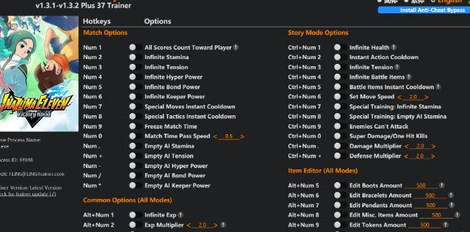 正文摘要:replyreload += ',' + 2415767; 《閃電十一人 英雄們的勝利之路》修改器 快速閱讀精華 🎮 支援版本: 遊戲版本 v1.3+ (經測試支援 v1.3.1-v1.3.2)🔥 核心功能: 比賽無敵: 無限體力、氣勢條、必殺技零冷卻,還能把對手變木樁!光速養成: 無限經驗、經驗倍率、輕鬆強化角色。劇情輾壓: 故事模式無限血量、一擊必殺。道具自由: 球鞋、手環、項鍊等所有道具數量隨你改。 🔑 啟動關鍵: 使用前必須先安裝「反作弊(EAC)繞過」程式,教學都在下面!🔽 檔案下載: 檔案連結放在文章中間,跟著教學步驟就能順利使用! 本文章目錄.article-toc { border: 1px solid #ddd; padding: 15px; background: #f9f9f9; border-radius: 6px; margin: 20px 0; width: 95%;}.toc-title { /* --- 以下是合併進來的 H2 樣式 --- */ font-size: 1.25em; /* 125% */ border-left: 5px solid #2A98DA; border-radius: 2px; padding: 5px 0px 5px 10px; font-weight: bold; margin: 0 0 15px 0; /* 調整了 margin,只留下方 15px */ color: #333; line-height: 1.5; background-color: #f8f8f8; /* --- 樣式合併結束 --- */}.toc-list { list-style: none; padding-left: 0;}.toc-list li { margin: 8px 0;}.toc-list a { color: #2A98DA; text-decoration: none;}.toc-list a:hover { text-decoration: underline;}.back-to-top { display: block; margin-top: 10px; font-size: 0.9em; color: #666;}修改器介紹與重要提醒document.currentScript.previousElementSibling.href = location.href.split('#')[0] + '#intro'; 37項超神功能完整解析document.currentScript.previousElementSibling.href = location.href.split('#')[0] + '#features'; - ⚽ 比賽專用功能document.currentScript.previousElementSibling.href = location.href.split('#')[0] + '#match_options'; - ⭐ 通用輔助功能document.currentScript.previousElementSibling.href = location.href.split('#')[0] + '#common_options'; - 📖 故事模式專用document.currentScript.previousElementSibling.href = location.href.split('#')[0] + '#story_options'; - 🎒 道具編輯器document.currentScript.previousElementSibling.href = location.href.split('#')[0] + '#item_editor'; 必看!反作弊(EAC)繞過安裝教學document.currentScript.previousElementSibling.href = location.href.split('#')[0] + '#eac_bypass'; 修改器檔案下載點 🔽document.currentScript.previousElementSibling.href = location.href.split('#')[0] + '#download'; 常見問題Q&Adocument.currentScript.previousElementSibling.href = location.href.split('#')[0] + '#faq'; 還在為關鍵比賽苦戰?一鍵讓你稱霸足球場! 《閃電十一人 英雄們的勝利之路》的熱血足球對戰是不是讓你欲罷不能?但有時候,是不是覺得對手的必殺技又多又強,自己的體力、氣勢條老是不夠用,養成角色又得花上大把時間? 各位玩家的煩惱我們都懂!這篇攻略將為大家帶來由知名大神「風靈月影」製作的超強修改器,內含多達37項功能,讓你不管是比賽、劇情還是農道具,都能輕鬆寫意,盡情享受施展必殺技的快感! 👉 GM後台版 遊戲 推薦 ⬇️⬇️⬇️ 快速玩各種二次元動漫手遊app ⚠️ 重要提醒: 這款遊戲含有 EasyAntiCheat (EAC) 保護機制,必須先依照本篇教學繞過驗證才能使用修改器。此外,使用任何修改工具都存在風險,強烈建議僅在單機模式下享受,如果在連線模式使用,不僅會破壞他人體驗,更有可能導致帳號被鎖,請大家務必低調並自行承擔風險! 37項超神功能完整解析 這次的修改器功能多到令人眼花撩亂,從比賽中的即時修改,到角色養成、故事模式,甚至是道具數量,可以說是全方位包辦!底下我們將功能分門別類,方便大家快速上手: ⚽ 比賽專用功能 (Match Options) Num 1 – 我方得分全算: 不論誰進球,分數都算在玩家這邊。Num 2 – 無限體力Num 3 – 無限氣勢條 (Tension)Num 4 – 無限超級神力 (Hyper Power)Num 5 – 無限羈絆之力 (Bond Power)Num 6 – 無限守門員力量 (Keeper Power)Num 7 – 必殺技立即冷卻Num 8 – 特殊戰術立即冷卻Num 9 – 凍結比賽時間Num 0 – 調整比賽時間流逝速度Num . – 清空AI體力Num + – 清空AI氣勢條Num – – 清空AI超級神力Num / – 清空AI羈絆之力Num * – 清空AI守門員力量 ⭐ 通用輔助功能 (All Modes) Alt+Num 1 – 無限經驗值Alt+Num 2 – 經驗值倍率調整Alt+Num 3 – 輕鬆強化角色Alt+Num 4 – 調整遊戲速度 📖 故事模式專用 (Story Mode) Ctrl+Num 1 – 無限生命Ctrl+Num 2 – 動作立即冷卻Ctrl+Num 3 – 無限氣勢條Ctrl+Num 4 – 無限戰鬥道具Ctrl+Num 5 – 戰鬥道具立即冷卻Ctrl+Num 6 – 調整移動速度Ctrl+Num 7 – 特殊訓練:無限體力Ctrl+Num 8 – 特殊訓練:清空AI體力Ctrl+Num 9 – 敵人無法攻擊Ctrl+Num 0 – 超級傷害/一擊必殺Ctrl+Num . – 傷害倍率調整Ctrl+Num + – 防禦倍率調整 🎒 道具編輯器 (Item Editor) Alt+Num 5 – 編輯球鞋數量Alt+Num 6 – 編輯手環數量Alt+Num 7 – 編輯項鍊數量Alt+Num 8 – 編輯雜項物品數量Alt+Num 9 – 編輯代幣數量Alt+Num 0 – 編輯消耗品數量 必看!反作弊(EAC)繞過安裝教學 (三步驟搞定) 就像前面提到的,這款遊戲有 EasyAntiCheat (EAC) 這個「保全系統」在守著。為了讓修改器能順利運作,我們必須先透過一個簡單的步驟讓這位保全暫時下班。 操作非常簡單,只要跟著下面三個步驟,保證一次成功! 第一步: 打開你下載好的修改器,在主介面上找到一個寫著「Install Anti-Cheat Bypass」的按鈕,直接點下去。第二步: 點擊後,系統會要求你選擇一個檔案。這時候,請前往你安裝遊戲的資料夾(遊戲根目錄),找到並選擇「EACLauncher.exe」這個檔案,然後按下儲存或開啟。第三步: 恭喜你,大功告成!現在只要重新啟動遊戲,就可以隨心所欲地使用修改器的所有功能了。 《閃電十一人 