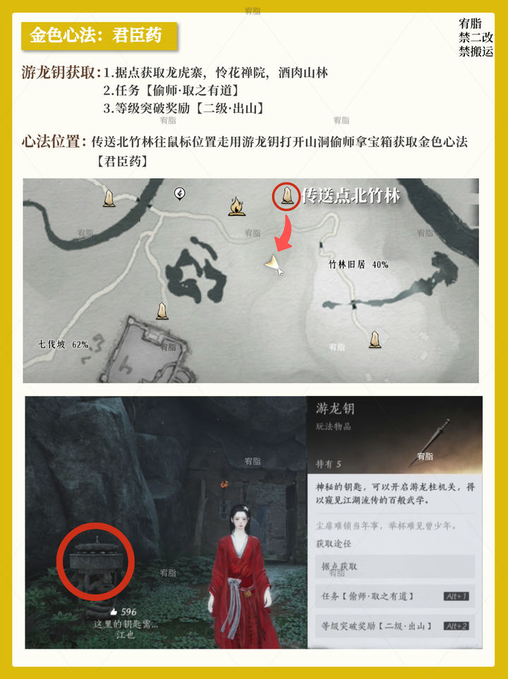 正文摘要:《燕雲十六聲》金色心法位置尋找全攻略 快速閱讀精華 🔑 核心目標: 快速獲取遊戲中三種頂級金色心法——君臣藥、劍氣縱橫、易水歌。💰 易水歌入手重點: 傳送至不羨仙門口找 唐寶,使用一定數量的 長鳴玉 買下即可。🗡️ 劍氣縱橫前置: 進入鬼市前,務必先與賣面具的對話,換上面具 才能順利進行後續交易。🧭 隱藏福利: 買完 易水歌 後,會順便觸發天泉門派的入門邀請,一舉兩得! 本文章目錄.article-toc { border: 1px solid #ddd; padding: 15px; background: #f9f9f9; border-radius: 6px; margin: 20px 0; width: 95%;}.toc-title { /* --- 以下是合併進來的 H2 樣式 --- */ font-size: 1.25em; /* 125% */ border-left: 5px solid #2A98DA; border-radius: 2px; padding: 5px 0px 5px 10px; font-weight: bold; margin: 0 0 15px 0; /* 調整了 margin,只留下方 15px */ color: #333; line-height: 1.5; background-color: #f8f8f8; /* --- 樣式合併結束 --- */}.toc-list { list-style: none; padding-left: 0;}.toc-list li { margin: 8px 0;}.toc-list a { color: #2A98DA; text-decoration: none;}.toc-list a:hover { text-decoration: underline;}.back-to-top { display: block; margin-top: 10px; font-size: 0.9em; color: #666;}輕鬆入手金色心法:戰力升級必看指南document.currentScript.previousElementSibling.href = location.href.split('#')[0] + '#introduction'; 金色心法一:君臣藥(北竹林尋寶)document.currentScript.previousElementSibling.href = location.href.split('#')[0] + '#junchenyao'; 金色心法二:劍氣縱橫(鬼市買書)document.currentScript.previousElementSibling.href = location.href.split('#')[0] + '#jianqizongheng'; 金色心法三:易水歌(長鳴玉兌換與門派邀請)document.currentScript.previousElementSibling.href = location.href.split('#')[0] + '#yishui_ge'; 《燕雲十六聲》金色心法常見問題Q&Adocument.currentScript.previousElementSibling.href = location.href.split('#')[0] + '#faq'; 輕鬆入手金色心法:戰力升級必看指南 金色心法是《燕雲十六聲》中提升戰力不可或缺的頂級資源。本篇攻略為大家整理了三個目前已知必定能取得的金色心法詳細位置與獲取步驟。只要照著步驟走,就能輕鬆將這三大心法收入囊中,讓你的角色能力更上一層樓! 金色心法一:君臣藥(北竹林尋寶) 心法名稱: 君臣藥 獲取地點: 北竹林 步驟: 首先,傳送至北竹林。按照地圖上的指定位置移動,那裡會顯示一個需要互動的區域。抵達後,你需要使用道具 遊龍鑰 來開啟眼前的山洞。進入山洞,完成「偷師」的動作。成功偷師後,打開寶箱即可獲得金色心法 君臣藥。 請參考下圖中的地圖標記,精準找到山洞位置: [img]https://www.taptap.cn/hashtag/%E7%87%95%E4%BA%91%E5%8D%81%E5%85%AD%E5%A3%B0%E5%85%AC%E6%B5%8B) 金色心法三:易水歌(長鳴玉兌換與門派邀請) 這個心法的取得方式最為直接,但需要你準備足夠的遊戲貨幣。 心法名稱: 易水歌 獲取地點: 不羨仙門口 步驟: 傳送至不羨仙門口。找到 NPC 唐寶 並與他進行對話。唐寶會販售 易水歌 這本心法。你需要支付一定數量的長鳴玉將其買下。只要將該心法買完,你就會立刻獲得金色心法 易水歌。 特別注意: 成功買下易水歌之後,你同時也會順利觸發天泉門派的入門邀請!這對想要加入天泉門派的玩家來說,是一箭雙鵰的絕佳機會。 《燕雲十六聲》金色心法 重點回顧 君臣藥:需要 遊龍鑰 開啟北竹林山洞,通過偷師取得。劍氣縱橫:進入鬼市前先 換面具,再找倪老山買書。易水歌:準備好 長鳴玉,在不羨仙門口找唐寶直接買。 以下廣告滑動後還有帖子內容var custom_call_MIR = function (params) {if ( params === null || params.hasAd === false ) {var divRowSide;for (let index = 0; index < ONEADs.length; index++) {if (ONEADs[index].pub.player_mode === "mobile-inread") {divRowSide = ONEADs[index].pub.slotobj;}}var ins = document.createElement('ins');ins.className = 'clickforceads';ins.setAttribute('style', 'display:inline-block;');ins.setAttribute('data-ad-zone', '18264');divRowSide.appendChild(ins);var js = document.createElement('script');js.async = true;js.type = 'text/javascript';js.setAttribute('src', '//cdn.holmesmind.com/js/init.js');js.onload = function(){console.log('[ONEAD MIR] ClickForce Loaded');};divRowSide.appendChild(js);}};var _ONEAD = {};_ONEAD.pub = {};_ONEAD.pub.slotobj = document.getElementById("oneadMIRDFPTag");_ONEAD.pub.slots = ["div-onead-ad"];_ONEAD.pub.uid = "1000509";_ONEAD.pub.external_url = "https://onead.onevision.com.tw/";_ONEAD.pub.scopes = ["spotbuy", "speed"];_ONEAD.pub.player_mode_div = "div-onead-ad";_ONEAD.pub.player_mode = "mobile-inread";_ONEAD.pub.queryAdCallback = custom_call_MIR;var ONEAD_pubs = ONEAD_pubs || [];ONEAD_pubs.push(_ONEAD);var truvidScript = document.createElement('script'); truvidScript.async = true; truvidScript.setAttribute('data-cfasync','false'); truvidScript.type = 'text/javascript'; truvidScript.src = '//stg.truvidplayer.com/index.php?sub_user_id=597&widget_id=3309&playlist_id=2381&m=a&cb=' + (Math.random() * 10000000000000000); var currentScript = document.currentScript || document.scripts[document.scripts.length - 1]; currentScript.parentNode.insertBefore(truvidScript, currentScript.nextSibling); 《燕雲十六聲》金色心法常見問題Q&A Q:易水歌心法需要的長鳴玉具體數量是多少? A:易水歌所需的長鳴玉數量較高,建議玩家在前往不羨仙門口找唐寶之前,先準備好足夠的費用,以確保能夠一次買完並成功獲得心法。 Q:拿到這些金色心法,會自動觸發天泉門派的邀請嗎? A:是的,根據我們整理的情報,當玩家成功買下並獲得 易水歌 心法後,系統會自動發送天泉門派的入門邀請信。其他心法目前沒有證據顯示會直接觸發邀請。 Q:在鬼市找倪老山時,他