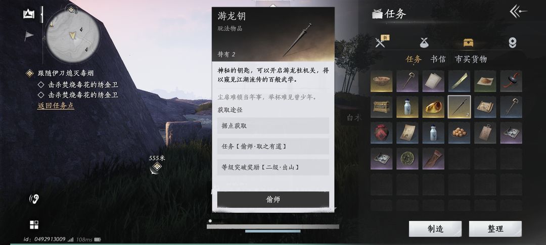 正文摘要:《燕雲十六聲》開局武林高手 快速閱讀精華 🔑 核心目標: 在遊戲初期就透過「偷師」與任務,快速取得兩大外功、兩大奇術與強勢心法,成為江湖高手。⚔️ 關鍵道具「遊龍鑰」: 這是偷師必備的道具,初期至少需要兩把。 獲取途徑: 升到世界等級2級時會贈送一把,完成「偷師有道」任務可再取得一把。 💪 核心武學清單: 外功 (進攻): 積炬九劍、九曲斷魂槍。奇術 (輔助): 紅塵障目(單體暗殺)、韋陀正法(羣體控場/無敵幀)。心法 (強化): 劍氣縱橫(強烈建議搭配積炬九劍使用)。 ⚠️ 任務提醒: 韋陀正法任務氛圍詭異,建議在遊戲內正午時段(白天)進行,並可考慮關閉遊戲聲音。 本文章目錄.article-toc { border: 1px solid #ddd; padding: 15px; background: #f9f9f9; border-radius: 6px; margin: 20px 0; width: 95%;}.toc-title { /* --- 以下是合併進來的 H2 樣式 --- */ font-size: 1.25em; /* 125% */ border-left: 5px solid #2A98DA; border-radius: 2px; padding: 5px 0px 5px 10px; font-weight: bold; margin: 0 0 15px 0; /* 調整了 margin,只留下方 15px */ color: #333; line-height: 1.5; background-color: #f8f8f8; /* --- 樣式合併結束 --- */}.toc-list { list-style: none; padding-left: 0;}.toc-list li { margin: 8px 0;}.toc-list a { color: #2A98DA; text-decoration: none;}.toc-list a:hover { text-decoration: underline;}.back-to-top { display: block; margin-top: 10px; font-size: 0.9em; color: #666;}事前準備:獲取遊龍鑰與基礎奇術document.currentScript.previousElementSibling.href = location.href.split('#')[0] + '#summary'; - 🔑 遊龍鑰的取得方式document.currentScript.previousElementSibling.href = location.href.split('#')[0] + '#prep_key'; - 「偷師有道」任務流程document.currentScript.previousElementSibling.href = location.href.split('#')[0] + '#prep_dao'; 外功偷師教學:九劍與斷魂槍document.currentScript.previousElementSibling.href = location.href.split('#')[0] + '#outer_skill'; - 積炬九劍偷師步驟document.currentScript.previousElementSibling.href = location.href.split('#')[0] + '#nine_sword'; - 九曲斷魂槍偷師步驟document.currentScript.previousElementSibling.href = location.href.split('#')[0] + '#broken_spear'; 奇術獲取教學:暗殺與無敵幀document.currentScript.previousElementSibling.href = location.href.split('#')[0] + '#special_skill'; - 紅塵障目:機關謎題解法document.currentScript.previousElementSibling.href = location.href.split('#')[0] + '#red_dust'; - 韋陀正法:詭異任務與注意事項document.currentScript.previousElementSibling.href = location.href.split('#')[0] + '#weituo'; 心法獲取教學:劍氣縱橫document.currentScript.previousElementSibling.href = location.href.split('#')[0] + '#inner_skill'; - 鬼市任務與不知名舊書document.currentScript.previousElementSibling.href = location.href.split('#')[0] + '#inner_step'; 《燕雲十六聲》開局武林高手 常見問題Q&Adocument.currentScript.previousElementSibling.href = location.href.split('#')[0] + '#faq'; 前言:開局成為武林高手必備思路 想要在《燕雲十六聲》的江湖中迅速站穩腳跟,成為一名身懷絕世武學的高手,除了加入門派外,「偷師」就是最快的方式。偷師可以讓我們在不加入特定門派的情況下,習得強力的外功、奇術與心法。 本篇攻略將帶領大家,從最基礎的遊龍鑰獲取,到兩種強力外功,再到輔助戰鬥的奇術與心法,手把手完成「開局即武林高手」的偉業! 事前準備:獲取遊龍鑰與基礎奇術 「遊龍鑰」是偷師的關鍵道具,有了它才能啟動門派周邊的遊龍柱,進入偷學區域。初期我們至少需要準備兩把遊龍鑰來完成外功的偷學。 🔑 遊龍鑰的取得方式 玩家的世界等級提升到等級2時,系統會直接贈送一把。完成「偷師有道」任務,可以額外獲得一把遊龍鑰及奇術「杳無痕」。 《燕雲十六聲》開局武林高手 重點回顧 🔑 偷師順序: 確認有 2 把遊龍鑰 → 偷師積炬九劍 → 偷師九曲斷魂槍。💡 輔助搭配: 習得紅塵障目(暗殺專用)與韋陀正法(保命羣攻)。⚔️ 心法強化: 完成鬼市任務後,取得並裝備心法劍氣縱橫,搭配積炬九劍。 以下廣告滑動後還有帖子內容var custom_call_MIR = function (params) {if ( params === null || params.hasAd === false ) {var divRowSide;for (let index = 0; index < ONEADs.length; index++) {if (ONEADs[index].pub.player_mode === "mobile-inread") {divRowSide = ONEADs[index].pub.slotobj;}}var ins = document.createElement('ins');ins.className = 'clickforceads';ins.setAttribute('style', 'display:inline-block;');ins.setAttribute('data-ad-zone', '18264');divRowSide.appendChild(ins);var js = document.createElement('script');js.async = true;js.type = 'text/javascript';js.setAttribute('src', '//cdn.holmesmind.com/js/init.js');js.onload = function(){console.log('[ONEAD MIR] ClickForce Loaded');};divRowSide.appendChild(js);}};var _ONEAD = {};_ONEAD.pub = {};_ONEAD.pub.slotobj = document.getElementById("oneadMIRDFPTag");_ONEAD.pub.slots = ["div-onead-ad"];_ONEAD.pub.uid = "1000509";_ONEAD.pub.external_url = "https://onead.onevision.com.tw/";_ONEAD.pub.scopes = ["spotbuy", "speed"];_ONEAD.pub.player_mode_div = "div-onead-ad";_ONEAD.pub.player_mode = "mobile-inread";_ONEAD.pub.queryAdCallback = custom_call_MIR;var ONEAD_pubs = ONEAD_pubs || [];ONEAD_pubs.push(_ONEAD);var truvidScript = document.createElement('script'); truvidScript.async = true; truvidScript.setAttribute('data-cfasync','false'); truvidScript.type = 'text/javascript'; truvidScript.src = '//stg.truvidplayer.com/index.php?sub_user_id=597&widget_id=3309&playlist_id=2381&m=a&cb=' + (Math.random() * 10000000000000000); var currentScript = document.currentScript || document.scripts[document.scripts.length - 1]; currentScript.parentNode.insertBefore(truvidScript, currentScript.nextSibling); 《