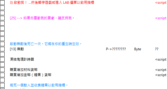 正文摘要:replyreload += ',' + 2416675; 《泡泡龍:糖果地牢》修改器 快速閱讀精華 🛠️ 支援版本: 適用於 Steam v1.0 P2P 版本,專為 PC 玩家設計。🍬 核心功能: 無敵模式: 開啟後即使被敵人碰到也不會死,輕鬆探索迷宮深處。無限資源: 金幣(糖果)和材料越買越多,升級技能不再愁。時間凍結: 凍結鬼魂計時器,不再被時間壓力追著跑。 🇹🇼 繁體中文化: 腳本已全面翻譯為繁體中文,操作直覺,不用再猜英文意思。 .article-toc { border: 1px solid #ddd; padding: 15px; background: #f9f9f9; border-radius: 6px; margin: 20px 0; width: 90%;}.article-toc br { display: none;}.toc-title { /* --- 以下是合併進來的 H2 樣式 --- */ font-size: 1.25em; /* 125% */ border-left: 5px solid #2A98DA; border-radius: 2px; padding: 5px 0px 5px 10px; font-weight: bold; margin: 0 0 15px 0; /* 調整了 margin,只留下方 15px */ color: #333; line-height: 1.5; background-color: #f8f8f8; /* --- 樣式合併結束 --- */}.toc-list { list-style: none; padding-left: 0;}.toc-list li { margin: 8px 0;}.toc-list a { color: #2A98DA; text-decoration: none;}.toc-list a:hover { text-decoration: underline;}.back-to-top { display: block; margin-top: 10px; font-size: 0.9em; color: #666;}本文章目錄前言:在變幻莫測的迷宮中輕鬆冒險document.currentScript.previousElementSibling.href = location.href.split('#')[0] + '#intro'; 重要風險提示document.currentScript.previousElementSibling.href = location.href.split('#')[0] + '#risk_warning'; 關於《泡泡龍:糖果地牢》document.currentScript.previousElementSibling.href = location.href.split('#')[0] + '#game_intro'; 腳本功能詳細介紹document.currentScript.previousElementSibling.href = location.href.split('#')[0] + '#features'; 安裝與使用教學document.currentScript.previousElementSibling.href = location.href.split('#')[0] + '#install_guide'; 檔案下載點 🔽document.currentScript.previousElementSibling.href = location.href.split('#')[0] + '#download_section'; 常見問題Q&Adocument.currentScript.previousElementSibling.href = location.href.split('#')[0] + '#faq'; 前言:在變幻莫測的迷宮中輕鬆冒險 《泡泡龍:糖果地牢》這次帶來了全新的成長型玩法,每次進入迷宮地圖都會改變,充滿了挑戰性與驚喜。但如果你因為手殘一直死在半路,或是收集寶物和材料的過程太過漫長,可能會讓冒險的熱情冷卻。 別擔心!這篇攻略分享的 CE 修改腳本(Cheat Engine Table)就是你的冒險好夥伴。我們將腳本進行了繁體中文化,讓你能夠輕鬆開啟無敵、修改金幣和材料,專注於享受探索和覺醒新技能的樂趣,不再被失敗的挫折感打敗! 安裝與使用教學 要使用此腳本,你需要先安裝 Cheat Engine 修改器。請按照以下步驟操作: 準備工具: 如果你電腦裡還沒有 Cheat Engine,請先下載並安裝: Cheat Engine (CE修改器) 7.5 漢化版 中文版 https://www.game735.com/thread-377613-1-1.html《Cheat Engine》V7.6 中文化版超強記憶體解鎖工具 https://www.game735.com/thread-416920-1-1.html 啟動遊戲: 開啟 Steam 並執行《泡泡龍:糖果地牢》,進入遊戲並開始關卡。載入腳本: 雙擊下載好的 `.CT` 檔案,Cheat Engine 會自動開啟並載入腳本。掛載進程: 點擊 CE 左上角的「電腦圖示」,在列表中找到遊戲進程(通常是 BB5Project.exe),選擇後點擊「Open」。啟用步驟: 第一步: 勾選「1) 激活我!附加遊戲進程。」第二步: 進入遊戲殺死一個敵人並收集掉落的糖果,這會幫助腳本定位數據。第三步: 勾選「3) 啟動我!...」選項,然後暫停遊戲或進入 LAB 選單,這時下方的指標就會生效,你可以開始修改了。 檔案下載點 🔽 這是經過繁體中文化處理的 CT 腳本,方便台灣玩家操作使用。 所有站內附件皆會附上安全掃描報告請會員查看純淨度百分比後判斷使用(adsbygoogle = window.adsbygoogle || []).push({});相關檔案須知:取得檔案前,請先詳細閱讀文章內容避免不必要錯誤與誤會發生。也可多參考文章討論樓層內容了解附件檔案相關討論資訊。 【此文章部分內容隱藏中】 解除隱藏說明教學點擊下方 繼續閱讀文章 後請仔細觀看文章內容 並依照指示進行下一步最後完成解除隱藏後系統會回到此文章自動顯示隱藏內容~繼續閱讀 《泡泡龍:糖果地牢》常見問題Q&A Q:為什麼我勾選了「啟用金幣指標」卻沒反應? A:請確保你有按照步驟操作:先啟動腳本,然後在遊戲中實際「殺怪並撿到糖果」。這個動作是為了讓腳本抓取到正確的記憶體位置。完成後再嘗試勾選指標選項。 Q:無敵模式開啟後我還是死掉了? A:這是正常的。如前所述,腳本的無敵機制需要透過一次「死亡重生」來觸發。請在勾選無敵後,故意去送死一次,重生後你就會發現自己變成無敵狀態了。 Q:這個腳本支援 Steam 最新版嗎? A:本腳本基於 Steam v1.0 版本製作。如果遊戲有小更新,通常還能使用;但若有大型版本更新,可能會導致記憶體特徵碼失效,屆時需要等待新版腳本。 Q:購買增加資源的功能怎麼用? A:勾選該選項後,去商店買隨便一樣東西。你會發現原本應該扣除的金幣或材料,反而變多了。這是一個快速刷資源的好方法。 replyreload += ',' + 2416675; |