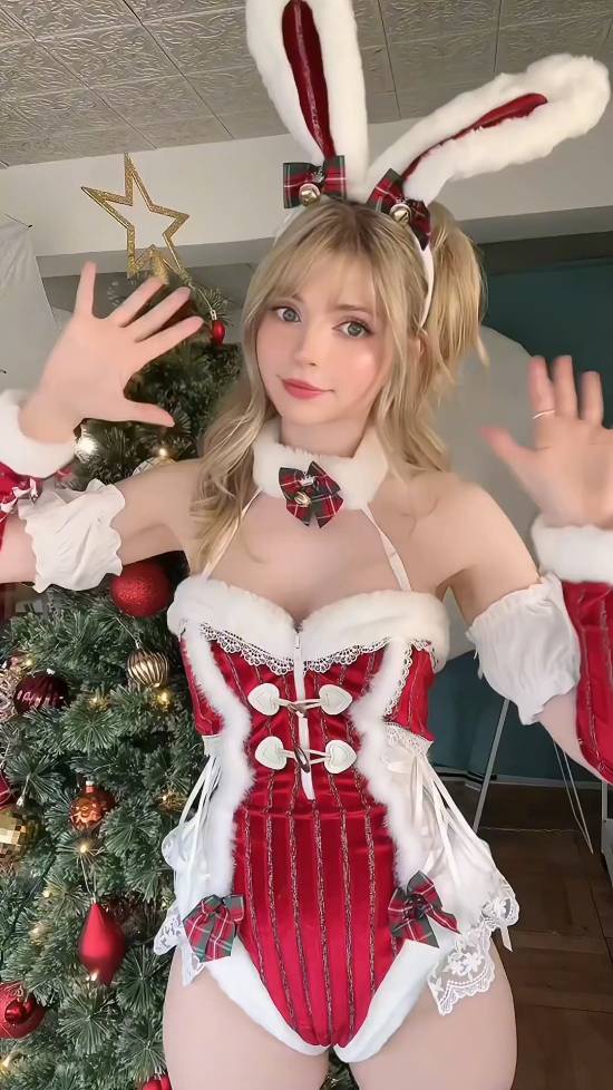 近距離面部捕捉 即使是近距離拍攝,PeachMilky 的妝容與表情也完全貼合艾希莉甜美又略帶俏皮的風格。 另一角度全身照 最後一張,提供另一個全身的優雅姿態,完美為這次的聖誕造型畫下句點。