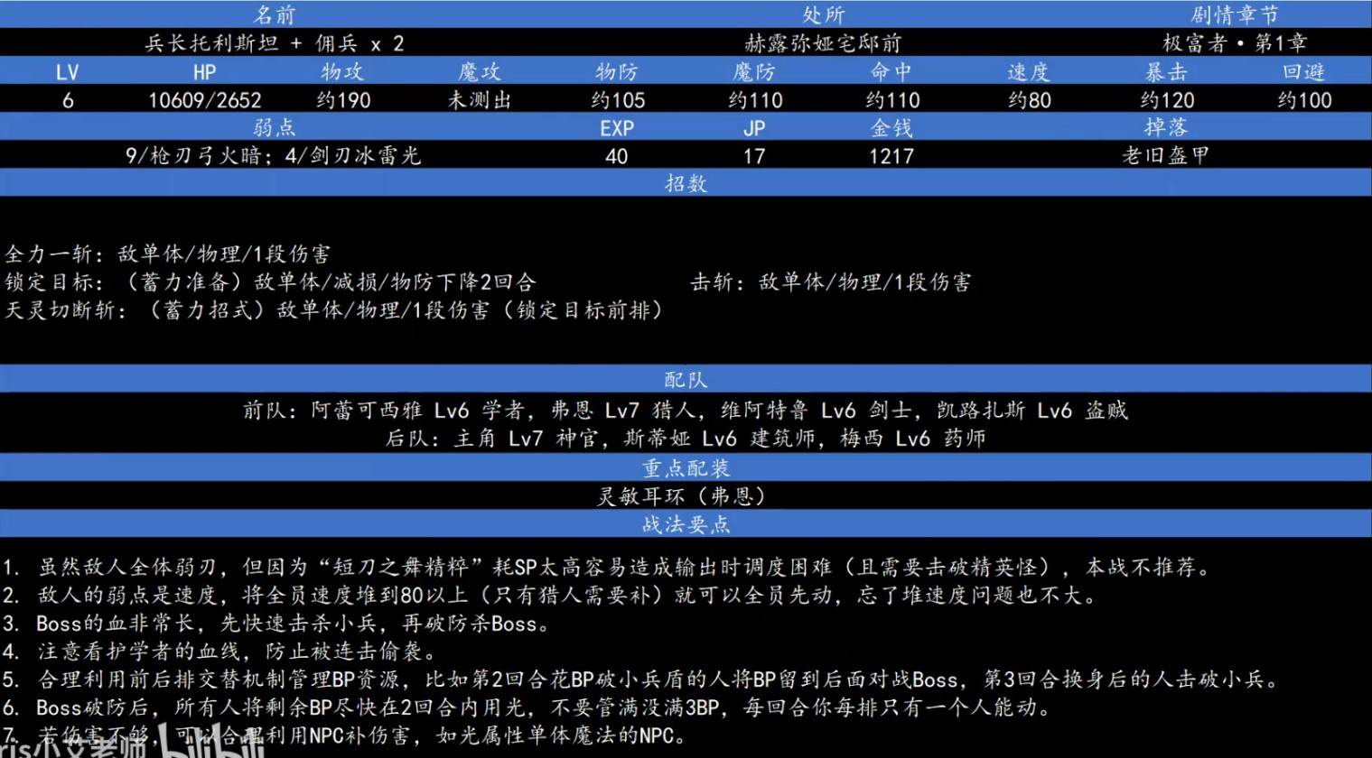 《歧路旅人0》兵長託利斯坦超詳盡攻略:新手打法、裝備推薦一次看!