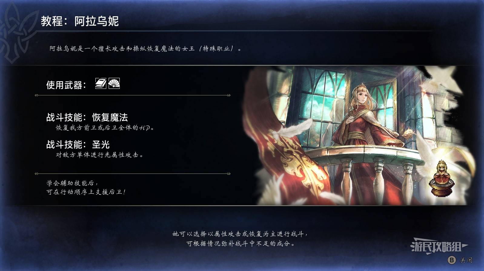 正文摘要:《歧路旅人0》女王阿拉烏妮技能與必殺技 快速閱讀精華 💪 角色定位:《歧路旅人0》獨特的特殊職業「女王」——阿拉烏妮。🔑 必殺技解鎖: 需將訓練所等級提升至2級方可使用「女王的審判」。🌟 核心能力: 控場輔助:透過技能削弱敵方攻防。範圍爆發:必殺技對敵全體造成高額魔法傷害並降低抗性。單點突破:搭配單體傷害技能對特定目標造成威脅。 🚀 戰術建議: 定位為輔助控場或副輸出,搭配坦補與高爆發隊友發揮最大效益。 本文章目錄.article-toc { border: 1px solid #ddd; padding: 15px; background: #f9f9f9; border-radius: 6px; margin: 20px 0; width: 95%;}.toc-title { /* --- 以下是合併進來的 H2 樣式 --- */ font-size: 1.25em; /* 125% */ border-left: 5px solid #2A98DA; border-radius: 2px; padding: 5px 0px 5px 10px; font-weight: bold; margin: 0 0 15px 0; /* 調整了 margin,只留下方 15px */ color: #333; line-height: 1.5; background-color: #f8f8f8; /* --- 樣式合併結束 --- */}.toc-list { list-style: none; padding-left: 0;}.toc-list li { margin: 8px 0;}.toc-list a { color: #2A98DA; text-decoration: none;}.toc-list a:hover { text-decoration: underline;}.back-to-top { display: block; margin-top: 10px; font-size: 0.9em; color: #666;} 女王阿拉烏妮:特殊職業「女王」深度整理document.currentScript.previousElementSibling.href = location.href.split('#')[0] + '#intro'; 女王阿拉烏妮所有技能整理:駕馭戰場的關鍵document.currentScript.previousElementSibling.href = location.href.split('#')[0] + '#skills'; 必殺技效果總覽與解鎖條件:女王的最終裁決document.currentScript.previousElementSibling.href = location.href.split('#')[0] + '#ult'; 戰鬥策略與隊伍搭配建議:發揮女王的最大潛力document.currentScript.previousElementSibling.href = location.href.split('#')[0] + '#strategy'; 女王阿拉烏妮技能常見問題Q&Adocument.currentScript.previousElementSibling.href = location.href.split('#')[0] + '#faq'; 《歧路旅人0》女王阿拉烏妮:特殊職業「女王」深度整理 戰鬥策略與隊伍搭配建議:發揮女王的最大潛力 要讓女王阿拉烏妮在戰場上發光發熱,合理的隊伍配置與戰術運用至關重要。本攻略建議您從以下幾點著手,將女王的力量發揮到極致: 💪 定位建議: 阿拉烏妮最適合擔任隊伍中的輔助型控場或副輸出角色。她的技能偏向削弱敵人、提升我方能力,而非純粹的傷害輸出。透過控場與輔助,為主力輸出創造絕佳的攻擊機會。🛡️ 搭配堅實坦補: 由於阿拉烏妮並非前排肉盾,建議隊伍中至少搭配一名能承受大量傷害的守護者(Tank)與一名可靠的治療者(Healer)。這能確保隊伍的生存能力,讓阿拉烏妮能更安心地施展她的控場與輔助技能。⚔️ 爆發輸出夥伴: 必殺技「女王的審判」能大幅降低敵方抗性,這是打出超高傷害的絕佳時機。因此,我們建議搭配一名高爆發輸出的角色(如元素法師或強力物理攻擊者),在「女王的審判」後迅速銜接攻擊,將傷害最大化。🔄 技能循環運用: 戰鬥初期:優先使用「統御號令」削弱敵方全體的攻防。中場推進:利用「女王之觸」對特定高威脅敵人進行單點突破和麻痺控制。爆發時機:當能量積攢足夠且敵方血量進入斬殺線時,果斷施放必殺技「女王的審判」,隨後配合其他隊友的爆發技能,徹底瓦解敵人。 《歧路旅人0》女王阿拉烏妮重點回顧 阿拉烏妮是《歧路旅人0》中獨特的「女王」職業角色,擁有強大的控場、輔助與範圍傷害能力。她的核心必殺技「女王的審判」需訓練所2級解鎖,是關鍵的羣體爆發與降低敵方抗性的技能,能為隊伍創造巨大的輸出空間。建議將阿拉烏妮定位為輔助控場或副輸出,並搭配堅固的坦克、可靠的治療以及高爆發輸出的隊友,以發揮其最大潛力。 以下廣告滑動後還有帖子內容var custom_call_MIR = function (params) {if ( params === null || params.hasAd === false ) {var divRowSide;for (let index = 0; index < ONEADs.length; index++) {if (ONEADs[index].pub.player_mode === "mobile-inread") {divRowSide = ONEADs[index].pub.slotobj;}}var ins = document.createElement('ins');ins.className = 'clickforceads';ins.setAttribute('style', 'display:inline-block;');ins.setAttribute('data-ad-zone', '18264');divRowSide.appendChild(ins);var js = document.createElement('script');js.async = true;js.type = 'text/javascript';js.setAttribute('src', '//cdn.holmesmind.com/js/init.js');js.onload = function(){console.log('[ONEAD MIR] ClickForce Loaded');};divRowSide.appendChild(js);}};var _ONEAD = {};_ONEAD.pub = {};_ONEAD.pub.slotobj = document.getElementById("oneadMIRDFPTag");_ONEAD.pub.slots = ["div-onead-ad"];_ONEAD.pub.uid = "1000509";_ONEAD.pub.external_url = "https://onead.onevision.com.tw/";_ONEAD.pub.scopes = ["spotbuy", "speed"];_ONEAD.pub.player_mode_div = "div-onead-ad";_ONEAD.pub.player_mode = "mobile-inread";_ONEAD.pub.queryAdCallback = custom_call_MIR;var ONEAD_pubs = ONEAD_pubs || [];ONEAD_pubs.push(_ONEAD);var truvidScript = document.createElement('script'); truvidScript.async = true; truvidScript.setAttribute('data-cfasync','false'); truvidScript.type = 'text/javascript'; truvidScript.src = '//stg.truvidplayer.com/index.php?sub_user_id=597&widget_id=3309&playlist_id=2381&m=a&cb=' + (Math.random() * 10000000000000000); var currentScript = document.currentScript || document.scripts[document.scripts.length - 1]; currentScript.parentNode.insertBefore(truvidScript, currentScript.nextSibling); 女王阿拉烏妮技能常見問題Q&A Q:阿拉烏妮的職業有什麼特別之處? A:阿拉烏妮是獨特的「女王」職業,主要專精於控場、輔助與羣體傷害。她的技能組能有效削弱敵人、提升我方能力,並在關鍵時刻提供全體高爆發,是戰場