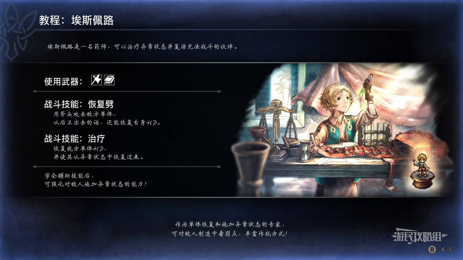 正文摘要:《歧路旅人0》埃斯佩路技能 快速閱讀精華 👩⚕️ 角色定位: 埃斯佩路是《歧路旅人0》中不可或缺的藥師,專精於治療與輔助,是隊伍續航力的關鍵。⚔️ 核心技能: 治療類:提供生命回復、解除負面狀態等。 輔助類:強化隊友能力、削弱敵方抗性,提升戰鬥效率。💥 必殺技解鎖: 玩家需將「訓練所」等級提升至2級後,即可解鎖埃斯佩路的強力必殺技。💡 使用建議: 埃斯佩路在戰鬥中肩負重任,建議優先提升其治療效果與生存能力,確保隊伍在長期戰鬥中保有優勢。 本文章目錄.article-toc { border: 1px solid #ddd; padding: 15px; background: #f9f9f9; border-radius: 6px; margin: 20px 0; width: 95%;}.toc-title { /* --- 以下是合併進來的 H2 樣式 --- */ font-size: 1.25em; /* 125% */ border-left: 5px solid #2A98DA; border-radius: 2px; padding: 5px 0px 5px 10px; font-weight: bold; margin: 0 0 15px 0; /* 調整了 margin,只留下方 15px */ color: #333; line-height: 1.5; background-color: #f8f8f8; /* --- 樣式合併結束 --- */}.toc-list { list-style: none; padding-left: 0;}.toc-list li { margin: 8px 0;}.toc-list a { color: #2A98DA; text-decoration: none;}.toc-list a:hover { text-decoration: underline;}.back-to-top { display: block; margin-top: 10px; font-size: 0.9em; color: #666;} 《歧路旅人0》藥師埃斯佩路:技能與必殺技全面整理document.currentScript.previousElementSibling.href = location.href.split('#')[0] + '#intro'; - 埃斯佩路核心技能:戰場上的治療與支援document.currentScript.previousElementSibling.href = location.href.split('#')[0] + '#basic_skills'; - 埃斯佩路必殺技:解鎖條件與效果分析document.currentScript.previousElementSibling.href = location.href.split('#')[0] + '#ultimate_skill'; 《歧路旅人0》埃斯佩路技能重點回顧document.currentScript.previousElementSibling.href = location.href.split('#')[0] + '#conclusion'; 《歧路旅人0》埃斯佩路技能_常見問題Q&Adocument.currentScript.previousElementSibling.href = location.href.split('#')[0] + '#faq'; 《歧路旅人0》藥師埃斯佩路:技能與必殺技全面整理 在《歧路旅人0》的廣袤世界中,擁有一位稱職的藥師是旅途成功的關鍵。而埃斯佩路,正是我們團隊在實測後發現,一位在戰鬥中能為隊伍帶來極大助益的藥師角色。許多冒險者可能對埃斯佩路的具體技能與必殺技效果還不太熟悉,別擔心,本篇攻略將為您深入整理埃斯佩路的每一個重要招式,助您在戰場上發揮她的最大潛力。從基礎的治療到強大的必殺技,我們將帶您一覽無遺,讓您徹底掌握這位藥師的精髓! 《歧路旅人0》埃斯佩路技能重點回顧 全面支援: 埃斯佩路是《歧路旅人0》中一位多功能的藥師,集治療、狀態解除與輔助增益於一身,確保隊伍在各種戰鬥中都能保持最佳狀態。 必殺技關鍵: 她的必殺技在訓練所等級2時解鎖,是扭轉戰局、應對高難度挑戰的終極手段。善用必殺技的時機,能讓戰鬥事半功倍。 策略搭配: 將埃斯佩路與高輸出或控場角色搭配,能最大化隊伍的綜合戰力,讓她成為您冒險旅途中不可或缺的夥伴。 以下廣告滑動後還有帖子內容var custom_call_MIR = function (params) {if ( params === null || params.hasAd === false ) {var divRowSide;for (let index = 0; index < ONEADs.length; index++) {if (ONEADs[index].pub.player_mode === "mobile-inread") {divRowSide = ONEADs[index].pub.slotobj;}}var ins = document.createElement('ins');ins.className = 'clickforceads';ins.setAttribute('style', 'display:inline-block;');ins.setAttribute('data-ad-zone', '18264');divRowSide.appendChild(ins);var js = document.createElement('script');js.async = true;js.type = 'text/javascript';js.setAttribute('src', '//cdn.holmesmind.com/js/init.js');js.onload = function(){console.log('[ONEAD MIR] ClickForce Loaded');};divRowSide.appendChild(js);}};var _ONEAD = {};_ONEAD.pub = {};_ONEAD.pub.slotobj = document.getElementById("oneadMIRDFPTag");_ONEAD.pub.slots = ["div-onead-ad"];_ONEAD.pub.uid = "1000509";_ONEAD.pub.external_url = "https://onead.onevision.com.tw/";_ONEAD.pub.scopes = ["spotbuy", "speed"];_ONEAD.pub.player_mode_div = "div-onead-ad";_ONEAD.pub.player_mode = "mobile-inread";_ONEAD.pub.queryAdCallback = custom_call_MIR;var ONEAD_pubs = ONEAD_pubs || [];ONEAD_pubs.push(_ONEAD);var truvidScript = document.createElement('script'); truvidScript.async = true; truvidScript.setAttribute('data-cfasync','false'); truvidScript.type = 'text/javascript'; truvidScript.src = '//stg.truvidplayer.com/index.php?sub_user_id=597&widget_id=3309&playlist_id=2381&m=a&cb=' + (Math.random() * 10000000000000000); var currentScript = document.currentScript || document.scripts[document.scripts.length - 1]; currentScript.parentNode.insertBefore(truvidScript, currentScript.nextSibling); 《歧路旅人0》埃斯佩路技能_常見問題Q&A Q:埃斯佩路在隊伍中的最佳定位是什麼? A:埃斯佩路最適合擔任隊伍中的專職治療與輔助角色。她的技能組合能有效恢復隊友生命、解除異常狀態,並提供增益效果,確保隊伍的續航力與戰鬥效率。 Q:埃斯佩路的必殺技如何解鎖? A:埃斯佩路的必殺技需要在「訓練所」達到等級2後才能解鎖。一旦解鎖,您便可以在戰鬥中累積能量後發動。 Q:埃斯佩路的治療效果是否足夠應對後期挑戰? A:是的,只要適當提升埃斯佩路的相關屬性(如魔法攻擊力,若治療量與之掛鉤),並搭配合適的裝備,她的治療能力足以應對後期的各種高難度挑戰。策略性地使用她的技能至關重要。 Q:埃斯佩路有哪些推薦的裝備選擇? A:推薦為埃斯佩路選擇能提升「魔法攻擊力」(若治療量與魔攻相關)、生命值、魔法防禦以及速度的裝備。這些屬性有助於增強她的治療效果、生存能力以及行動頻
