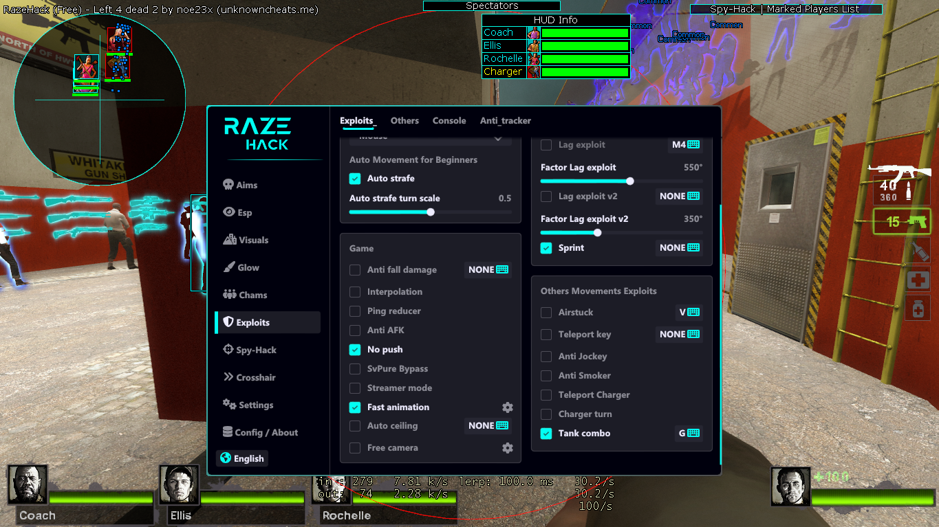 正文摘要:replyreload += ',' + 2419153; 《L4D2 求生之路2》RazeHack v3 功能快速閱讀精華 🚀 核心功能: 提供自瞄、ESP透視(玩家/物品)、兔子跳、加速、空中停滯、發光、雷達等超實用功能。🎮 v3版重大更新: ✨ 實況主模式: 一鍵隱藏所有視覺特效,專為OBS、Discord實況設計。🛡️ 防追蹤系統: 降低被追蹤風險,預防潛在的DDoS攻擊。🔥 新版Chams: 改用全新線框效果,視覺更清晰。💥 火力強化: 感染者也能打出爆發傷害,還有上帝模式!🎥 自由視角: 鏡頭可在地圖中自由移動,偵查無死角。 🔧 效能優化: 已修復先前版本中回報的延遲(LAG)問題。⌨️ 操作熱鍵: 按下 INSERT 鍵即可開啟/關閉功能選單。 本文章目錄.article-toc { border: 1px solid #ddd; padding: 15px; background: #f9f9f9; border-radius: 6px; margin: 20px 0; width: 95%;}.toc-title { /* --- 以下是合併進來的 H2 樣式 --- */ font-size: 1.25em; /* 125% */ border-left: 5px solid #2A98DA; border-radius: 2px; padding: 5px 0px 5px 10px; font-weight: bold; margin: 0 0 15px 0; /* 調整了 margin,只留下方 15px */ color: #333; line-height: 1.5; background-color: #f8f8f8; /* --- 樣式合併結束 --- */}.toc-list { list-style: none; padding-left: 0;}.toc-list li { margin: 8px 0;}.toc-list a { color: #2A98DA; text-decoration: none;}.toc-list a:hover { text-decoration: underline;}.back-to-top { display: block; margin-top: 10px; font-size: 0.9em; color: #666;}重要風險提醒document.currentScript.previousElementSibling.href = location.href.split('#')[0] + '#warning'; RazeHack 是什麼?document.currentScript.previousElementSibling.href = location.href.split('#')[0] + '#intro'; v1 經典核心功能document.currentScript.previousElementSibling.href = location.href.split('#')[0] + '#features_v1'; v3 版超強進化document.currentScript.previousElementSibling.href = location.href.split('#')[0] + '#features_v3'; 功能選單預覽document.currentScript.previousElementSibling.href = location.href.split('#')[0] + '#preview'; RazeHack v3 主程式下載 🔽document.currentScript.previousElementSibling.href = location.href.split('#')[0] + '#download'; 如何啟動選單?document.currentScript.previousElementSibling.href = location.href.split('#')[0] + '#usage'; 常見問題Q&Adocument.currentScript.previousElementSibling.href = location.href.split('#')[0] + '#faq'; 開發與感謝名單document.currentScript.previousElementSibling.href = location.href.split('#')[0] + '#credits'; 還在《L4D2》裡被殭屍追著跑,或是被特殊感染者耍得團團轉嗎?想要體驗一下當鬼見愁的快感,或是單純想用不同視角探索這個遊戲世界?這篇要介紹的 RazeHack 工具,就是一款專為《求生之路2》設計的多功能輔助工具,整合了從基本到進階的各種實用功能,讓你在殭屍末日中橫行無阻。 重要風險提醒 在開始之前,我們必須先建立一個重要的觀念: 使用任何非官方的第三方輔助工具,都存在一定的風險。雖然原作者表示他自己沒有遇到 VAC 封鎖之類的問題,但這不代表完全零風險。伺服器管理員仍有可能偵測到異常行為。 使用這類工具,你必須自行承擔帳號可能被封鎖或被伺服器踢出的風險。請務必在了解這些潛在後果後,再決定是否使用。 RazeHack 是什麼? 簡單來說,RazeHack 是一款功能強大的《L4D2》作弊選單工具,它把各種玩家夢寐以求的功能都整合在一個乾淨的介面裡。無論你是想提升戰鬥力、更輕鬆地跑圖,還是想在跟朋友對戰(HvH)時佔點便宜,它都能滿足你的需求。 v1 經典核心功能 這個工具的基礎功能就已經非常全面,涵蓋了大部分玩家的需求: Aimbot (自瞄輔助): 準星自動鎖定敵人,爆頭就像呼吸一樣簡單。ESP (透視): 能夠穿牆看到玩家、特殊感染者和重要物品的位置,讓你永遠掌握全局,不會再被躲在角落的 Hunter 偷襲。Bunnyhop (連跳): 自動完美連跳,讓你能在地圖上高速移動。SpeedHack (加速): 突破遊戲的速度限制,跑得比殭屍還快!Airstuck (空中停滯): 讓你卡在空中,觀察戰場或躲避攻擊。Glow hack (發光): 讓目標模型發出顯眼的光芒,在黑暗中也能輕易辨識。Radar (雷達): 在畫面上顯示一個小地圖,標示出周遭敵人的位置。Exploits (HvH漏洞利用): 專為玩家對戰設計的一些特殊技巧。Chat spammer (聊天洗頻): 自動發送訊息洗頻。Lag exploit (延遲漏洞): 製造延遲來取得對戰優勢。 v3 版超強進化 最新的 v3 版本不僅修正了舊版問題,還加入了更多殺手級應用,讓整個工具的實用性更上一層樓! RazeHack v3 主程式下載 🔽 所有站內附件皆會附上安全掃描報告請會員查看純淨度百分比後判斷使用(adsbygoogle = window.adsbygoogle || []).push({});相關檔案須知:取得檔案前,請先詳細閱讀文章內容避免不必要錯誤與誤會發生。也可多參考文章討論樓層內容了解附件檔案相關討論資訊。 【此文章部分內容隱藏中】 解除隱藏說明教學點擊下方 繼續閱讀文章 後請仔細觀看文章內容 並依照指示進行下一步最後完成解除隱藏後系統會回到此文章自動顯示隱藏內容~繼續閱讀 如何啟動選單? 啟動遊戲後,只要按下鍵盤上的 INSERT 鍵,就可以隨時呼叫出 RazeHack 的功能選單。再按一次即可關閉。你可以自由載入或儲存你的個人化設定。 RazeHack 使用常見問題Q&A Q:我要怎麼打開或關閉這個選單? A:非常簡單,只要按一下鍵盤上的 INSERT 鍵即可。 Q:使用這個會被 VAC 封鎖帳號嗎? A:任何第三方工具都無法保證100%安全。雖然原作者表示自己沒事,但風險始終存在。使用前請務必三思,並自行承擔所有後果。 Q:新出的 v3 版跟舊版比起來,最大的亮點是什麼? A:v3 最大的亮點是加