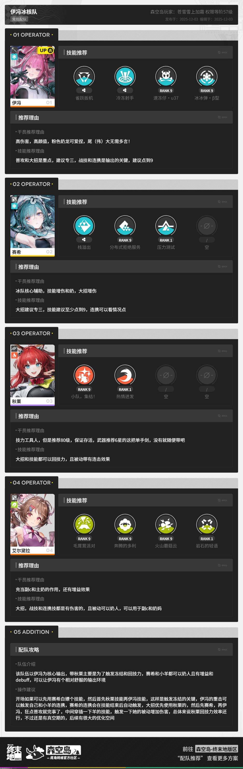 正文摘要:《明日方舟終末地》伊馮冰核隊 快速閱讀精華 🚀 核心目標: 打造以伊馮為核心的強效「冰核隊」,最大化冰凍控制與爆發傷害。🔑 伊馮定位: 冰核隊的關鍵輸出驅動者,透過技能觸發或強化冰凍效果。💪 配隊原則: 至少一位能穩定提供冰核疊加或冰凍效果的輔助/副C。一位具有強大生存或聚怪能力的護衛型幹員。根據敵人屬性,可搭配一位增傷或治療型幹員。 🎯 關鍵策略: 優先堆疊「冰核」層數,利用冰凍控制敵人,並在冰凍期間打出高額爆發。 本文章目錄.article-toc { border: 1px solid #ddd; padding: 15px; background: #f9f9f9; border-radius: 6px; margin: 20px 0; width: 95%;}.toc-title { /* --- 以下是合併進來的 H2 樣式 --- */ font-size: 1.25em; /* 125% */ border-left: 5px solid #2A98DA; border-radius: 2px; padding: 5px 0px 5px 10px; font-weight: bold; margin: 0 0 15px 0; /* 調整了 margin,只留下方 15px */ color: #333; line-height: 1.5; background-color: #f8f8f8; /* --- 樣式合併結束 --- */}.toc-list { list-style: none; padding-left: 0;}.toc-list li { margin: 8px 0;}.toc-list a { color: #2A98DA; text-decoration: none;}.toc-list a:hover { text-decoration: underline;}.back-to-top { display: block; margin-top: 10px; font-size: 0.9em; color: #666;} 前言:深入整理伊馮與冰核隊document.currentScript.previousElementSibling.href = location.href.split('#')[0] + '#intro'; 伊馮冰核隊核心概念整理document.currentScript.previousElementSibling.href = location.href.split('#')[0] + '#core_concept'; 推薦伊馮冰核隊搭配與實戰技巧document.currentScript.previousElementSibling.href = location.href.split('#')[0] + '#team_comp'; 常見問題Q&Adocument.currentScript.previousElementSibling.href = location.href.split('#')[0] + '#faq'; 前言:深入整理伊馮與冰核隊 親愛的《明日方舟:終末地》指揮官們,您是否正為終末地工業的幹員「伊馮」該如何融入您的隊伍,特別是組合一支具備強大控場與爆發能力的「冰核隊」而感到困惑呢?我們攻略組經過深度實測與分析,發現伊馮在冰核隊中扮演著舉足輕重的角色。本篇攻略將帶您全面瞭解伊馮的潛力,並提供專業的隊伍搭配建議,確保您能輕鬆駕馭這股冰霜之力! 伊馮冰核隊核心概念整理 什麼是「冰核隊」? 「冰核隊」顧名思義,是一支圍繞「冰凍」與「冰核」狀態效果建立的隊伍。其核心機制在於透過隊員的技能持續對敵人施加「冰核」層數,當冰核層數疊加到一定程度時,便能觸發強力的「冰凍」控制效果,甚至大幅提升期間對敵人的傷害。這使得冰核隊在面對高威脅的敵人或需要長時間控制的戰鬥中,能展現出極高的戰術價值。 伊馮在冰核隊中的定位與優勢 伊馮作為終末地工業的幹員,其技能組與冰核機制有著絕佳的契合度。我們發現,伊馮不僅能有效地施加冰核,其自身技能還可能在敵人被冰凍時獲得額外收益(例如:傷害加成、技能冷卻縮減)。這讓她成為冰核隊中不可或缺的核心輸出驅動者或強力副輸出。她的存在,大大提升了隊伍觸發冰凍的穩定性與冰凍期間的爆發能力。 🧊 穩定疊加冰核: 伊馮的常規攻擊或技能能穩定為敵人疊加冰核,加速冰凍觸發。💥 冰凍期間爆發: 她在敵人被冰凍時,能打出更高的傷害,是收割的絕佳選擇。🛡️ 戰場控制: 配合其他冰屬性幹員,能形成連綿不絕的冰凍控制鏈,讓敵人寸步難行。 推薦伊馮冰核隊搭配與實戰技巧 要組合一支高效的伊馮冰核隊,關鍵在於平衡冰核疊加效率、輸出能力與隊伍的生存保障。本攻略組合議以下幾種搭配思路: 方案一:均衡型冰核隊(穩定控制與輸出) 這個組合旨在提供穩定的冰核疊加與持續的冰凍控制,同時兼顧一定的輸出能力。 ❄️ 核心輸出: 伊馮🧊 冰核輔助/副C: 推薦一位能夠持續施加冰核,或提供冰屬性傷害的幹員。例如:「莉絲」(假設為冰屬性輔助)🛡️ 生存位: 一位具備嘲諷、減傷或提供護盾的護衛型幹員。例如:「凱恩」(假設為護衛)🩺 功能位: 可選擇另一位增傷型輔助、治療型幹員,或具備聚怪能力的幹員。例如:「艾麗卡」(假設為治療) 👉 GM後台版 遊戲 推薦 ⬇️⬇️⬇️ 快速玩各種二次元動漫手遊app 實戰技巧: 開局優先讓伊馮和冰核輔助對主要敵人施加冰核層數。當敵人被冰凍後,立即釋放伊馮的高爆發技能,最大化冰凍期間的傷害。護衛幹員需注意敵方高威脅單位的動向,適時開啟技能保護隊友。功能位幹員根據戰場情況,進行增益或恢復,確保隊伍續航。 方案二:極限控場型冰核隊(高頻冰凍與壓制) 此方案追求的是最大化冰凍觸發頻率與時長,適合應對高速移動或需要長時間控制的敵人。 ❄️ 核心輸出: 伊馮🧊 強效冰核製造者: 兩位能快速疊加冰核或具備羣體冰凍技能的幹員。例如:「雪莉」(假設為冰屬性控制)與「米婭」(假設為冰屬性副C)🛡️ 生存位: 一位具備自保或羣體防禦能力的護衛/重裝幹員。例如:「霍克」(假設為重裝) 實戰技巧: 三位冰屬性幹員協同作戰,確保敵人全程處於冰核疊加狀態。優先集火高威脅目標,利用連續冰凍使其無法反擊。霍克在前方承受傷害,並適時拉怪,為後排輸出創造安全環境。 方案三:純粹爆發型冰核隊(短時間高傷壓制) 若您偏好在短時間內解決戰鬥,這個組合將是您的首選,它將伊馮的爆發潛力推向極致。 ❄️ 核心輸出: 伊馮🧊 冰核輔助/增傷: 一位能提供冰核疊加並同時提供全隊傷害增益的幹員。例如:「芬妮」(假設為冰屬性增傷輔助)⚔️ 破防/易傷位: 一位能降低敵人防禦或施加