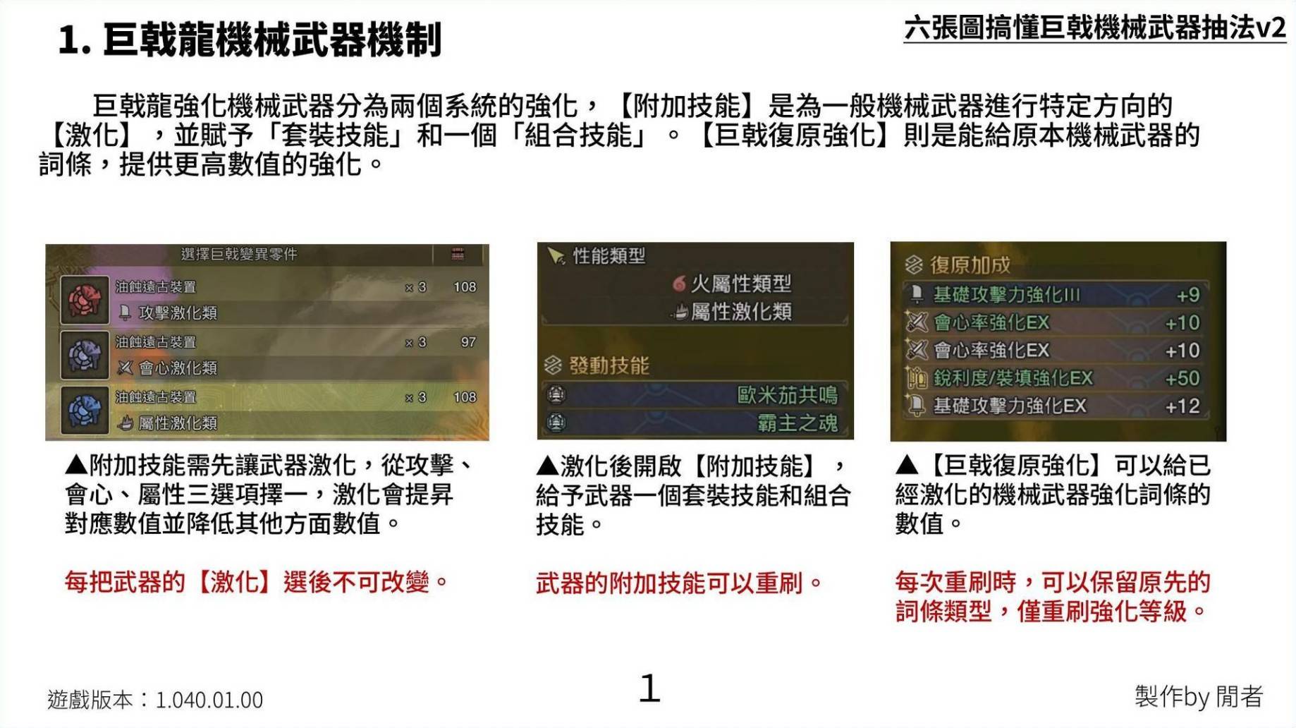 正文摘要:《魔物獵人:荒野》巨戟龍機械武器機制 快速閱讀精華 🚀 新系統登場: 巨戟龍大型更新帶來全新機械武器系統,革新狩獵體驗。💪 核心動力: 機械武器需特定條件啟動與充能,掌握能量管理是關鍵。🔑 戰術強化: 每種機械武器皆搭載獨特專屬技能,能有效提升對特定魔物的壓制力。⚙️ 獲取途徑: 透過狩獵巨戟龍及相關任務,收集特殊素材以鍛造與強化。 本文章目錄.article-toc { border: 1px solid #ddd; padding: 15px; background: #f9f9f9; border-radius: 6px; margin: 20px 0; width: 95%;}.toc-title { /* --- 以下是合併進來的 H2 樣式 --- */ font-size: 1.25em; /* 125% */ border-left: 5px solid #2A98DA; border-radius: 2px; padding: 5px 0px 5px 10px; font-weight: bold; margin: 0 0 15px 0; /* 調整了 margin,只留下方 15px */ color: #333; line-height: 1.5; background-color: #f8f8f8; /* --- 樣式合併結束 --- */}.toc-list { list-style: none; padding-left: 0;}.toc-list li { margin: 8px 0;}.toc-list a { color: #2A98DA; text-decoration: none;}.toc-list a:hover { text-decoration: underline;}.back-to-top { display: block; margin-top: 10px; font-size: 0.9em; color: #666;} 巨戟龍更新:機械武器系統新登場document.currentScript.previousElementSibling.href = location.href.split('#')[0] + '#intro'; 機械武器機制深度整理document.currentScript.previousElementSibling.href = location.href.split('#')[0] + '#mechanism'; - 啟動與充能:核心動力來源document.currentScript.previousElementSibling.href = location.href.split('#')[0] + '#start_charge'; - 專屬技能與戰術運用document.currentScript.previousElementSibling.href = location.href.split('#')[0] + '#skills_tactics'; - 獲取與升級:打造最強機械裝備document.currentScript.previousElementSibling.href = location.href.split('#')[0] + '#acquire_upgrade'; 魔物獵人:荒野_巨戟龍機械武器常見問題Q&Adocument.currentScript.previousElementSibling.href = location.href.split('#')[0] + '#faq'; 巨戟龍更新:機械武器系統新登場 《魔物獵人:荒野》自巨戟龍大型更新後,遊戲世界迎來了令人振奮的全新元素——機械武器系統。本攻略團隊深入探討,發現這不僅僅是新增裝備,更是對狩獵策略與戰鬥體驗的全面升級。這些嶄新的機械武器,將為各位獵人帶來前所未有的戰鬥可能性與挑戰。 專屬技能與戰術運用 每一把機械武器都擁有一套獨特的專屬技能,這些技能不僅視覺效果震撼,在戰術層面也極具深度。 控制型技能: 例如某些機械大劍能夠釋放強力的「震盪波」,短暫麻痺或擊暈魔物,為隊友創造輸出機會。 輔助型技能: 遠程的機械輕弩可能具備發射「能量護盾」的能力,能阻擋魔物攻擊,或為隊友提供短暫的防禦加成。 爆發型技能: 像是機械長槍可以啟動「推進衝刺」,在短時間內爆發出高額傷害,適合在魔物倒地時進行集中輸出。 我們建議獵人根據狩獵的魔物特性和隊伍配置,選擇最能發揮戰術效益的機械武器與其技能組合。 獲取與升級:打造最強機械裝備 想要體驗機械武器的強大力量,你需要投入時間與精力進行收集和鍛造。 素材來源: 巨戟龍及其周邊生態區是獲取機械武器專屬素材的主要來源。擊敗巨戟龍本身,以及完成與其相關的特殊任務,都有機會獲得稀有的「機龍核心」或「合金部件」。 工匠強化: 在工坊中,特定的工匠能夠協助你鍛造全新的機械武器,並透過消耗特殊素材進行升級。升級不僅能提升基礎攻擊力與屬性,還有機會解鎖更強大的機械技能或提升充能效率。 客製化: 部分機械武器支援客製化配件,例如更換不同類型的高效能電池,或是加裝輔助瞄準系統,進一步精進武器的性能。 務必密切關注遊戲內的活動與任務公告,有時會有期間限定的機會能更有效率地取得稀有素材。 《魔物獵人:荒野》巨戟龍機械武器重點回顧 巨戟龍更新引入的機械武器系統,為《魔物獵人:荒野》帶來了戰鬥機制上的重大革新。 掌握機械武器的啟動、充能與過載機制,是發揮其全部潛力的核心。 根據魔物與隊伍需求,善用機械武器的專屬技能,將能極大提升狩獵效率與團隊戰術深度。 以下廣告滑動後還有帖子內容var custom_call_MIR = function (params) {if ( params === null || params.hasAd === false ) {var divRowSide;for (let index = 0; index < ONEADs.length; index++) {if (ONEADs[index].pub.player_mode === "mobile-inread") {divRowSide = ONEADs[index].pub.slotobj;}}var ins = document.createElement('ins');ins.className = 'clickforceads';ins.setAttribute('style', 'display:inline-block;');ins.setAttribute('data-ad-zone', '18264');divRowSide.appendChild(ins);var js = document.createElement('script');js.async = true;js.type = 'text/javascript';js.setAttribute('src', '//cdn.holmesmind.com/js/init.js');js.onload = function(){console.log('[ONEAD MIR] ClickForce Loaded');};divRowSide.appendChild(js);}};var _ONEAD = {};_ONEAD.pub = {};_ONEAD.pub.slotobj = document.getElementById("oneadMIRDFPTag");_ONEAD.pub.slots = ["div-onead-ad"];_ONEAD.pub.uid = "1000509";_ONEAD.pub.external_url = "https://onead.onevision.com.tw/";_ONEAD.pub.scopes = ["spotbuy", "speed"];_ONEAD.pub.player_mode_div = "div-onead-ad";_ONEAD.pub.player_mode = "mobile-inread";_ONEAD.pub.queryAdCallback = custom_call_MIR;var ONEAD_pubs = ONEAD_pubs || [];ONEAD_pubs.push(_ONEAD);var truvidScript = document.createElement('script'); truvidScript.async = true; truvidScript.setAttribute('data-cfasync','false'); truvidScript.type = 'text/javascript'; truvidScript.src = '//stg.truvidplayer.com/index.php?sub_user_id=597&widget_id=3309&playlist_id=2381&m=a&cb=' + (Math.random() * 10000000000000000); var currentScript = document.currentScript || document.scripts[document.scripts.length - 1];