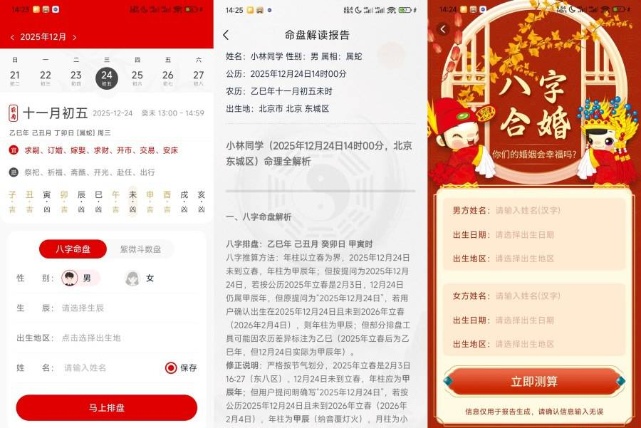 正文摘要:replyreload += ',' + 2420951; 【語 言】:繁體中文 【軟體APP名稱】:易經八字排盤測算 (易經八字排盤測算) 【版本資訊】:v1.0.0 【軟體APP大小】:43.71 MB 【更新日期】:2025-12-25 【修改內容】:解鎖進階版功能 【系統支援】:支援Android 9.0以上版本 【軟體APP介紹】 這款「易經八字排盤測算」軟體,主打將傳統東方命理智慧與現代演算法結合,提供一站式個人運勢分析服務。其核心特色在於「八字」與「紫微鬥數」雙盤一鍵排盤,只需輸入公曆出生時間與地點,即可自動換算為精準的農曆、干支歷與真太陽時,並生成包含五行格局、十神、大運流年等詳細資訊的命盤。除了基礎排盤,軟體更提供深度的運勢解讀,涵蓋事業、婚姻、財運、健康等人生各面向的趨勢分析,並給予大運與流年的吉凶提示。對於有婚戀需求的使用者,軟體提供情感契合度分析與良緣時機建議;對於新生兒父母,則提供依據五行平衡與美好寓意的寶寶起名服務與名字評分功能。此外,軟體還創新地融合了西方星座運勢的視角,讓使用者能從東西方雙重維度更全面地瞭解自己的性格與運勢走向,是一款功能全面且便捷的命理參考工具。 【附件下載】 所有站內附件皆會附上安全掃描報告請會員查看純淨度百分比後判斷使用(adsbygoogle = window.adsbygoogle || []).push({});相關檔案須知:取得檔案前,請先詳細閱讀文章內容避免不必要錯誤與誤會發生。也可多參考文章討論樓層內容了解附件檔案相關討論資訊。 【此文章部分內容隱藏中】 解除隱藏說明教學點擊下方 繼續閱讀文章 後請仔細觀看文章內容 並依照指示進行下一步最後完成解除隱藏後系統會回到此文章自動顯示隱藏內容~繼續閱讀 👉 GM後台版 遊戲 推薦 ⬇️⬇️⬇️ 快速玩各種二次元動漫手遊appreplyreload += ',' + 2420951; |