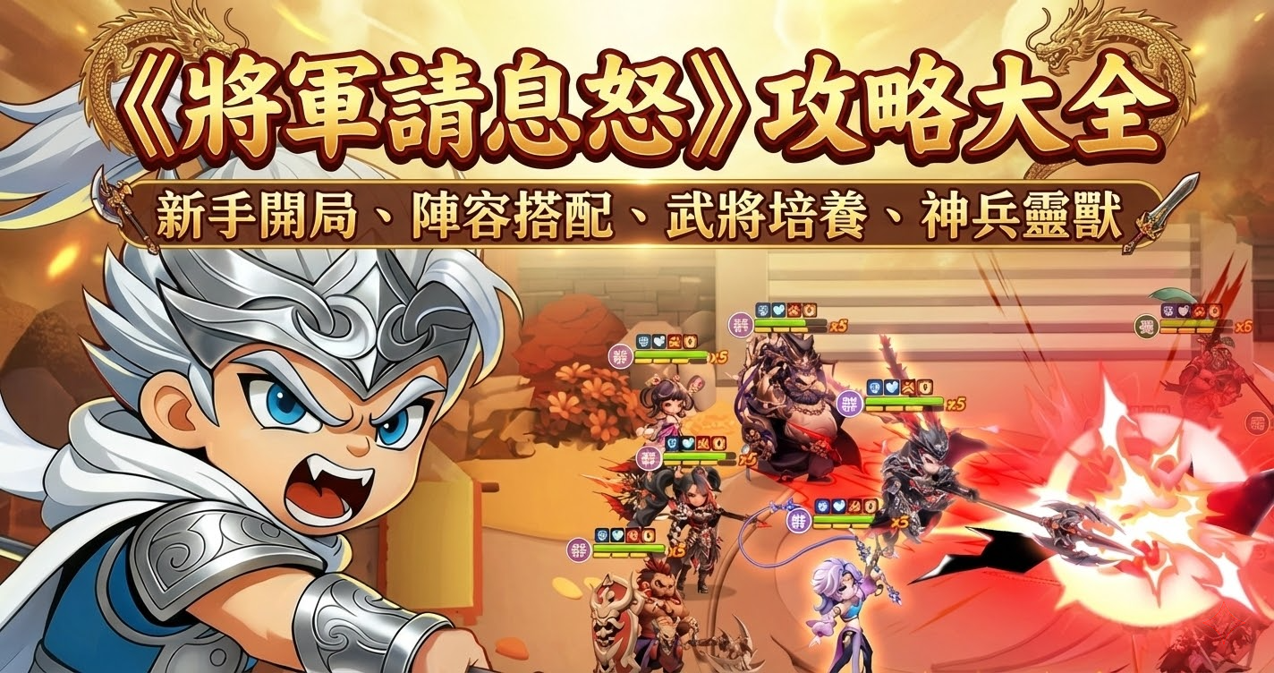 正文摘要:本文章目錄.article-toc { border: 1px solid #ddd; padding: 15px; background: #f9f9f9; border-radius: 6px; margin: 20px 0; width: 95%;}.toc-title { /* --- 以下是合併進來的 H2 樣式 --- */ font-size: 1.25em; /* 125% */ border-left: 5px solid #2A98DA; border-radius: 2px; padding: 5px 0px 5px 10px; font-weight: bold; margin: 0 0 15px 0; /* 調整了 margin,只留下方 15px */ color: #333; line-height: 1.5; background-color: #f8f8f8; /* --- 樣式合併結束 --- */}.toc-list { list-style: none; padding-left: 0;}.toc-list li { margin: 8px 0;}.toc-list a { color: #2A98DA; text-decoration: none;}.toc-list a:hover { text-decoration: underline;}.back-to-top { display: block; margin-top: 10px; font-size: 0.9em; color: #666;}新手必看&系統指南document.currentScript.previousElementSibling.href = location.href.split('#')[0] + '#newbie_guide'; 陣容流派&國家隊配置document.currentScript.previousElementSibling.href = location.href.split('#')[0] + '#team_comp'; 全武將深度養成指南document.currentScript.previousElementSibling.href = location.href.split('#')[0] + '#character_guides'; 最新禮包碼 🎁document.currentScript.previousElementSibling.href = location.href.split('#')[0] + '#gift_codes'; 常見問題Q&Adocument.currentScript.previousElementSibling.href = location.href.split('#')[0] + '#faq'; 玩《將軍請息怒》還在東拼西湊找攻略?一篇文幫你全部搞定! 各位將軍安安!是不是覺得《將軍請息怒》內容超豐富,但武將、陣容、各種系統看得眼花撩亂,不知道從何下手?卡關了想找攻略,卻發現資料散落各處,一篇一篇找超麻煩? 別擔心!你各位的心聲我們都聽到了。這篇文章就是你的終極武功祕笈,我們把所有關於《將軍請息怒》的重點攻略,從新手開局、課金建議、陣容搭配,到各國國家隊、神魔隊伍,甚至是每一位核心武將的深度養成,全部系統性地整理好了! 不管你是剛加入的萌新,還是追求頂點的老手,都能在這裡找到你需要的資訊。趕快往下看,打造屬於你的最強軍團吧! 新手必看&系統指南 剛踏入三國世界,資源有限,每一步都得精打細算。這個區塊專為新手與回鍋玩家設計,從最基礎的隊伍組成、怎麼花錢最划算,到遊戲內各種複雜系統的解析,讓你快速上手,少走冤枉路! 👉 GM後台版 遊戲 推薦 ⬇️⬇️⬇️ 快速玩各種二次元動漫手遊app 開局與陣容基礎 《將軍請息怒》新手陣容搭配攻略 怎麼組最強隊伍?快速推關不是夢!《將軍請息怒》新手陣容搭配攻略 開局抽不到神將怎麼辦?《將軍請息怒》新手陣容搭配攻略 開局抽不到神將怎麼辦?《將軍請息怒》武將陣容搭配推薦 新手開荒到PVP頂配隊伍怎麼組?《將軍請息怒》武將陣容搭配推薦 新手開荒到PVP頂配隊伍怎麼組?《將軍請息怒》實用陣容搭配攻略 新手推關、國家隊組成祕訣 課金與平民玩法 《將軍請息怒》微課金最佳指南 攻略 怎麼花錢最划算?新手必看!《將軍請息怒》小課金最強開局攻略 無課太痛苦?小課玩家怎麼花最划算?《將軍請息怒》平民陣容搭配全攻略 無課小課最強隊伍要怎麼組?《將軍請息怒》1000抽武將選擇攻略 抽到哪位神角最划算? 核心系統全解析 武將養成: 《將軍請息怒》神魔武將怎麼拿攻略 抽卡、活動、碎片合成全整理!《將軍請息怒》武將回退與狗糧轉換攻略 升星卡關?神將1星狗糧這樣換最划算!《將軍請息怒》武將升星材料攻略 全星級養成路線整理《將軍請息怒》神將覺醒石 攻略 作用整理、獲取途徑與使用教學《將軍請息怒》神魔連結條件與機制全攻略 要去哪裡找?《將軍請息怒》神魔連結條件與機制全攻略 要去哪裡找? 裝備與夥伴: 《將軍請息怒》魚類系統搭配攻略 要去哪裡找?怎麼配最強?《將軍請息怒》魚類系統搭配攻略 要去哪裡找?怎麼配最強?《將軍請息怒》靈獸搭配攻略 新手必看!最強靈獸怎麼搭?《將軍請息怒》最強神獸推薦攻略 PVE、PVP必備名單曝光,新手靈獸培養懶人包《將軍請息怒》神兵推薦與升星攻略 要去哪裡找?《將軍請息怒》神兵抽滿規則 攻略 頂級神兵怎麼拿?《將軍請息怒》古玩優先級攻略 最強組合怎麼選?輕鬆打造不死戰隊!《將軍請息怒》限定魚優先選擇 攻略 強化陣容戰力,這些限定魚必拿!《將軍請息怒》限定古玩攻略 新手必看!最強古玩組合與應用場景全整理 副本挑戰: 《將軍請息怒》運璣天宮歲運攻略 輕鬆掌握材料淬煉與最強隊伍搭配《將軍請息怒》歲運副本攻略 中期玩家怎麼輕鬆通關? 陣容流派&國家隊配置 想好要走哪個流派了嗎?無論是追求純粹陣營加成的「國家隊」,還是集各方之長的「神魔混搭隊」,這裡都有最詳盡的組隊思路與實戰分析,讓你輕鬆稱霸PVP與PVE戰場! 通用與頂配陣容 《將軍請息怒》最強陣容搭配攻略 新手開荒、魏吳羣雄隊伍怎麼選?稱霸戰場必看!《將軍請息怒》6人陣容搭配攻略 最強組合怎麼搭?PVP、PVE戰術大公開!《將軍請息怒》六人神話陣容搭配攻略 最強組合一次看!《將軍請息怒》神話武將最強陣容攻略 混搭隊伍怎麼組?PVE與PVP全整理!《將軍請息怒》神魔最強陣容攻略 怎麼搭配PVE/PVP都無敵?《將軍請息怒》神魔武將推薦攻略 最強陣容怎麼配?隊伍搭配大解密! 四大陣營國家隊 魏國: 魏國國家隊最強陣容攻略 T0級角色搭配技巧與實戰分析,讓你輕鬆稱霸戰場!蜀國: 蜀國國家隊陣容攻略 最強陣容怎麼組?隊伍特色整理!吳國: 吳國灼燒隊陣容攻略 要去哪裡找?群雄: 羣雄國家隊最強搭配攻略 要怎麼組才能戰力爆棚?群雄T0開局攻略 群雄陣營怎麼