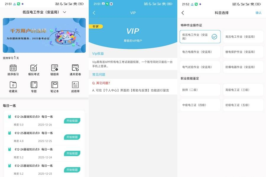 正文摘要:replyreload += ',' + 2421691; 【語 言】:中文 【軟體APP名稱】:Electrician Exam Assistant / 電工考試助手 【版本資訊】:v3.3.1 【軟體APP大小】:8.01 MB 【更新日期】:2025-12-27 【修改內容】:功能解鎖版 【系統支援】:支援Android 9.0以上版本 【軟體APP介紹】 這是一款專為準備電工證照與特種作業考試所設計的備考工具。它擁有全面的題庫系統,涵蓋了低壓與高壓電工作業、電力電纜、繼電保護、電氣試驗、防爆電氣等多個工種,並包含從初級、中級、高級電工證到技師證的考試大綱範圍,讓您一網打盡所有考點。軟體提供多樣化的練習模式,包括順序練習、隨機測驗、考點專項訓練以及模擬考試,並能自動計時與評分,高度還原真實考場情境。其智能錯題管理功能會自動收錄答錯的題目,提供詳細整理並協助您進行針對性複習,您還可以收藏重要或高頻題目,打造屬於自己的專屬題庫。最重要的是,題庫會根據官方發布的最新考試大綱與新增題目進行即時更新,確保內容能完全適配當年的考試新規定,是您備考路上的得力助手。 【附件下載】 所有站內附件皆會附上安全掃描報告請會員查看純淨度百分比後判斷使用(adsbygoogle = window.adsbygoogle || []).push({});相關檔案須知:取得檔案前,請先詳細閱讀文章內容避免不必要錯誤與誤會發生。也可多參考文章討論樓層內容了解附件檔案相關討論資訊。 【此文章部分內容隱藏中】 解除隱藏說明教學點擊下方 繼續閱讀文章 後請仔細觀看文章內容 並依照指示進行下一步最後完成解除隱藏後系統會回到此文章自動顯示隱藏內容~繼續閱讀 👉 GM後台版 遊戲 推薦 ⬇️⬇️⬇️ 快速玩各種二次元動漫手遊appreplyreload += ',' + 2421691; |