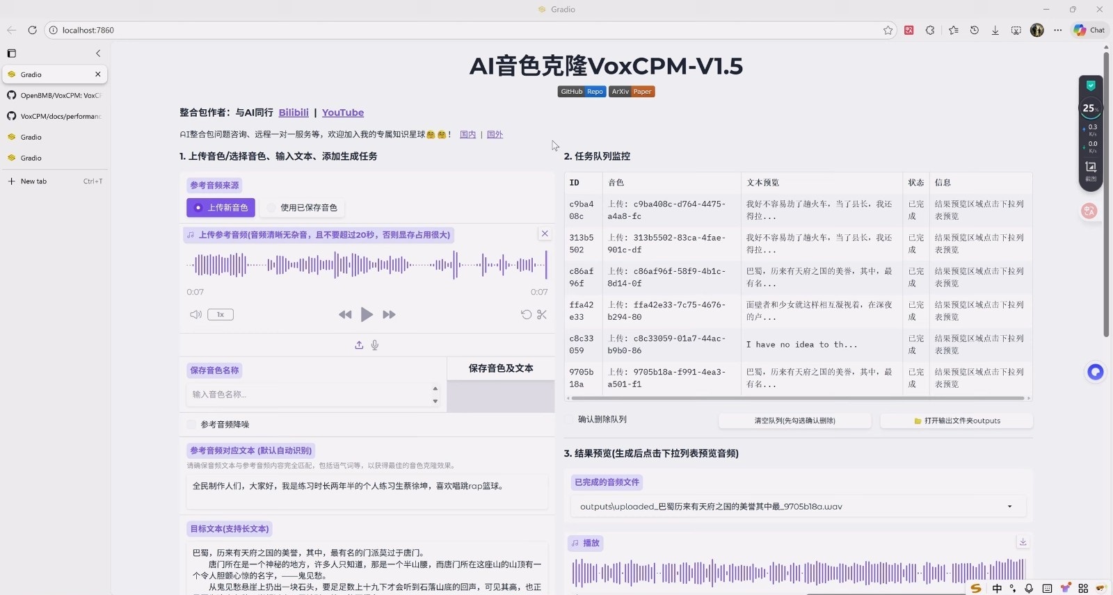 正文摘要:《VoxCPM》核心主題 快速閱讀精華 懶人包重點: 🚀 超強AI音色克隆工具,最新V1.5整合包,免去複雜部署流程,真正一鍵啟動!🔑 核心功能:支援超長文本生成、批量生成、音色保存、多音字修改與語速調節。💻 硬體需求親民:最低僅需6GB顯存即可運行,生成速度超快。📦 檔案完整:內含所有必要元件,下載解壓後即可使用,新手也能輕鬆上手。 .article-toc { border: 1px solid #ddd; padding: 15px; background: #f9f9f9; border-radius: 6px; margin: 20px 0; width: 90%;}.article-toc br { display: none;}.toc-title { /* --- 以下是合併進來的 H2 樣式 --- */ font-size: 1.25em; /* 125% */ border-left: 5px solid #2A98DA; border-radius: 2px; padding: 5px 0px 5px 10px; font-weight: bold; margin: 0 0 15px 0; /* 調整了 margin,只留下方 15px */ color: #333; line-height: 1.5; background-color: #f8f8f8; /* --- 樣式合併結束 --- */}.toc-list { list-style: none; padding-left: 0;}.toc-list li { margin: 8px 0;}.toc-list a { color: #2A98DA; text-decoration: none;}.toc-list a:hover { text-decoration: underline;}.back-to-top { display: block; margin-top: 10px; font-size: 0.9em; color: #666;}本文章目錄 軟體規格資訊document.currentScript.previousElementSibling.href = location.href.split('#')[0] + '#info'; 軟體截圖document.currentScript.previousElementSibling.href = location.href.split('#')[0] + '#screenshot'; 常見問題Q&Adocument.currentScript.previousElementSibling.href = location.href.split('#')[0] + '#faq'; 附件下載 🔽document.currentScript.previousElementSibling.href = location.href.split('#')[0] + '#download'; 軟體規格資訊 【語 言】:網頁翻譯(多國語言,含中文介面) 【軟體名稱】:VoxCPM V1.5 整合包 【版本資訊】:v1.5 【軟體大小】:4.4 GB 【更新日期】:詳見內文 【使用權限】:免費版 【系統支持】:Windows (需NVIDIA顯卡,顯存6GB以上) 【軟體介紹】: 還在找簡單好用的AI語音克隆軟體嗎?這款「VoxCPM V1.5整合包」絕對是你的首選!它最大的特色就是「免部署、一鍵啟動」,省去了令人頭痛的環境設定與依賴套件安裝步驟,對於不熟悉程式的新手來說超級友善。 本整合包將所有必要檔案都打包好了,下載解壓縮後,基本上只需執行一個啟動檔,就能進入功能強大的AI音色克隆世界。它不僅可以克隆你的聲音,更支援「超長文本生成」,不用再一段一段慢慢處理。對於需要大量產出的使用者,它的「批量生成」功能可以大幅提升工作效率。 此外,軟體還內建了實用的細節調整功能,例如可以保存你訓練好的專屬音色、修正多音字的發音,還能自由調節語速,讓生成的語音聽起來更自然。最重要的是,它對硬體的要求相對親民,官方標示最低只需要6GB的顯存就能運行,而且生成速度很快,不用苦等半天。 下面將提供詳細的下載與安裝步驟,跟著做就能快速體驗AI語音合成的魅力。 【軟體截圖】: 👉 GM後台版 遊戲 推薦 ⬇️⬇️⬇️ 快速玩各種二次元動漫手遊app 常見問題Q&A Q:需要額外部署Python或其他複雜環境嗎? A:不需要!這是「免部署」的整合包,所有必要環境都已打包在內,實現一鍵啟動。 Q:對電腦顯卡有什麼要求? A:需要NVIDIA顯卡,且顯存最低需求為6GB。請確認您的顯卡符合此規格。 Q:軟體介面是中文的嗎? A:軟體本身支援多國語言,包含透過網頁翻譯的中文介面,使用上沒有障礙。 Q:可以克隆任何人的聲音來生成語音嗎? A:此為AI音色克隆工具,理論上可以透過學習聲音樣本來生成相似語音。請務必遵守相關法律與道德規範,尊重他人聲音權。 以下廣告滑動後還有帖子內容var custom_call_MIR = function (params) {if ( params === null || params.hasAd === false ) {var divRowSide;for (let index = 0; index < ONEADs.length; index++) {if (ONEADs[index].pub.player_mode === "mobile-inread") {divRowSide = ONEADs[index].pub.slotobj;}}var ins = document.createElement('ins');ins.className = 'clickforceads';ins.setAttribute('style', 'display:inline-block;');ins.setAttribute('data-ad-zone', '18264');divRowSide.appendChild(ins);var js = document.createElement('script');js.async = true;js.type = 'text/javascript';js.setAttribute('src', '//cdn.holmesmind.com/js/init.js');js.onload = function(){console.log('[ONEAD MIR] ClickForce Loaded');};divRowSide.appendChild(js);}};var _ONEAD = {};_ONEAD.pub = {};_ONEAD.pub.slotobj = document.getElementById("oneadMIRDFPTag");_ONEAD.pub.slots = ["div-onead-ad"];_ONEAD.pub.uid = "1000509";_ONEAD.pub.external_url = "https://onead.onevision.com.tw/";_ONEAD.pub.scopes = ["spotbuy", "speed"];_ONEAD.pub.player_mode_div = "div-onead-ad";_ONEAD.pub.player_mode = "mobile-inread";_ONEAD.pub.queryAdCallback = custom_call_MIR;var ONEAD_pubs = ONEAD_pubs || [];ONEAD_pubs.push(_ONEAD);var truvidScript = document.createElement('script'); truvidScript.async = true; truvidScript.setAttribute('data-cfasync','false'); truvidScript.type = 'text/javascript'; truvidScript.src = '//stg.truvidplayer.com/index.php?sub_user_id=597&widget_id=3309&playlist_id=2381&m=a&cb=' + (Math.random() * 10000000000000000); var currentScript = document.currentScript || document.scripts[document.scripts.length - 1]; currentScript.parentNode.insertBefore(truvidScript, currentScript.nextSibling); 【附件下載】: VoxCPM-V1.5 整合包 (katfile 載點) |