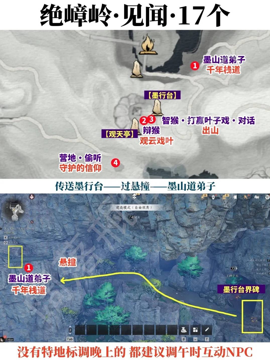 正文摘要:《燕雲十六聲》絕嶂嶺見聞全收集 快速閱讀精華 🚀 核心目標: 鎖定《燕雲十六聲》絕嶂嶺地區全部17個見聞,不再錯過任何隱藏奇遇!🔑 觀雲戲葉: 透過與特定NPC對話,找到3隻神祕的猴子,解鎖見聞。🐵 智猴葉子戲: 在觀天亭附近挑戰智猴的葉子戲,贏得勝利或與其他NPC切磋後再找智猴。🗺️ 棲鳥巖前置: 進入棲鳥巖需要完成相關的「探遊」任務,這是探索奇遇的關鍵一步。🔮 洞中奇譚: 進入棲鳥巖後,深入探索即可隨機觸發這項獨特的奇遇。💡 專家建議: 探索時多與環境互動、留意任務指引,能大幅提升見聞收集效率。 本文章目錄.article-toc { border: 1px solid #ddd; padding: 15px; background: #f9f9f9; border-radius: 6px; margin: 20px 0; width: 95%;}.toc-title { /* --- 以下是合併進來的 H2 樣式 --- */ font-size: 1.25em; /* 125% */ border-left: 5px solid #2A98DA; border-radius: 2px; padding: 5px 0px 5px 10px; font-weight: bold; margin: 0 0 15px 0; /* 調整了 margin,只留下方 15px */ color: #333; line-height: 1.5; background-color: #f8f8f8; /* --- 樣式合併結束 --- */}.toc-list { list-style: none; padding-left: 0;}.toc-list li { margin: 8px 0;}.toc-list a { color: #2A98DA; text-decoration: none;}.toc-list a:hover { text-decoration: underline;}.back-to-top { display: block; margin-top: 10px; font-size: 0.9em; color: #666;} 絕嶂嶺見聞:告別東奔西走,輕鬆全收集!document.currentScript.previousElementSibling.href = location.href.split('#')[0] + '#intro'; - 見聞一:觀雲戲葉,與猴同行document.currentScript.previousElementSibling.href = location.href.split('#')[0] + '#guanyunxih_ye'; - 見聞二:智猴的葉子戲,考驗你的眼力document.currentScript.previousElementSibling.href = location.href.split('#')[0] + '#zhihouyexi'; - 見聞三:棲鳥巖探遊,深入險境的前置document.currentScript.previousElementSibling.href = location.href.split('#')[0] + '#qixiaoyanyou'; - 見聞四:奇遇.洞中奇譚,不期而遇的驚喜document.currentScript.previousElementSibling.href = location.href.split('#')[0] + '#dongzhongqitan'; 《燕雲十六聲》絕嶂嶺見聞收集_常見問題Q&Adocument.currentScript.previousElementSibling.href = location.href.split('#')[0] + '#faq'; 絕嶂嶺見聞:告別東奔西走,輕鬆全收集! 在《燕雲十六聲》廣闊的江湖世界中,絕嶂嶺地區以其獨特的風光與隱藏的見聞吸引著無數俠客。這個區域總共有17個見聞等待著各位挖掘。我們發現,許多玩家在尋找這些散落在各處的線索時,常常感到無所適從,甚至錯過了許多精彩的奇遇。別擔心!本攻略將以專業且口語化的方式,帶領你一步步解決收集見聞的核心煩惱,讓你在絕嶂嶺的探索之旅更加順暢。我們將從幾個重要的見聞開始,為你提供詳盡的指引與實用的技巧! 見聞一:觀雲戲葉,與猴同行 這個見聞的觸發點非常有趣,它需要你先與絕嶂嶺中的某位特定NPC(通常在觀天亭附近)進行對話。經過我們實測後發現,當對話過程中提及到「3隻猴子」[/b的關鍵字時,見聞的線索就會浮現。 首先,前往絕嶂嶺的觀天亭區域,尋找一位看似對自然景觀特別感興趣的NPC。與其進行互動對話,留意對話選項,選擇那些可能與周遭動物或自然現象相關的內容。當對話提及「3隻猴子」後,見聞便會自動獲得。這暗示著這些猴子可能在附近有特殊的活動或棲息地,是這片區域生態的見證者。 見聞三:棲鳥巖探遊,深入險境的前置 棲鳥巖是絕嶂嶺一個重要的探索區域,裡面藏有多個見聞與奇遇。但要進入這個地方,並不是單純走過去就能完成的。我們發現,許多玩家會困惑於為何無法深入棲鳥巖,這是因為它有著嚴格的前置條件! 核心關鍵在於「探遊」任務。你必須先接取並推進與棲鳥巖相關的「探遊」系列任務。這些任務通常會引導你瞭解棲鳥巖的背景故事或環境特徵。當「探遊」任務達到一定進度,或完成特定環節後,棲鳥巖的進入限制才會解除,允許你自由探索。所以,如果你發現自己無法進入棲鳥巖,請務必先回頭檢查你的任務列表,確認是否有與該區域相關的探遊任務尚未完成。完成這些前置任務,是解鎖後續棲鳥巖所有見聞的必經之路。 見聞四:奇遇.洞中奇譚,不期而遇的驚喜 「洞中奇譚」是棲鳥巖內一個充滿神祕色彩的奇遇見聞。不同於其他有明確指引的見聞,這個奇遇的觸發方式更偏向於「隨機探索」。 在你成功進入棲鳥巖之後,這個見聞的觸發就變得相對簡單。我們實測發現,只需要你在棲鳥巖的內部自由探索,四處走動,或者在不同的巖洞、角落裡穿梭,就有機會「隨機」觸發。它沒有特定的NPC或固定物品需要互動,更多是依賴你的足跡與系統的判定。這也是《燕雲十六聲》鼓勵玩家深入探索地圖、發現隱藏內容的一種設計。所以,一旦進入棲鳥巖,放慢腳步,仔細留意周遭環境的變化,說不定就能與這場奇譚不期而遇! 《燕雲十六聲》絕嶂嶺見聞收集重點回顧 絕嶂嶺的17個見聞雖然散佈各處,但只要掌握關鍵對話、挑戰機制與前置任務,便能大幅提升收集效率。「探遊」任務是開啟特定區域(如棲鳥巖)的鑰匙,務必優先完成。多與環境互動,嘗試不同的探索方式,是發現隱藏奇遇的不二法門。 以下廣告滑動後還有帖子內容var custom_call_MIR = function (params) {if ( params === null || params.hasAd === false ) {var divRowSide;for (let index = 0; index < ONEADs.length; index++) {if (ONEADs[index].pub.player_mode === "mobile-inread") {divRowSide = ONEADs[index].pub.slotobj;}}var ins = document.createElement('ins');ins.className = 'clickforceads';ins.setAttribute('style', 'display:inline-bl