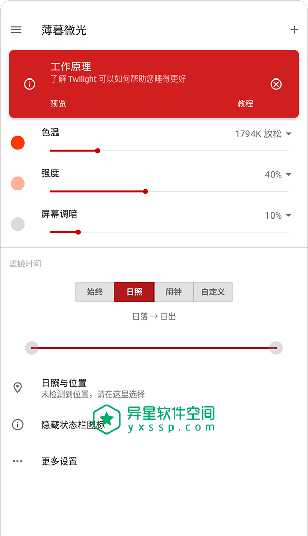 正文摘要:《薄暮微光 Twilight》核心主題 快速閱讀精華 🌙 護眼助眠神器: 自動過濾螢幕藍光,根據日出日落智慧調整濾鏡強度。 解鎖專業版功能,無需額外付費或金鑰。 支援飛利浦 HUE PRO 橋接器,打造沉浸式光環境。 介面重新設計,新增仿紙質感選項,操作更直覺。 本文章目錄.article-toc { border: 1px solid #ddd; padding: 15px; background: #f9f9f9; border-radius: 6px; margin: 20px 0; width: 95%;}.toc-title { /* --- 以下是合併進來的 H2 樣式 --- */ font-size: 1.25em; /* 125% */ border-left: 5px solid #2A98DA; border-radius: 2px; padding: 5px 0px 5px 10px; font-weight: bold; margin: 0 0 15px 0; /* 調整了 margin,只留下方 15px */ color: #333; line-height: 1.5; background-color: #f8f8f8; /* --- 樣式合併結束 --- */}.toc-list { list-style: none; padding-left: 0;}.toc-list li { margin: 8px 0;}.toc-list a { color: #2A98DA; text-decoration: none;}.toc-list a:hover { text-decoration: underline;}.back-to-top { display: block; margin-top: 10px; font-size: 0.9em; color: #666;} 軟體規格與介紹document.currentScript.previousElementSibling.href = location.href.split('#')[0] + '#info'; 軟體截圖document.currentScript.previousElementSibling.href = location.href.split('#')[0] + '#screenshot'; 附件下載 🔽document.currentScript.previousElementSibling.href = location.href.split('#')[0] + '#download'; 【語 言】:完整多國語言 (包含繁體中文) 【軟體名稱】:薄暮微光 Twilight 【版本資訊】:v14.21 【軟體大小】:請參考下載檔案 【更新日期】:2026/01/07 【使用權限】:直裝解鎖專業版 (付費功能已解鎖) 【系統支持】:Android 7.0 及以上版本 【軟體介紹】: 軟體規格與介紹 你是否也有睡前滑手機、平板,結果反而睡不著的困擾呢?這很可能就是螢幕發出的「藍光」在作怪!科學研究指出,睡前暴露在藍光下會抑制褪黑激素分泌,打亂你的生理時鐘,導致入睡困難。《薄暮微光 Twilight》就是為瞭解決這個問題而生的護眼神器! 它會在你所在地的日落後,自動過濾掉手機或平板螢幕上的藍色光譜,並用柔和的紅色濾鏡來保護你的眼睛。最棒的是,濾鏡的強度會根據你當地的日照時間平滑地自動調整,完全不用手動設定,超級方便! 這次的 v14.21 更新版帶來了許多實用的新功能與改進,包括支援飛利浦 HUE PRO 橋接器,讓你可以打造更一致的智慧光環境。介面也經過了富有表現力的重新設計,新增了仿紙的啞光質感選項,讓閱讀更舒適,還有更大的暫停按鈕,操作起來更順手。此外也更新了許多語言翻譯,並以最新的 API 級別為目標進行優化。 這個版本是直裝解鎖專業版,所有需要付費的專業功能都已經為你解鎖好了,安裝後即可直接使用,無需任何額外的破解步驟或金鑰,非常適合想要保護眼睛、改善睡眠品質的用戶。 【軟體截圖】: 👉 GM後台版 遊戲 推薦 ⬇️⬇️⬇️ 快速玩各種二次元動漫手遊app 【附件下載】: 藍奏雲盤 (密碼: f7mz) 藍奏地址打不開教學:lanzouq 改成lanzoux 就是把q替換成m或者w 即可正常訪問《123雲盤》免中國電話免註冊下載 APP安裝、免會員VIP高速下載BUG利用、檔案管理完整教學 百度雲盤 (密碼: bvnk) 夸克網盤 |