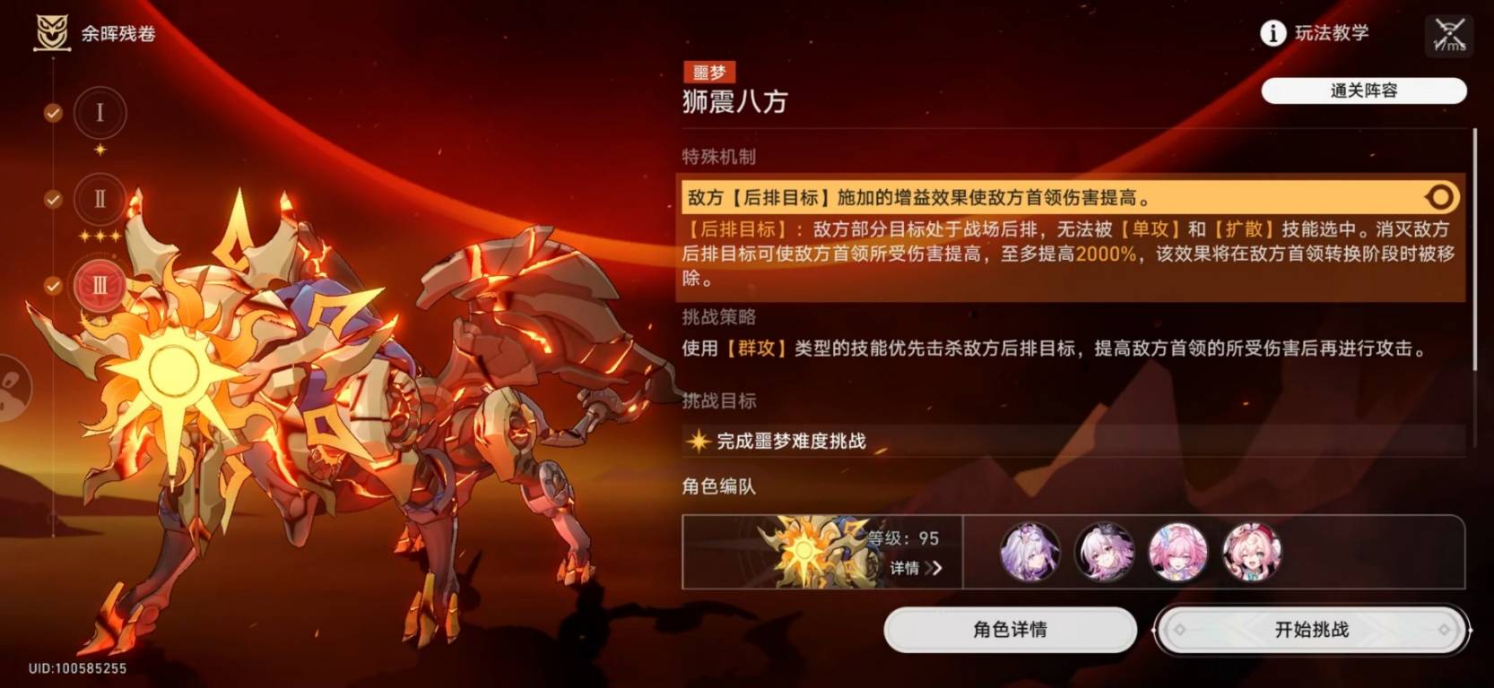正文摘要:《崩壞:星穹鐵道》餘暉殘卷活動 快速閱讀精華 🚀 核心目標: 幫助您在《餘暉殘卷》活動中,輕鬆達成所有關卡滿星成就!💡 關鍵策略: 深入理解各關卡機制,針對性配置隊伍,而非盲目堆疊輸出。💪 第一關「遐蝶之舞」: 推薦隊伍: 遐蝶1+1、長夜月0+0、昔漣2+0、風堇0+0通關技巧: 手動優先處理「盜賊之靈」,確保穩定通關。🛡️ 第二關「羅剎之影」: 推薦隊伍: 羅剎0+1,其餘角色0+0通關技巧: 純機制關卡,不建議主打輸出,自動掛機也能穩定過關。🔥 第三關「提寶之嘆」: 核心重點: 善用龍魂存在時觸發的強化戰技,可一次攻擊兩層。特別提醒: 若提寶為0魂或1魂,切勿隨意引爆龍魂,以免影響輸出節奏。⚔️ 第四關「數值挑戰」: 核心策略: 需高練度角色硬核輸出。推薦配置: 「二白」、「二昔」作為主力輸出,遐蝶作為輔助或啦啦隊。 本文章目錄.article-toc { border: 1px solid #ddd; padding: 15px; background: #f9f9f9; border-radius: 6px; margin: 20px 0; width: 95%;}.toc-title { /* --- 以下是合併進來的 H2 樣式 --- */ font-size: 1.25em; /* 125% */ border-left: 5px solid #2A98DA; border-radius: 2px; padding: 5px 0px 5px 10px; font-weight: bold; margin: 0 0 15px 0; /* 調整了 margin,只留下方 15px */ color: #333; line-height: 1.5; background-color: #f8f8f8; /* --- 樣式合併結束 --- */}.toc-list { list-style: none; padding-left: 0;}.toc-list li { margin: 8px 0;}.toc-list a { color: #2A98DA; text-decoration: none;}.toc-list a:hover { text-decoration: underline;}.back-to-top { display: block; margin-top: 10px; font-size: 0.9em; color: #666;} 活動概覽與滿星策略document.currentScript.previousElementSibling.href = location.href.split('#')[0] + '#intro'; 第一關:「遐蝶之舞」陣容與通關要點document.currentScript.previousElementSibling.href = location.href.split('#')[0] + '#stage_1_xiadie'; 第二關:「羅剎之影」輕鬆滿星策略document.currentScript.previousElementSibling.href = location.href.split('#')[0] + '#stage_2_luocha'; 第三關:「提寶之嘆」關鍵技巧整理document.currentScript.previousElementSibling.href = location.href.split('#')[0] + '#stage_3_ticao'; 第四關:「數值挑戰」強力陣容推薦document.currentScript.previousElementSibling.href = location.href.split('#')[0] + '#stage_4_shuzhi'; 餘暉殘卷活動_常見問題Q&Adocument.currentScript.previousElementSibling.href = location.href.split('#')[0] + '#faq'; 《崩壞:星穹鐵道》餘暉殘卷活動概覽與滿星策略 親愛的開拓者們,歡迎來到《崩壞:星穹鐵道》的「餘暉殘卷」活動!許多玩家都好奇,面對這些挑戰性十足的關卡,究竟要如何配置隊伍才能順利達成全滿星成就呢?本攻略團隊深入實測後發現,關鍵在於理解每個關卡的獨特機制與敵人特性,並非一味追求高練度角色。接下來,我們將為您詳細心得各關卡的滿星陣容與通關技巧,幫助您輕鬆應對,收穫豐厚獎勵! 第一關:「遐蝶之舞」陣容與通關要點 在「遐蝶之舞」這一關,我們實測後的最佳推薦陣容為:遐蝶1魂1光錐、長夜月0魂0光錐、昔漣2魂0光錐,以及風堇0魂0光錐。這個配置被許多玩家譽為最容易上手的組合,特別適合希望穩定通關的開拓者。 然而,我們必須特別提醒玩家:如果您的提寶是0魂或1魂配置,請務必避免隨意「引爆龍魂」。過早或不恰當的引爆,可能會打亂您的輸出節奏,導致傷害不足,進而影響滿星的達成。務必掌握好龍魂的利用時機,將其效益最大化。 第四關:「數值挑戰」強力陣容推薦 最後一關「數值挑戰」,顧名思義,這是一個對玩家隊伍練度有較高要求的關卡。這裡不再是單純的機制應對,而是需要我們依賴角色本身的高數值輸出與生存能力來碾壓敵人。 本攻略團隊強力推薦使用「二白二昔神力」的配置,也就是以白露和昔漣作為隊伍的核心輸出。在這支隊伍中,遐蝶雖然也能上場,但更多是作為啦啦隊般的存在,提供輔助或增益,主力輸出重擔仍落在高練度的白露與昔漣身上。請確保您的主力輸出角色具備足夠的練度,才能在這場純數值考驗中脫穎而出。 以下廣告滑動後還有帖子內容var custom_call_MIR = function (params) {if ( params === null || params.hasAd === false ) {var divRowSide;for (let index = 0; index < ONEADs.length; index++) {if (ONEADs[index].pub.player_mode === "mobile-inread") {divRowSide = ONEADs[index].pub.slotobj;}}var ins = document.createElement('ins');ins.className = 'clickforceads';ins.setAttribute('style', 'display:inline-block;');ins.setAttribute('data-ad-zone', '18264');divRowSide.appendChild(ins);var js = document.createElement('script');js.async = true;js.type = 'text/javascript';js.setAttribute('src', '//cdn.holmesmind.com/js/init.js');js.onload = function(){console.log('[ONEAD MIR] ClickForce Loaded');};divRowSide.appendChild(js);}};var _ONEAD = {};_ONEAD.pub = {};_ONEAD.pub.slotobj = document.getElementById("oneadMIRDFPTag");_ONEAD.pub.slots = ["div-onead-ad"];_ONEAD.pub.uid = "1000509";_ONEAD.pub.external_url = "https://onead.onevision.com.tw/";_ONEAD.pub.scopes = ["spotbuy", "speed"];_ONEAD.pub.player_mode_div = "div-onead-ad";_ONEAD.pub.player_mode = "mobile-inread";_ONEAD.pub.queryAdCallback = custom_call_MIR;var ONEAD_pubs = ONEAD_pubs || [];ONEAD_pubs.push(_ONEAD);var truvidScript = document.createElement('script'); truvidScript.async = true; truvidScript.setAttribute('data-cfasync','false'); truvidScript.type = 'text/javascript'; truvidScript.src = '//stg.truvidplayer.com/index.php?sub_user_id=597&widget_id=3309&playlist_id=2381&m=a&cb=' + (Math.random() * 10000000000000000); var currentScript = document.currentScript || document.scripts[document.scripts.length - 1]; currentScript.parentNode.insertBefore(truvidScr