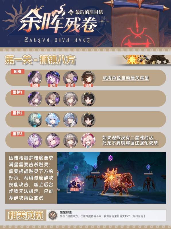 正文摘要:《崩壞:星穹鐵道》餘暉殘卷全關卡配隊攻略 快速閱讀精華 🚀 核心目標: 輕鬆掌握《餘暉殘卷》5大關卡攻略,完整獲取所有活動獎勵!🔑 關鍵策略: 每個關卡都有「特殊環境」,隊伍配置需靈活應對,本攻略將為您整理最佳配隊思路。💡 專家提示: 提前瞭解關卡特性與敵人弱點,是您通關的致勝關鍵。 本文章目錄.article-toc { border: 1px solid #ddd; padding: 15px; background: #f9f9f9; border-radius: 6px; margin: 20px 0; width: 95%;}.toc-title { /* --- 以下是合併進來的 H2 樣式 --- */ font-size: 1.25em; /* 125% */ border-left: 5px solid #2A98DA; border-radius: 2px; padding: 5px 0px 5px 10px; font-weight: bold; margin: 0 0 15px 0; /* 調整了 margin,只留下方 15px */ color: #333; line-height: 1.5; background-color: #f8f8f8; /* --- 樣式合併結束 --- */}.toc-list { list-style: none; padding-left: 0;}.toc-list li { margin: 8px 0;}.toc-list a { color: #2A98DA; text-decoration: none;}.toc-list a:hover { text-decoration: underline;}.back-to-top { display: block; margin-top: 10px; font-size: 0.9em; color: #666;} 《餘暉殘卷》活動概覽與挑戰重點document.currentScript.previousElementSibling.href = location.href.split('#')[0] + '#intro'; - 餘暉殘卷:第一關「環境應對」配隊整理document.currentScript.previousElementSibling.href = location.href.split('#')[0] + '#stage1'; - 餘暉殘卷:第二關「環境應對」配隊整理document.currentScript.previousElementSibling.href = location.href.split('#')[0] + '#stage2'; - 餘暉殘卷:第三關「環境應對」配隊整理document.currentScript.previousElementSibling.href = location.href.split('#')[0] + '#stage3'; - 餘暉殘卷:第四關「環境應對」配隊整理document.currentScript.previousElementSibling.href = location.href.split('#')[0] + '#stage4'; - 餘暉殘卷:第五關「環境應對」配隊整理document.currentScript.previousElementSibling.href = location.href.split('#')[0] + '#stage5'; 《崩壞:星穹鐵道》餘暉殘卷重點回顧document.currentScript.previousElementSibling.href = location.href.split('#')[0] + '#conclusion'; 餘暉殘卷_常見問題Q&Adocument.currentScript.previousElementSibling.href = location.href.split('#')[0] + '#faq'; 《餘暉殘卷》活動概覽與挑戰重點 各位開拓者,大家好!在《崩壞:星穹鐵道》的浩瀚星海中,一項名為「餘暉殘卷」的活動正等著您來挑戰。這項活動共設有五個獨特關卡,每個關卡都擁有其「特殊環境」設定,這意味著我們無法一套陣容打天下,必須針對性地調整隊伍配置,才能順利通關並抱回豐厚獎勵! 本攻略將帶您深入瞭解《餘暉殘卷》的各關卡特性,並提供專業的配隊參考,幫助您輕鬆應對所有挑戰,確保您不錯過任何一份獎勵。我們實測後發現,靈活運用角色的屬性與技能,並搭配關卡環境所提供的祝福或限制,是成功通關的關鍵所在。 餘暉殘卷:第一關「環境應對」配隊整理 針對《餘暉殘卷》的第一關,我們需要密切關注其特殊的環境設定。雖然詳細的環境條件與推薦隊伍資訊在當前資料中未能完整呈現,但根據活動設計的邏輯,首要目標通常是建立一個穩固的基礎隊伍,能夠應對多數敵人類型。 專家建議: 挑戰第五關時,本攻略建議您將所有可用的資源與最佳策略投入其中。除了考量敵方弱點與環境效果外,還需注重隊伍的爆發輸出能力與應急處理能力。若關卡允許,可嘗試根據敵方不同階段特性,預設不同的應對策略。這將是您奪取所有獎勵的最後一道考驗! 《崩壞:星穹鐵道》餘暉殘卷重點回顧 《餘暉殘卷》活動共計有五個各具「特殊環境」的挑戰關卡。每個關卡都需要開拓者針對其環境特性,靈活調整配隊策略,才能獲得所有獎勵。掌握關卡資訊、善用角色優勢與合理分配資源,是成功通關並獲取全部獎勵的關鍵。 以下廣告滑動後還有帖子內容var custom_call_MIR = function (params) {if ( params === null || params.hasAd === false ) {var divRowSide;for (let index = 0; index < ONEADs.length; index++) {if (ONEADs[index].pub.player_mode === "mobile-inread") {divRowSide = ONEADs[index].pub.slotobj;}}var ins = document.createElement('ins');ins.className = 'clickforceads';ins.setAttribute('style', 'display:inline-block;');ins.setAttribute('data-ad-zone', '18264');divRowSide.appendChild(ins);var js = document.createElement('script');js.async = true;js.type = 'text/javascript';js.setAttribute('src', '//cdn.holmesmind.com/js/init.js');js.onload = function(){console.log('[ONEAD MIR] ClickForce Loaded');};divRowSide.appendChild(js);}};var _ONEAD = {};_ONEAD.pub = {};_ONEAD.pub.slotobj = document.getElementById("oneadMIRDFPTag");_ONEAD.pub.slots = ["div-onead-ad"];_ONEAD.pub.uid = "1000509";_ONEAD.pub.external_url = "https://onead.onevision.com.tw/";_ONEAD.pub.scopes = ["spotbuy", "speed"];_ONEAD.pub.player_mode_div = "div-onead-ad";_ONEAD.pub.player_mode = "mobile-inread";_ONEAD.pub.queryAdCallback = custom_call_MIR;var ONEAD_pubs = ONEAD_pubs || [];ONEAD_pubs.push(_ONEAD);var truvidScript = document.createElement('script'); truvidScript.async = true; truvidScript.setAttribute('data-cfasync','false'); truvidScript.type = 'text/javascript'; truvidScript.src = '//stg.truvidplayer.com/index.php?sub_user_id=597&widget_id=3309&playlist_id=2381&m=a&cb=' + (Math.random() * 10000000000000000); var currentScript = document.currentScript || document.scripts[document.scripts.length - 1]; currentScript.parentNode.insertBefore(truvidScript, currentScript.nextSibling); 餘暉殘卷_常見問題Q&A Q:《餘暉殘卷》活動總共有幾關? A:《餘暉殘卷》活動共計有五個獨立的挑戰關卡,每個關卡都有其獨特的「特殊環境」設定。 Q:為什麼每個關卡都需要不同的配隊? A:根據我們專家的分析,遊戲設計師為