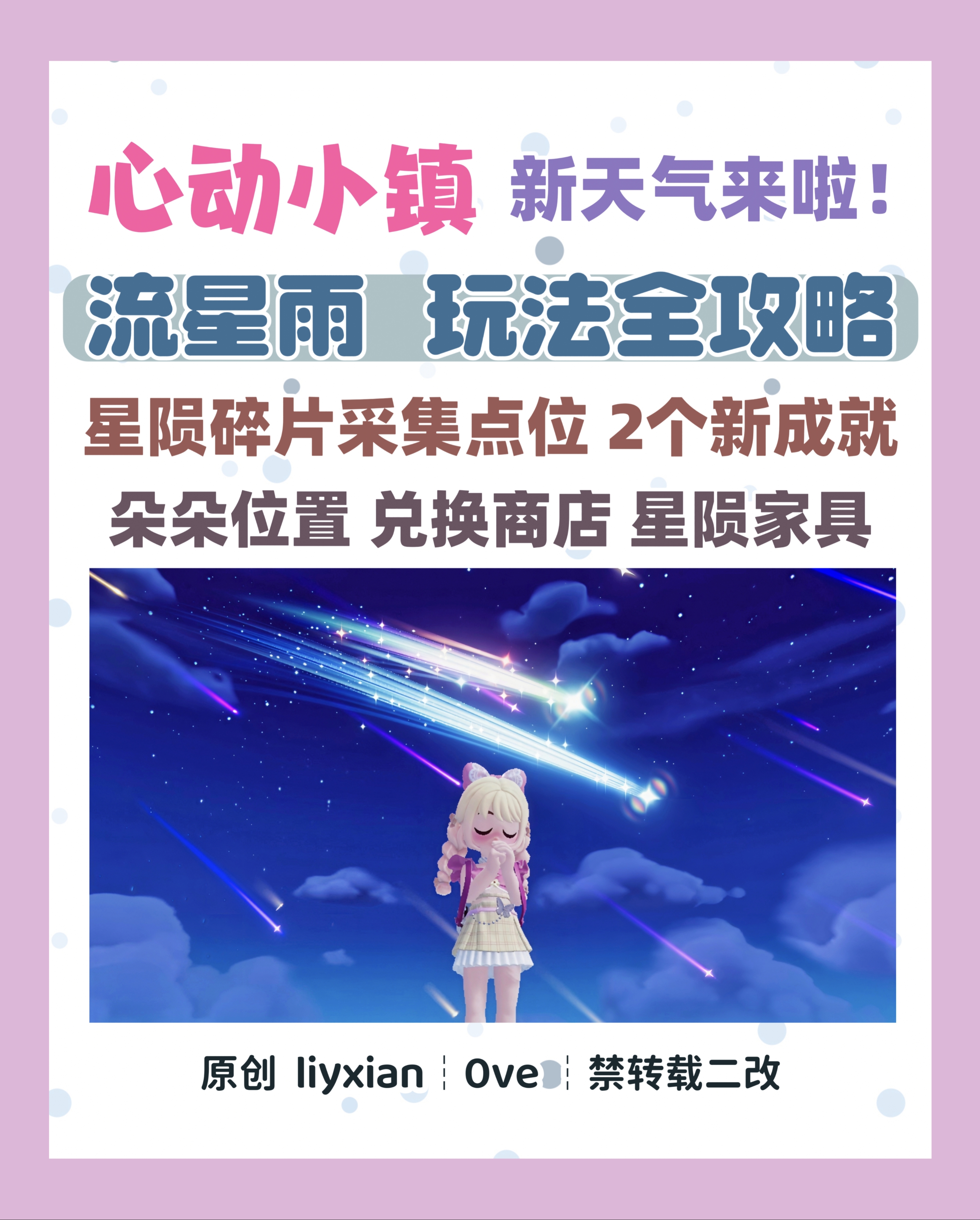 正文摘要:《心動小鎮》流星雨天氣 快速閱讀精華 🚀 核心玩法: 在流星雨天氣下,尋找並採集三種顏色的「星隕碎片」,總共9個點位。觀看流星並做出「許願」動作,有機會獲得「星靈祝福」恢復體力。💎 關鍵NPC: 尋找NPC「朵朵」(通常在花田巴士站附近),用碎片兌換限定星隕傢俱與新版許願動作。🔑 點位與刷新機制: 點位會隨時間段(如18-24點、0-6點)部分變動,需參考最新點位圖。最重要:碎片點位有6小時重置冷卻,挖過後需等待,否則到了也挖不了。🎯 新成就: 可解鎖「流星下的友誼」與「星塵收藏家」兩個活動限定新成就。 本文章目錄.article-toc { border: 1px solid #ddd; padding: 15px; background: #f9f9f9; border-radius: 6px; margin: 20px 0; width: 95%;}.toc-title { /* --- 以下是合併進來的 H2 樣式 --- */ font-size: 1.25em; /* 125% */ border-left: 5px solid #2A98DA; border-radius: 2px; padding: 5px 0px 5px 10px; font-weight: bold; margin: 0 0 15px 0; /* 調整了 margin,只留下方 15px */ color: #333; line-height: 1.5; background-color: #f8f8f8; /* --- 樣式合併結束 --- */}.toc-list { list-style: none; padding-left: 0;}.toc-list li { margin: 8px 0;}.toc-list a { color: #2A98DA; text-decoration: none;}.toc-list a:hover { text-decoration: underline;}.back-to-top { display: block; margin-top: 10px; font-size: 0.9em; color: #666;} 一、流星雨天氣解密:何時出現?能做什麼?document.currentScript.previousElementSibling.href = location.href.split('#')[0] + '#weather'; 二、核心目標:星隕碎片採集全攻略document.currentScript.previousElementSibling.href = location.href.split('#')[0] + '#collect'; 三、獎勵兌換處:NPC「朵朵」位置與限定商店document.currentScript.previousElementSibling.href = location.href.split('#')[0] + '#npc'; 四、流星雨限定!新成就解鎖指南document.currentScript.previousElementSibling.href = location.href.split('#')[0] + '#achievement'; 五、流星雨常見問題Q&Adocument.currentScript.previousElementSibling.href = location.href.split('#')[0] + '#faq'; 夜幕降臨,天空劃過一道道璀璨的光芒——《心動小鎮》最夢幻的特殊天氣「流星雨」來啦!你是否因為不知道流星雨何時出現而苦惱?或是滿世界亂跑也找不到稀有的「星隕碎片」?別慌!這份終極指南將為你整合所有關於流星雨的情報,包含最新的星隕碎片點位圖、詳細的刷新機制解釋,以及限定獎勵的兌換地點,讓你高效收集,不錯過任何一份來自星星的禮物! 一、流星雨天氣解密:何時出現?能做什麼? 首先,大家最關心的問題:「流星雨到底什麼時候來?」 根據我們和資深玩家「0ve」的長期觀察,流星雨和彩虹天一樣,屬於 **隨機特殊天氣**,沒有固定的時間表(例如並非只在週末出現)。目前天氣預報也無法顯示流星雨圖標,所以大家需要多留意官方公告和玩家社羣的即時分享。 以下廣告滑動後還有帖子內容var custom_call_MIR = function (params) {if ( params === null || params.hasAd === false ) {var divRowSide;for (let index = 0; index < ONEADs.length; index++) {if (ONEADs[index].pub.player_mode === "mobile-inread") {divRowSide = ONEADs[index].pub.slotobj;}}var ins = document.createElement('ins');ins.className = 'clickforceads';ins.setAttribute('style', 'display:inline-block;');ins.setAttribute('data-ad-zone', '18264');divRowSide.appendChild(ins);var js = document.createElement('script');js.async = true;js.type = 'text/javascript';js.setAttribute('src', '//cdn.holmesmind.com/js/init.js');js.onload = function(){console.log('[ONEAD MIR] ClickForce Loaded');};divRowSide.appendChild(js);}};var _ONEAD = {};_ONEAD.pub = {};_ONEAD.pub.slotobj = document.getElementById("oneadMIRDFPTag");_ONEAD.pub.slots = ["div-onead-ad"];_ONEAD.pub.uid = "1000509";_ONEAD.pub.external_url = "https://onead.onevision.com.tw/";_ONEAD.pub.scopes = ["spotbuy", "speed"];_ONEAD.pub.player_mode_div = "div-onead-ad";_ONEAD.pub.player_mode = "mobile-inread";_ONEAD.pub.queryAdCallback = custom_call_MIR;var ONEAD_pubs = ONEAD_pubs || [];ONEAD_pubs.push(_ONEAD);var truvidScript = document.createElement('script'); truvidScript.async = true; truvidScript.setAttribute('data-cfasync','false'); truvidScript.type = 'text/javascript'; truvidScript.src = '//stg.truvidplayer.com/index.php?sub_user_id=597&widget_id=3309&playlist_id=2381&m=a&cb=' + (Math.random() * 10000000000000000); var currentScript = document.currentScript || document.scripts[document.scripts.length - 1]; currentScript.parentNode.insertBefore(truvidScript, currentScript.nextSibling); 五、流星雨常見問題Q&A Q:流星雨天氣裡,會掉彩虹羽毛或出現彩虹魚嗎? A:不會。根據玩家「0ve」的測試,流星雨和彩虹天是兩種完全獨立的特殊天氣。它們各自有專屬的NPC(朵朵的商店內容也不同)、專屬的採集物和專屬的特殊生物。 Q:我對著流星許願了,但什麼也沒發生? A:你需要對著夜空中 **特別亮、有拖尾特效** 的那種流星許願,纔有機率觸發「星靈祝福」並恢復體力。普通的暗流星是沒有效果的。 Q:為什麼我按照0-6點的點位圖去找,有些點還是沒有碎片? A:請再次檢查你是否在6小時內挖過同一個位置。例如,你在22:00挖了A點,那麼在凌晨4:00之前,A點都不會為你重置。這就是6小時重置機制。 Q:溫泉山附近有星隕碎片嗎?找了好久都沒找到。 A:根據目前所有玩家分享的點位圖來看,星隕碎片主要刷新在平原、森林和海灘區域,**溫泉山區域暫時沒有發現固定的刷新點**。建議優先探索已標記的區域,效率更高。 參考資料: - 標題:【心動小鎮】流星雨天氣玩法攻略 點位更新 - 網址:https://www.taptap.cn/moment/704444363689692246 - 作者:0ve |