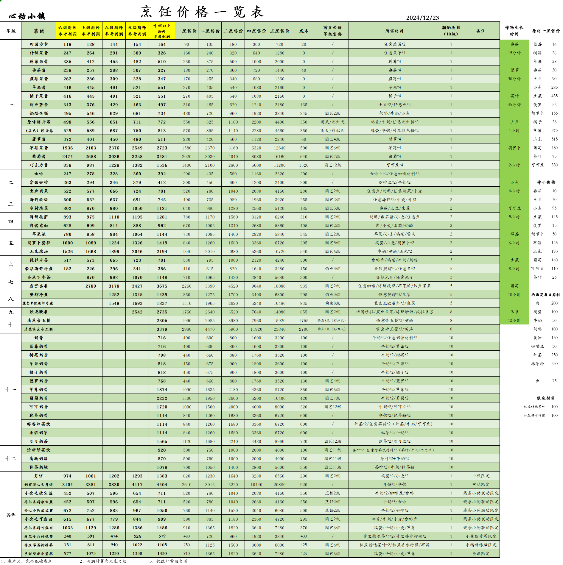 正文摘要:《心動小鎮》廚師致富 快速閱讀精華 🥇 賺錢單品 Top 3: 1. 番茄醬:日利潤達 31.4 萬(需全地排滿)。2. 菠蘿醬:日利潤達 24.5 萬(需全地排滿)。3. 清蒸黃金帝王蟹:利潤 16.9 萬(需海釣 9 級)。 🛤️ 職業發展推薦: 前期:烹飪 7 級 + 園藝 7 級(解鎖 30 個種植箱)。進階:烹飪 10 級 + 釣魚 8 級(主打海鮮大餐)。 👨🍳 肝帝路線: 一邊種番茄,一邊採蘋果/橘子。將所有資源轉化成果醬,金幣滾雪球。 本文章目錄.article-toc { border: 1px solid #ddd; padding: 15px; background: #f9f9f9; border-radius: 6px; margin: 20px 0; width: 95%;}.toc-title { /* --- 以下是合併進來的 H2 樣式 --- */ font-size: 1.25em; /* 125% */ border-left: 5px solid #2A98DA; border-radius: 2px; padding: 5px 0px 5px 10px; font-weight: bold; margin: 0 0 15px 0; /* 調整了 margin,只留下方 15px */ color: #333; line-height: 1.5; background-color: #f8f8f8; /* --- 樣式合併結束 --- */}.toc-list { list-style: none; padding-left: 0;}.toc-list li { margin: 8px 0;}.toc-list a { color: #2A98DA; text-decoration: none;}.toc-list a:hover { text-decoration: underline;}.back-to-top { display: block; margin-top: 10px; font-size: 0.9em; color: #666;}料理日利潤排行榜document.currentScript.previousElementSibling.href = location.href.split('#')[0] + '#ranking';戰略作物:番茄與菠蘿document.currentScript.previousElementSibling.href = location.href.split('#')[0] + '#permanent';高端海鮮:黃金帝王蟹document.currentScript.previousElementSibling.href = location.href.split('#')[0] + '#high_end';三大玩家成長路線document.currentScript.previousElementSibling.href = location.href.split('#')[0] + '#player_type';常見問題Q&Adocument.currentScript.previousElementSibling.href = location.href.split('#')[0] + '#faq'; 在《心動小鎮》的繁華生活中,廚師職業無疑是財富累積的最強引擎。但想要從每日收菜的「家庭主夫/主婦」進化成「小鎮首富」,你需要更精確的數據支撐。本攻略由資深大廚團隊實測製作,基於 10 級烹飪與 10 級園藝的極極限數據,為大家揭祕日入百萬的真實邏輯! 終極利潤表:單日產能與純利潤數據大公開 我們以「一星」品質價格為基準,計算出 24 小時全速運轉下的最高獲利: 番茄醬:單份利潤 327,日利潤可達 31.4 萬。 菠蘿醬:單份利潤 511,日利潤可達 24.5 萬。 草莓果醬:單份利潤 2723,日利潤約 10.9 萬(受成熟時間限制)。 玉米濃湯:單份利潤 2194,日利潤約 8.8 萬。 戰略作物:為什麼番茄與菠蘿是你的唯一? 💡 專家觀點:雖然草莓果醬單價極高,但因為種子成本貴且生長時間長,在「日產量」上完全輸給了番茄與菠蘿。 番茄醬路徑: 適合勤奮的發展家。番茄生長僅需 15 分鐘,能讓你保持極高的勞動頻率,並換取巨額金幣。 菠蘿醬路徑: 則是效率與收益的平衡點,適合每半小時能上線操作一次的玩家。 高端海鮮:清蒸黃金帝王蟹的獲利門檻 如果你更喜歡海釣,「清蒸黃金帝王蟹」是你的終極目標。 這道菜需要 釣魚 9 級 才能在海釣中獲取原料。雖然日利潤鋼彈 16.9 萬,但由於依賴海釣機率,更適合作為資深玩家的「額外獎勵」,而非新手的穩定飯票。 人羣畫像:超級肝帝、中等休閒與完全休閒 超級肝帝:種番茄、採果實 地裡種滿番茄,空閒時間去地圖上採摘蘋果。將所有體力都壓榨成番茄醬與蘋果醬。只要你夠肝,日入百萬真的不是夢! 中等休閒:葡萄醬與大月餅 適合不想被遊戲綁架的玩家。地裡種植葡萄(生長慢、單利高),搭配製作奶黃流心大月餅或下午茶。這類食譜雖然材料複雜,但能提供極佳的成就感。 完全休閒:佛系葡萄醬 地裡只種葡萄,產出全做葡萄醬。這是目前最省心的「致富懶人包」。 👉 GM後台版 遊戲 推薦 ⬇️⬇️⬇️ 快速玩各種二次元動漫手遊app 《心動小鎮》烹飪賺錢 常見問題 Q&A Q:廚師前期該怎麼發展最好? A:我們首推 7 級烹飪 + 7 級園藝。這能讓你解鎖 30 個種植箱,保證基礎材料供應不中斷。 Q:為什麼不推薦 12 級解鎖的高級菜餚? A:12 級菜餚(如某些精緻大餐)普遍存在「翻鍋次數過多」的問題。在批量生產時,翻鍋操作會極大地拖慢效率,導致單位時間內的收益甚至低於無腦刷番茄醬。 Q:烹飪等級對售價有加成嗎? A:有的!7 級烹飪的平均售價倍率約為 1.5545。等級越高,產出高星級料理的機率越高,利潤也會進階提升。 以下廣告滑動後還有帖子內容var custom_call_MIR = function (params) {if ( params === null || params.hasAd === false ) {var divRowSide;for (let index = 0; index < ONEADs.length; index++) {if (ONEADs[index].pub.player_mode === "mobile-inread") {divRowSide = ONEADs[index].pub.slotobj;}}var ins = document.createElement('ins');ins.className = 'clickforceads';ins.setAttribute('style', 'display:inline-block;');ins.setAttribute('data-ad-zone', '18264');divRowSide.appendChild(ins);var js = document.createElement('script');js.async = true;js.type = 'text/javascript';js.setAttribute('src', '//cdn.holmesmind.com/js/init.js');js.onload = function(){console.log('[ONEAD MIR] ClickForce Loaded');};divRowSide.appendChild(js);}};var _ONEAD = {};_ONEAD.pub = {};_ONEAD.pub.slotobj = document.getElementById("oneadMIRDFPTag");_ONEAD.pub.slots = ["div-onead-ad"];_ONEAD.pub.uid = "1000509";_ONEAD.pub.external_url = "https://onead.onevision.com.tw/";_ONEAD.pub.scopes = ["spotbuy", "speed"];_ONEAD.pub.player_mode_div = "div-onead-ad";_ONEAD.pub.player_mode = "mobile-inread";_ONEAD.pub.queryAdCallback = custom_call_MIR;var ONEAD_pubs = ONEAD_pubs || [];ONEAD_pubs.push(_ONEAD);var truvidScript = document.createElement('script'); truvidScript.async = true; truvidScript.setAttribute('data-cfasync','false'); truvidScript.type =