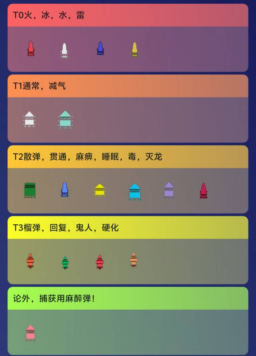 正文摘要:《魔物獵人:荒野》巨戟龍版輕弩彈種強度 快速閱讀精華 🚀 T0 頂尖輸出: 火、雷、冰、水四大屬性彈 優勢:巨戟4套裝加持、龍彈回能優化、減氣彈輔助回能、輸出與容錯率皆最高。💪 T1 高效穩定: 通常彈 優勢:速射倍率大幅提升 40%、無需調和、輸出穩定、適用性廣。🔑 T1 控場輔助: 減氣彈 優勢:所有機械弩皆搭載、回能快速、可擊暈魔物、輔助屬性彈回能。💡 其他彈種: 散彈、貫通彈:強度次於通常彈,但仍有特定應用。 麻痺、睡眠彈:強效控場,物理/屬性機械弩皆可搭載,策略性高。 毒彈:具備回能功能,但效果與泛用性不如減氣彈。 滅龍彈:特定場景下爆發力驚人,但受限於載彈量,非泛用選擇。 其餘彈種:實戰效益普遍較低。 本文章目錄.article-toc { border: 1px solid #ddd; padding: 15px; background: #f9f9f9; border-radius: 6px; margin: 20px 0; width: 95%;}.toc-title { /* --- 以下是合併進來的 H2 樣式 --- */ font-size: 1.25em; /* 125% */ border-left: 5px solid #2A98DA; border-radius: 2px; padding: 5px 0px 5px 10px; font-weight: bold; margin: 0 0 15px 0; /* 調整了 margin,只留下方 15px */ color: #333; line-height: 1.5; background-color: #f8f8f8; /* --- 樣式合併結束 --- */}.toc-list { list-style: none; padding-left: 0;}.toc-list li { margin: 8px 0;}.toc-list a { color: #2A98DA; text-decoration: none;}.toc-list a:hover { text-decoration: underline;}.back-to-top { display: block; margin-top: 10px; font-size: 0.9em; color: #666;} 前言:巨戟龍版本輕弩彈種整理document.currentScript.previousElementSibling.href = location.href.split('#')[0] + '#intro'; 巨戟龍版本輕弩彈種強度總覽document.currentScript.previousElementSibling.href = location.href.split('#')[0] + '#overall_ranking'; T0 頂尖輸出:四大屬性彈的崛起document.currentScript.previousElementSibling.href = location.href.split('#')[0] + '#t0_elemental'; T1 高效穩定:通常彈的全面進化document.currentScript.previousElementSibling.href = location.href.split('#')[0] + '#t1_normal'; T1 控場輔助:減氣彈的戰術價值document.currentScript.previousElementSibling.href = location.href.split('#')[0] + '#t1_exhaust'; 其他彈種評析:散彈、貫通、控制與特殊彈document.currentScript.previousElementSibling.href = location.href.split('#')[0] + '#otder_ammo'; 實戰應用與專家心得分享document.currentScript.previousElementSibling.href = location.href.split('#')[0] + '#combat_tips'; 《魔物獵人:荒野》巨戟龍版輕弩彈種_常見問題Q&Adocument.currentScript.previousElementSibling.href = location.href.split('#')[0] + '#faq'; 前言:巨戟龍版本輕弩彈種整理 各位《魔物獵人:荒野》的獵人大家好!隨著巨戟龍版本[/b的推出,輕弩的彈種生態也產生了顯著變化。作為一名資深遊戲攻略專家,我們深知選擇正確的彈種對於狩獵效率的影響。本篇攻略旨在為大家深入整理在巨戟龍版本[/b下,輕弩各彈種的實際強度與應用場景,幫助您快速掌握當前版本的最優解,輕鬆應對各種魔物挑戰。我們將從專業角度,結合實測數據,為您揭示哪些彈種值得優先使用,以及它們背後的機制原理。 巨戟龍版本輕弩彈種強度總覽 經過我們團隊的全面測試與分析,巨戟龍版本[/b的輕弩彈種強度排名已趨於明確。整體來看,部分彈種在本次更新中獲得了大幅強化,使其在輸出能力、輔助效果或戰術靈活性上表現突出。以下是我們為您整理的各彈種強度分級與核心亮點: T0 頂尖輸出:四大屬性彈的崛起 火、雷、冰、水[/b這四大屬性彈在巨戟龍版本[/b中可謂是眾望所歸的王者。它們不僅直接受益於巨戟龍套裝的四件套效果(巨戟4福利)[/b,自身傷害倍率也得到了顯著增強。更令人振奮的是,現在屬性彈在附著龍擊彈[/b後能有效回能,極大地解決了以往屬性彈回能效率慢的問題。此外,所有屬性輕弩如今都搭載了減氣彈回能機制,進一步提升了續戰力。 🚀 輸出最高:[/b 在能充分發揮屬性弱點的情況下,提供無與倫比的傷害輸出。🛡️ 容錯率高:[/b 巨戟4的加持使得操作空間更大,即使偶有失誤也能迅速調整。🔋 回能優化:[/b 龍彈與減氣彈的雙重回能手段,確保輸出不間斷。 對於追求極致傷害和穩定表現的獵人來說,屬性彈是當之無愧的第一選擇。 以下廣告滑動後還有帖子內容var custom_call_MIR = function (params) {if ( params === null || params.hasAd === false ) {var divRowSide;for (let index = 0; index < ONEADs.length; index++) {if (ONEADs[index].pub.player_mode === "mobile-inread") {divRowSide = ONEADs[index].pub.slotobj;}}var ins = document.createElement('ins');ins.className = 'clickforceads';ins.setAttribute('style', 'display:inline-block;');ins.setAttribute('data-ad-zone', '18264');divRowSide.appendChild(ins);var js = document.createElement('script');js.async = true;js.type = 'text/javascript';js.setAttribute('src', '//cdn.holmesmind.com/js/init.js');js.onload = function(){console.log('[ONEAD MIR] ClickForce Loaded');};divRowSide.appendChild(js);}};var _ONEAD = {};_ONEAD.pub = {};_ONEAD.pub.slotobj = document.getElementById("oneadMIRDFPTag");_ONEAD.pub.slots = ["div-onead-ad"];_ONEAD.pub.uid = "1000509";_ONEAD.pub.external_url = "https://onead.onevision.com.tw/";_ONEAD.pub.scopes = ["spotbuy", "speed"];_ONEAD.pub.player_mode_div = "div-onead-ad";_ONEAD.pub.player_mode = "mobile-inread";_ONEAD.pub.queryAdCallback = custom_call_MIR;var ONEAD_pubs = ONEAD_pubs || [];ONEAD_pubs.push(_ONEAD);var truvidScript = document.createElement('script'); truvidScript.async = true; truvidScript.setAttribute('data-cfasync','false'); truvidScript.type = 'text/javascript'; truvidScript.src = '//stg.truvidplayer.com/index.php?sub_user_id=597&widget_id=3309&playlist_id=2381&m=a&cb=' 
