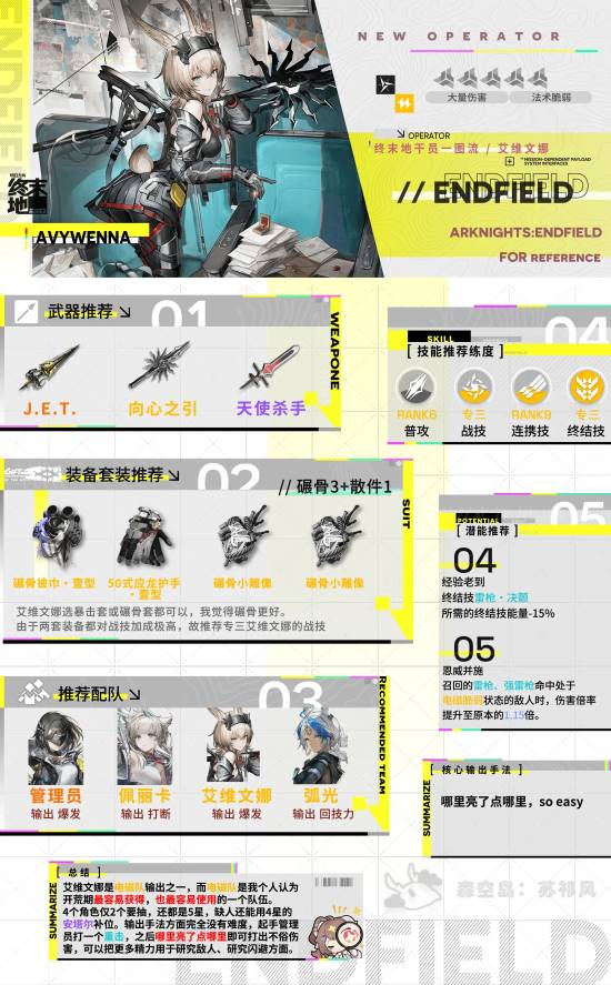 正文摘要:《明日方舟:終末地》八位核心角色培養 快速閱讀精華 🚀 快速掌握: 一圖流攻略,秒懂八位核心角色培養重點。💪 角色陣容: 艾維文娜 伊馮 萊萬汀 阿列什 賽希 佩麗卡 安塔爾 秋慄🔑 戰力飆升: 有效規劃資源,初期就能組合強力隊伍! 本文章目錄.article-toc { border: 1px solid #ddd; padding: 15px; background: #f9f9f9; border-radius: 6px; margin: 20px 0; width: 95%;}.toc-title { /* --- 以下是合併進來的 H2 樣式 --- */ font-size: 1.25em; /* 125% */ border-left: 5px solid #2A98DA; border-radius: 2px; padding: 5px 0px 5px 10px; font-weight: bold; margin: 0 0 15px 0; /* 調整了 margin,只留下方 15px */ color: #333; line-height: 1.5; background-color: #f8f8f8; /* --- 樣式合併結束 --- */}.toc-list { list-style: none; padding-left: 0;}.toc-list li { margin: 8px 0;}.toc-list a { color: #2A98DA; text-decoration: none;}.toc-list a:hover { text-decoration: underline;}.back-to-top { display: block; margin-top: 10px; font-size: 0.9em; color: #666;} 艾維文娜 角色一圖流:輸出核心的培養之道document.currentScript.previousElementSibling.href = location.href.split('#')[0] + '#艾維文娜'; 伊馮 角色一圖流:堅實盾牌的養成攻略document.currentScript.previousElementSibling.href = location.href.split('#')[0] + '#伊馮'; 萊萬汀 角色一圖流:靈活輸出的配置指南document.currentScript.previousElementSibling.href = location.href.split('#')[0] + '#萊萬汀'; 阿列什 角色一圖流:策略型輔助的強化方案document.currentScript.previousElementSibling.href = location.href.split('#')[0] + '#阿列什'; 賽希 角色一圖流:範圍傷害專家的養成祕訣document.currentScript.previousElementSibling.href = location.href.split('#')[0] + '#賽希'; 佩麗卡 角色一圖流:治療與支援的強化途徑document.currentScript.previousElementSibling.href = location.href.split('#')[0] + '#佩麗卡'; 安塔爾 角色一圖流:控場與爆發的平衡藝術document.currentScript.previousElementSibling.href = location.href.split('#')[0] + '#安塔爾'; 秋慄 角色一圖流:特殊定位角色的培養策略document.currentScript.previousElementSibling.href = location.href.split('#')[0] + '#秋慄'; 《明日方舟:終末地》角色培養 常見問題Q&Adocument.currentScript.previousElementSibling.href = location.href.split('#')[0] + '#faq'; 《明日方舟:終末地》的公測即將來臨,相信許多指揮官都非常期待能快速掌握新角色的培養祕訣。我們深知大家對於如何在遊戲初期有效提升角色戰力、組合強大隊伍的需求。為此,本攻略團隊特別為您整理了八位核心角色的「一圖流」培養指南,幫助您一目瞭然地掌握每位角色的關鍵資訊,迅速打造您的終末地菁英小隊! 艾維文娜 角色一圖流:輸出核心的培養之道 我們發現,艾維文娜作為隊伍中的重要輸出角色,其培養方向主要圍繞著最大化傷害輸出。這張一圖流攻略清晰地標示了她的推薦裝備、技能加點順序與隊伍搭配建議,讓您可以快速掌握這位戰場上的火力核心。 以下廣告滑動後還有帖子內容var custom_call_MIR = function (params) {if ( params === null || params.hasAd === false ) {var divRowSide;for (let index = 0; index < ONEADs.length; index++) {if (ONEADs[index].pub.player_mode === "mobile-inread") {divRowSide = ONEADs[index].pub.slotobj;}}var ins = document.createElement('ins');ins.className = 'clickforceads';ins.setAttribute('style', 'display:inline-block;');ins.setAttribute('data-ad-zone', '18264');divRowSide.appendChild(ins);var js = document.createElement('script');js.async = true;js.type = 'text/javascript';js.setAttribute('src', '//cdn.holmesmind.com/js/init.js');js.onload = function(){console.log('[ONEAD MIR] ClickForce Loaded');};divRowSide.appendChild(js);}};var _ONEAD = {};_ONEAD.pub = {};_ONEAD.pub.slotobj = document.getElementById("oneadMIRDFPTag");_ONEAD.pub.slots = ["div-onead-ad"];_ONEAD.pub.uid = "1000509";_ONEAD.pub.external_url = "https://onead.onevision.com.tw/";_ONEAD.pub.scopes = ["spotbuy", "speed"];_ONEAD.pub.player_mode_div = "div-onead-ad";_ONEAD.pub.player_mode = "mobile-inread";_ONEAD.pub.queryAdCallback = custom_call_MIR;var ONEAD_pubs = ONEAD_pubs || [];ONEAD_pubs.push(_ONEAD);var truvidScript = document.createElement('script'); truvidScript.async = true; truvidScript.setAttribute('data-cfasync','false'); truvidScript.type = 'text/javascript'; truvidScript.src = '//stg.truvidplayer.com/index.php?sub_user_id=597&widget_id=3309&playlist_id=2381&m=a&cb=' + (Math.random() * 10000000000000000); var currentScript = document.currentScript || document.scripts[document.scripts.length - 1]; currentScript.parentNode.insertBefore(truvidScript, currentScript.nextSibling); 《明日方舟:終末地》角色培養 常見問題Q&A Q:剛入坑新手,應該優先培養哪位角色? A:對於新手玩家,我們建議優先培養一名穩定的主輸出角色(如艾維文娜)和一名可靠的治療或防禦角色(如佩麗卡或伊馮),確保隊伍有基本的生存與輸出能力。 Q:一圖流攻略上的推薦裝備一定要照著穿嗎? A:一圖流攻略提供的推薦裝備是經過實測優化的建議,能幫助您最大化角色效能。初期資源有限時可以選擇替代品,但長期目標仍應向推薦裝備靠攏。 Q:角色技能點該怎麼分配才效益最高? A:通常我們會建議優先升級核心輸出技能或關鍵輔助技能。例如,輸出型角色優先提升主要攻擊技能,輔助型角色則優先提升治療或增益技能。具體可參考角色一圖流中的技能優先級標示。 Q:不同屬性(如冰、火)的隊伍應該怎麼組合? A:隊伍組合應考量角色的屬性協同效應與戰場需求。例如,若關卡敵人多為火屬性,則搭配冰屬性輸出角色會更有效率。一圖流攻略中的隊伍搭配建議可供參考,您也可以根據自身角色池進行