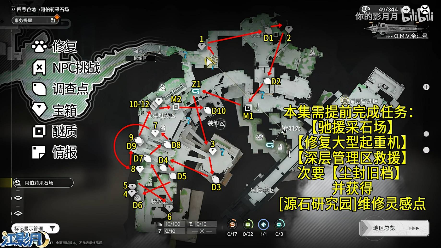 正文摘要:.video-container { position: relative; padding-bottom: 56.25%; padding-top: 30px; height: 0; overflow: hidden;}.video-container iframe,.video-container object,.video-container embed { position: absolute; top: 0; left: 0; width: 100%; height: 100%;}外連至此bilibili影片連結 👉 GM後台版 遊戲 推薦 ⬇️⬇️⬇️ 快速玩各種二次元動漫手遊app 哈囉各位博士!今天這篇攻略要帶大家徹底搜刮《明日方舟:終末地》四號谷地的「阿伯莉採石場」!這個區域的寶箱和乙太質(稱醚質)藏得有點分散,自己找起來可能會漏掉幾個。沒關係,我們直接參考由「你的影月月」大神製作的全收集影片與一圖流地圖,讓你輕鬆搞定所有收集要素,資源拿好拿滿!本篇攻略會按照區域分段,並附上對應的影片章節連結,讓你邊看邊找超簡單! 以下廣告滑動後還有帖子內容var custom_call_MIR = function (params) {if ( params === null || params.hasAd === false ) {var divRowSide;for (let index = 0; index < ONEADs.length; index++) {if (ONEADs[index].pub.player_mode === "mobile-inread") {divRowSide = ONEADs[index].pub.slotobj;}}var ins = document.createElement('ins');ins.className = 'clickforceads';ins.setAttribute('style', 'display:inline-block;');ins.setAttribute('data-ad-zone', '18264');divRowSide.appendChild(ins);var js = document.createElement('script');js.async = true;js.type = 'text/javascript';js.setAttribute('src', '//cdn.holmesmind.com/js/init.js');js.onload = function(){console.log('[ONEAD MIR] ClickForce Loaded');};divRowSide.appendChild(js);}};var _ONEAD = {};_ONEAD.pub = {};_ONEAD.pub.slotobj = document.getElementById("oneadMIRDFPTag");_ONEAD.pub.slots = ["div-onead-ad"];_ONEAD.pub.uid = "1000509";_ONEAD.pub.external_url = "https://onead.onevision.com.tw/";_ONEAD.pub.scopes = ["spotbuy", "speed"];_ONEAD.pub.player_mode_div = "div-onead-ad";_ONEAD.pub.player_mode = "mobile-inread";_ONEAD.pub.queryAdCallback = custom_call_MIR;var ONEAD_pubs = ONEAD_pubs || [];ONEAD_pubs.push(_ONEAD);var truvidScript = document.createElement('script'); truvidScript.async = true; truvidScript.setAttribute('data-cfasync','false'); truvidScript.type = 'text/javascript'; truvidScript.src = '//stg.truvidplayer.com/index.php?sub_user_id=597&widget_id=3309&playlist_id=2381&m=a&cb=' + (Math.random() * 10000000000000000); var currentScript = document.currentScript || document.scripts[document.scripts.length - 1]; currentScript.parentNode.insertBefore(truvidScript, currentScript.nextSibling); 廢料堆放區:寶箱1-12 & 乙太質1-2 首先來到採石場的「廢料堆放區」,這個區域總共有12個寶箱(編號1至12)和2個乙太質(編號1至2)。建議可以搭配上方的一圖流地圖對照位置,會更清楚每個收集品的確切地點。 如果你想要更直觀地看實際跑圖路線,可以點這裡觀看影片的P1章節:點此觀看廢料堆放區全收集實跑影片 存料處:寶箱13-19 & 乙太質3-6 & 調查點11-20 接下來前進到「存料處」。這裡的收集品包括7個寶箱(編號13至19)、4個乙太質(編號3至6),以及從第11到第20號的調查點。記得把調查點也順便摸一摸,纔不會漏掉任何資訊或獎勵。 這個區域的詳細收集過程,可以參考影片的P2章節:點此觀看存料處全收集實跑影片 深層管理區:寶箱20-27 & 乙太質7-11 第三個區域是「深層管理區」,這裡有8個寶箱(編號20至27)和5個乙太質(編號7至11)。地圖結構可能稍微複雜一點,跟著影片走最保險。 需要探索這個區域的話,請看影片的P3章節:點此觀看深層管理區全收集實跑影片 採石作業區:寶箱28-32 & 乙太質12-17 最後來到「採石作業區」,這是採石場收集的最後一站。總共有5個寶箱(編號28至32)和6個乙太質(編號12至17)。全部拿完,阿伯莉採石場就宣告100%完成啦! 最終階段的收集路線,請查看影片的P4章節:點此觀看採石作業區全收集實跑影片 |