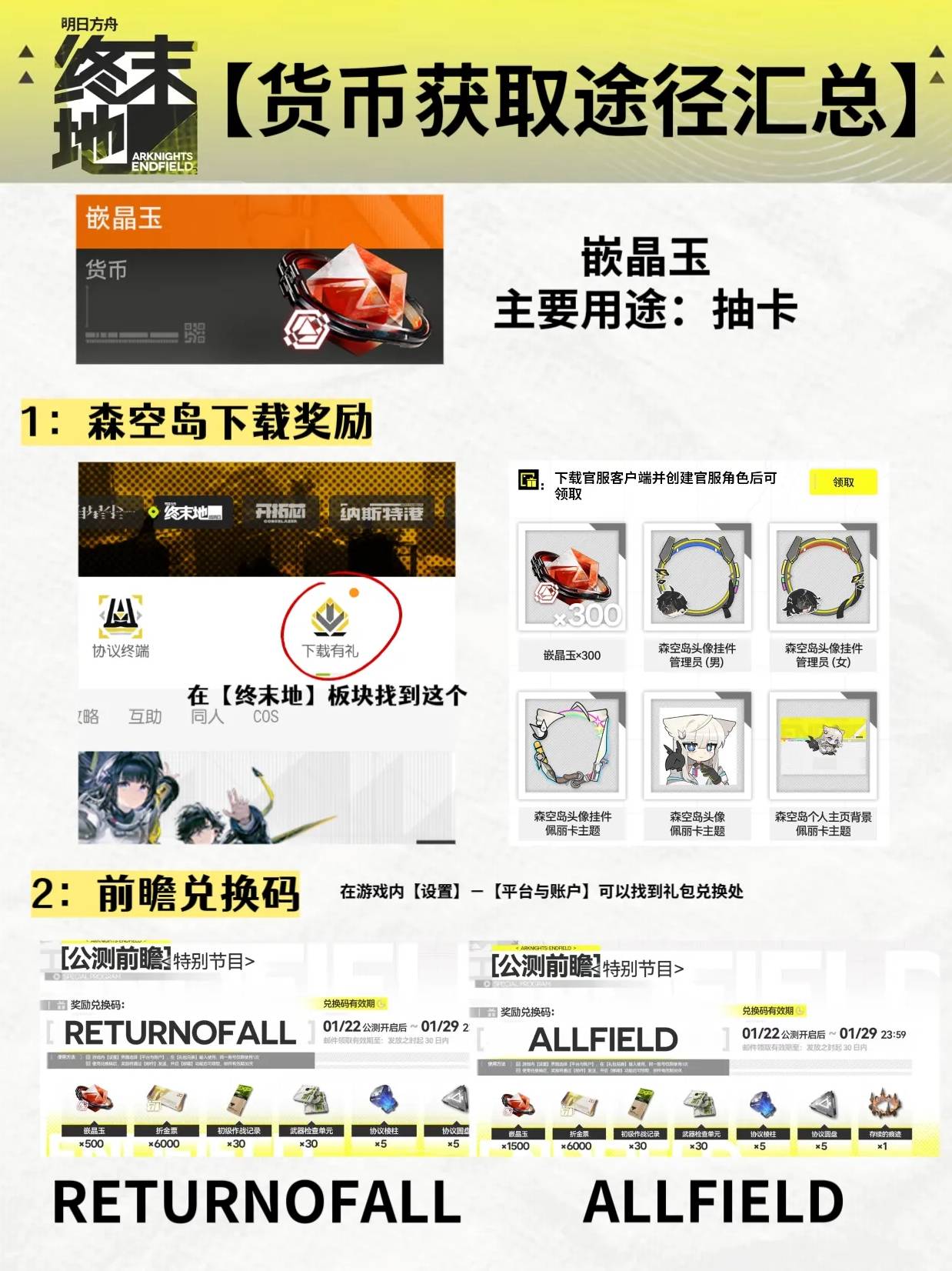 正文摘要:《明日方舟終末地》貨幣與抽卡資源 快速閱讀精華 🚀 核心煩惱解決: 快速掌握遊戲內所有重要貨幣用途與取得管道,再也不用擔心資源不夠用!💰 抽卡資源整理: 徹底瞭解珍貴抽卡道具的每日、每週獲取方式,最大化你的角色池擴充效率。💪 效率最大化: 我們為您整理了各種資源的推薦獲取順序與優先級,助您輕鬆規劃,贏在起跑點。🔑 直觀圖解教學: 本攻略提供詳細圖示說明,讓您一目瞭然所有貨幣資訊,清晰易懂! 本文章目錄.article-toc { border: 1px solid #ddd; padding: 15px; background: #f9f9f9; border-radius: 6px; margin: 20px 0; width: 95%;}.toc-title { /* --- 以下是合併進來的 H2 樣式 --- */ font-size: 1.25em; /* 125% */ border-left: 5px solid #2A98DA; border-radius: 2px; padding: 5px 0px 5px 10px; font-weight: bold; margin: 0 0 15px 0; /* 調整了 margin,只留下方 15px */ color: #333; line-height: 1.5; background-color: #f8f8f8; /* --- 樣式合併結束 --- */}.toc-list { list-style: none; padding-left: 0;}.toc-list li { margin: 8px 0;}.toc-list a { color: #2A98DA; text-decoration: none;}.toc-list a:hover { text-decoration: underline;}.back-to-top { display: block; margin-top: 10px; font-size: 0.9em; color: #666;} 前言:深入瞭解《明日方舟終末地》的經濟體系document.currentScript.previousElementSibling.href = location.href.split('#')[0] + '#intro'; 《明日方舟終末地》主要貨幣與抽卡資源一覽document.currentScript.previousElementSibling.href = location.href.split('#')[0] + '#currencies'; - 各資源詳細獲取管道document.currentScript.previousElementSibling.href = location.href.split('#')[0] + '#acquisition'; 資源戰略規劃與建議document.currentScript.previousElementSibling.href = location.href.split('#')[0] + '#strategic_planning'; 《明日方舟終末地》重點回顧document.currentScript.previousElementSibling.href = location.href.split('#')[0] + '#conclusion'; 《明日方舟終末地》貨幣資源常見問題Q&Adocument.currentScript.previousElementSibling.href = location.href.split('#')[0] + '#faq'; 前言:深入瞭解《明日方舟終末地》的經濟體系 《明日方舟終末地》作為一款策略養成遊戲,其遊戲內貨幣與資源系統的理解程度,將直接影響玩家的發展速度與遊戲體驗。許多指揮官們初次接觸時,可能會對琳瑯滿目的貨幣種類、它們的具體用途以及最佳的獲取管道感到困惑。別擔心!本攻略正是為瞭解決您的這些煩惱而生。我們將帶您深入探索終末地的經濟核心,幫助您高效累積資源,無論是強化幹員、建設基地,還是抽取心儀的角色,都能得心應手! 《明日方舟終末地》主要貨幣與抽卡資源一覽 要高效地在《明日方舟終末地》中發展,首先必須對遊戲內的各類貨幣與珍稀資源有清晰的認知。這些資源不僅是您強化實力的基礎,更是解鎖進階內容的關鍵。我們為您精心整理了遊戲中所有重要的貨幣類型、它們的具體用途,以及最有效率的獲取管道。請參考以下圖文心得分享,快速掌握資源脈絡,讓您的每一分努力都能獲得最大效益! 最後,這張圖提供了關於資源管理的綜合建議,幫助您更有效地分配與運用所有資產。 各資源詳細獲取管道 根據我們團隊的實測與分析,遊戲中的各類貨幣與資源主要透過以下管道獲得: 主線任務與支線劇情: 完成劇情章節是初期獲取大量基礎資源和部分稀有貨幣的主要途徑。 每日/每週任務: 持續且穩定地提供抽卡資源、經驗材料與基礎貨幣,務必每日清空。 活動副本與限時挑戰: 這是獲取限定資源、大量抽卡道具和稀有養成材料的最佳機會,建議優先參與。 基地建設與生產: 透過提升基地設施等級,可以自動生產或加速資源獲取,是長期穩定收入的來源。 商店兌換與禮包: 善用遊戲內各類商店,用不常用資源兌換所需物資,或適度購買性價比高的禮包。 探索與隨機事件: 在地圖探索中可能遇到隨機寶箱或事件,提供額外資源獎勵。 資源戰略規劃與建議 瞭解了各項資源的用途與獲取管道後,如何進行戰略性的資源規劃將是您在《明日方舟終末地》中脫穎而出的關鍵。 💪 初期優先級: 建議優先將資源投入到核心幹員的養成(等級、技能)以及基地核心設施的升級,這將有效提升您的推圖效率與資源生產速度。🚀 抽卡規劃: 除非有特別看好的角色,否則建議囤積抽卡資源,等待有保底或UP機率的限定池再出手,效益會更高。💰 精打細算: 每週的限時商店或活動兌換商店往往有高CP值的商品,務必仔細評估後再行兌換。避免浪費資源在非必需品上。🔑 風險管理: 若遊戲中存在任何可能導致帳號風險的操作(例如使用第三方腳本),我們強烈建議您避免,以確保遊戲帳號安全與良好遊戲體驗。 《明日方舟終末地》重點回顧 1. 理解貨幣本質: 每種貨幣都有其獨特用途,明確它們的價值是高效遊玩的基礎。2. 多管道獲取: 積極參與遊戲內的各種活動與任務,確保資源來源不間斷。3. 戰略性規劃: 根據遊戲進度與自身需求,合理分配資源,最大化效益。 以下廣告滑動後還有帖子內容var custom_call_MIR = function (params) {if ( params === null || params.hasAd === false ) {var divRowSide;for (let index = 0; index < ONEADs.length; index++) {if (ONEADs[index].pub.player_mode === "mobile-inread") {divRowSide = ONEADs[index].pub.slotobj;}}var ins = document.createElement('ins');ins.className = 'clickforceads';ins.setAttribute('style', 'display:inline-block;');ins.setAttribute('data-ad-zone', '18264');divRowSide.appendChild(ins);var js = document.createElement('script');js.async = true;js.type = 'text/javascript';js.setAttribute('src
