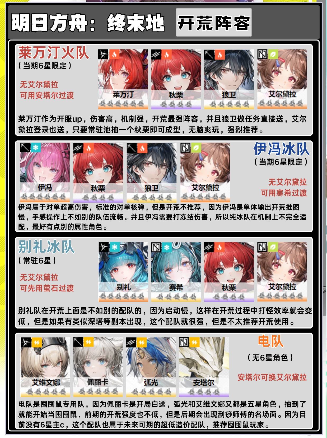正文摘要:《明日方舟:終末地》開荒陣容配隊 快速閱讀精華 🚀 核心思路: 確保隊伍生存能力,優先配置坦位與治療角色。輸出角色兼顧物理與法術,避免單一輸出被剋制。充分利用隊伍中的控制、輔助技能,提升戰鬥效率。 💪 角色選擇: 初期以通用性高、獲取容易的角色為主,不追求稀有度。根據關卡敵人屬性,適時調整輸出類型(物理/法術)。 🔑 資源分配: 開荒期資源寶貴,集中培養 3-5 位核心角色,避免平均分配。優先提升主輸出與治療角色的技能等級。 🧠 實戰技巧: 觀察敵人特性,針對性部署角色位置與技能釋放時機。多嘗試不同組合,找出最適合當前關卡的打法。 本文章目錄.article-toc { border: 1px solid #ddd; padding: 15px; background: #f9f9f9; border-radius: 6px; margin: 20px 0; width: 95%;}.toc-title { /* --- 以下是合併進來的 H2 樣式 --- */ font-size: 1.25em; /* 125% */ border-left: 5px solid #2A98DA; border-radius: 2px; padding: 5px 0px 5px 10px; font-weight: bold; margin: 0 0 15px 0; /* 調整了 margin,只留下方 15px */ color: #333; line-height: 1.5; background-color: #f8f8f8; /* --- 樣式合併結束 --- */}.toc-list { list-style: none; padding-left: 0;}.toc-list li { margin: 8px 0;}.toc-list a { color: #2A98DA; text-decoration: none;}.toc-list a:hover { text-decoration: underline;}.back-to-top { display: block; margin-top: 10px; font-size: 0.9em; color: #666;} 《明日方舟:終末地》開荒陣容核心理念document.currentScript.previousElementSibling.href = location.href.split('#')[0] + '#core_philosophy'; 推薦開荒隊伍配置與角色選擇document.currentScript.previousElementSibling.href = location.href.split('#')[0] + '#recommended_teams'; - 通用型均衡隊:穩紮穩打的萬金油組合document.currentScript.previousElementSibling.href = location.href.split('#')[0] + '#general_purpose'; - 針對性爆發隊:突破特定難關的利器document.currentScript.previousElementSibling.href = location.href.split('#')[0] + '#targeted_burst'; 角色培養與資源分配建議document.currentScript.previousElementSibling.href = location.href.split('#')[0] + '#cultivation_tips'; 《明日方舟:終末地》開荒陣容常見問題Q&Adocument.currentScript.previousElementSibling.href = location.href.split('#')[0] + '#faq'; 《明日方舟:終末地》開荒陣容核心理念 在《明日方舟:終末地》的初期開荒階段,許多玩家都會面臨資源有限、角色池不深的問題。一套合理的陣容配置,不僅能幫助我們更順利地推進主線關卡,有效利用寶貴的體力與資源,更能為後續的遊戲體驗打下堅實基礎。本攻略組深入分析了遊戲初期的挑戰,歸納出以下幾個開荒陣容的核心理念,旨在幫助各位玩家快速上手,少走彎路。 推薦開荒隊伍配置與角色選擇 瞭解了核心理念後,我們將提供幾種實用且彈性高的開荒隊伍配置範例。請注意,由於遊戲初期可獲取的角色有限,這裡提供的更多是角色「定位」上的建議,玩家可根據自己擁有的角色進行替換。 通用型均衡隊:穩紮穩打的萬金油組合 這是我們最推薦的開荒隊伍模式,以穩健的生存能力為基礎,兼顧輸出效率。 配置範例: 前鋒/坦位 (1-2位): 選擇生存能力強、能吸引仇恨的角色。他們是隊伍的盾牌。 治療/輔助 (1位): 具備穩定回復能力或提供護盾的角色,確保隊伍血線健康。 物理輸出 (1-2位): 攻擊力高,對高防禦敵人有較好的表現。 法術輸出 (1-2位): 技能傷害高,對高法抗敵人效果顯著。 控制/功能位 (0-1位): 根據關卡需求,補充控制或輔助增益的角色。 搭配原則: 確保坦位能有效吸收傷害,治療能覆蓋主要受傷角色。物理與法術輸出盡量分散,避免敵人單一抗性造成輸出瓶頸。初期可多利用系統贈送或容易獲取的通用型角色,如基礎近衛、狙擊、醫療幹員。 針對性爆發隊:突破特定難關的利器 當你遇到特定關卡,敵人擁有明顯的屬性弱點或需要快速擊殺時,可以考慮調整為針對性爆發隊。 配置範例: 核心輸出 (2-3位): 集中某種輸出類型(如全物理或全法術),搭配能提升該輸出類型的輔助。 輔助/控制 (1-2位): 提供增傷、減防或強力控制,為核心輸出創造良好環境。 生存位 (1位): 至少保留一位坦或奶,以防意外。 搭配原則: 此類隊伍風險較高,但效率也高。需要對關卡敵人有一定了解。在資源有限的開荒期,不建議作為主力隊伍,僅在特定高難關卡嘗試。 角色培養與資源分配建議 開荒階段的資源(經驗卡、材料、金幣等)極其寶貴。如何智慧地分配這些資源,直接影響你的開荒進度。 集中培養核心角色: 不要平均分配資源給所有角色。我們建議集中將資源投入到 3-5 位你最常使用、定位明確的核心角色身上。例如,你的主坦、主奶和兩位主要輸出。 優先將這些核心角色的等級提升到階段上限,並解鎖天賦/技能。 技能升級優先度: 治療角色的治療技能、坦位的防禦或減傷技能,以及主輸出角色的主要傷害技能,應優先升級。 輔助角色的增益/減益技能也十分重要,可以根據實際需求適度提升。 裝備與模組選擇: 開荒期無需追求頂級裝備。優先為核心角色搭配能提升其核心屬性(如攻擊力、生命值、防禦力)的基礎裝備。 某些角色可能會有專屬模組或套裝效果,但初期應以獲取容易、提升明顯的通用裝備為主。 定期檢視與調整: 隨著遊戲進程和新角色的加入,你的開荒隊伍也需要定期檢視和調整。 不要害怕嘗試新的組合,有時候一些低稀有度但功能性強的角色,也能在特定關卡發揮奇效。 《明日方舟:終末地》重點回顧 核心關鍵: 開荒期首重隊伍生存與輸