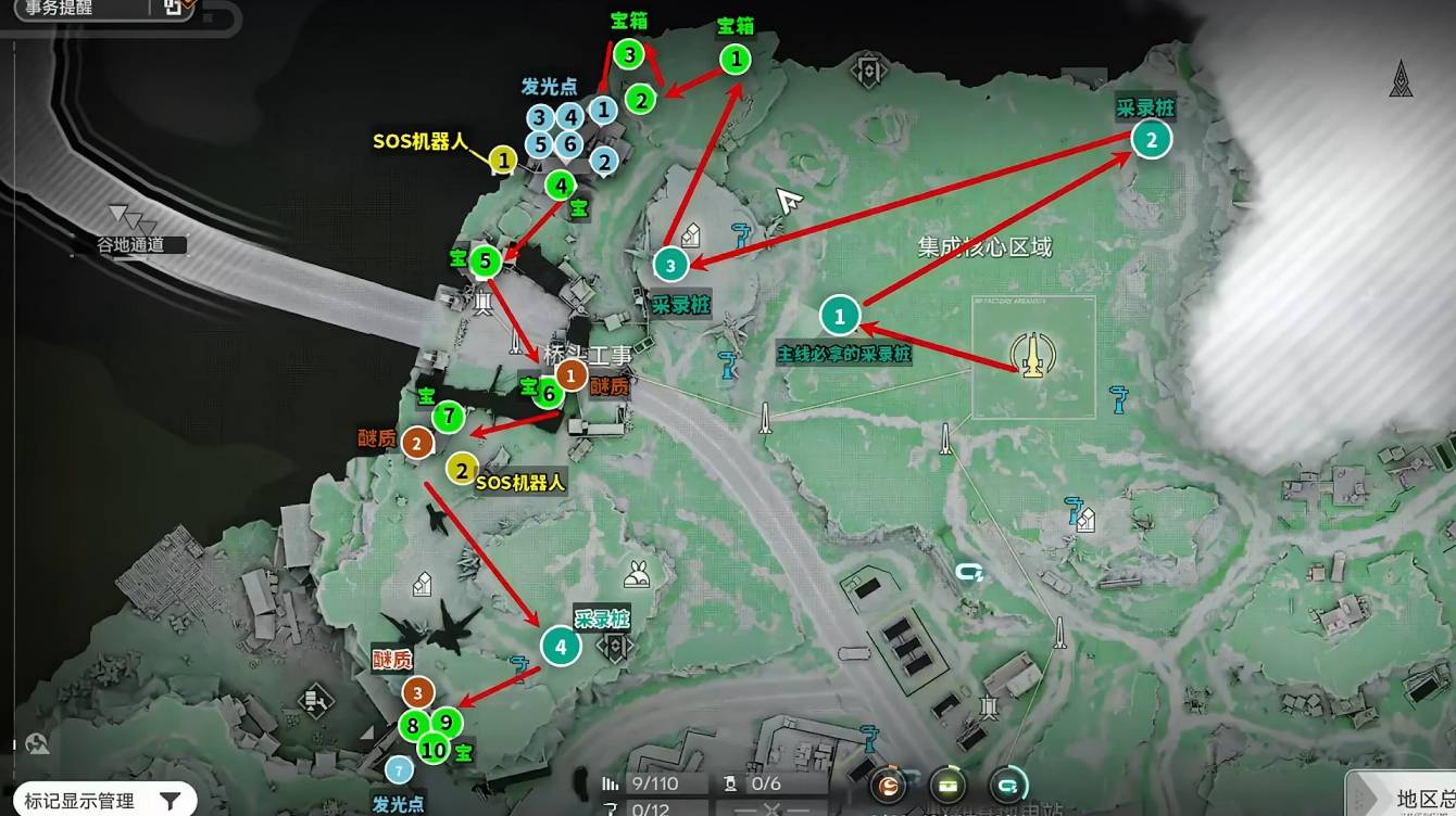 以下是各區域收集的詳細影片教學,按照頁數順序整理,點擊即可觀看: 樞紐區收集攻略 樞紐區:寶箱11-18,醚質4-5,採錄樁5-6 點此觀看樞紐區寶箱11-18、醚質4-5、採錄樁5-6的詳細影片攻略! 樞紐區:寶箱19