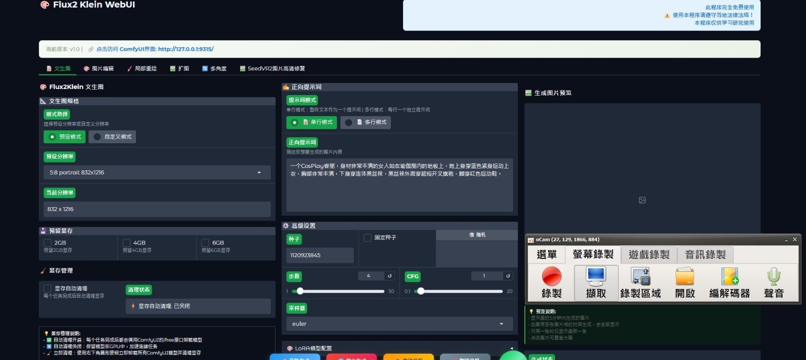 正文摘要:《Flux2 klein》核心主題 快速閱讀精華 🚀 什麼是Flux2 klein?: 這是一個AI繪圖工具Flux的WebUI整合包,版本為v1.0。 主打「一鍵啟動」功能,省去複雜的安裝設定步驟。 整合了6種不同的WebUI介面,功能豐富。 📦 檔案與規格: 檔案大小為48.8GB,屬於大型整合包。 語言為網頁翻譯版本,方便使用。 提供直接下載連結,方便取得。 本文章目錄.article-toc { border: 1px solid #ddd; padding: 15px; background: #f9f9f9; border-radius: 6px; margin: 20px 0; width: 95%;}.toc-title { /* --- 以下是合併進來的 H2 樣式 --- */ font-size: 1.25em; /* 125% */ border-left: 5px solid #2A98DA; border-radius: 2px; padding: 5px 0px 5px 10px; font-weight: bold; margin: 0 0 15px 0; /* 調整了 margin,只留下方 15px */ color: #333; line-height: 1.5; background-color: #f8f8f8; /* --- 樣式合併結束 --- */}.toc-list { list-style: none; padding-left: 0;}.toc-list li { margin: 8px 0;}.toc-list a { color: #2A98DA; text-decoration: none;}.toc-list a:hover { text-decoration: underline;}.back-to-top { display: block; margin-top: 10px; font-size: 0.9em; color: #666;} 軟體規格與介紹document.currentScript.previousElementSibling.href = location.href.split('#')[0] + '#info'; 軟體截圖document.currentScript.previousElementSibling.href = location.href.split('#')[0] + '#screenshot'; 附件下載 🔽document.currentScript.previousElementSibling.href = location.href.split('#')[0] + '#download'; 【語 言】:網頁翻譯版本(多國語言) 【軟體名稱】:Flux2 klein WebUI 6合1 整合包 【版本資訊】:v1.0 【軟體大小】:48.8 GB 【更新日期】:未提供 【使用權限】:免費下載 【系統支持】:Windows PC(推測,因檔案格式與大小) 【軟體介紹】: 各位AI繪圖愛好者看過來!今天要介紹的是一款名為「Flux2 klein」的WebUI整合包,版本是v1.0。這個整合包最大的特色就是「一鍵啟動」,對於不熟悉複雜指令或環境設定的朋友來說,簡直是一大福音,省去了許多麻煩的安裝步驟。 這個整合包內建了6種不同的WebUI使用者介面,讓你可以根據自己的使用習慣或需求來切換,功能相當豐富。它基於Flux AI模型,能夠讓你輕鬆生成各種風格的圖像。軟體介面採用了網頁翻譯,雖然可能不是完美的在地化翻譯,但對於理解功能操作已經足夠。 需要注意的是,這個整合包的體積非常龐大,達到了48.8GB,下載前請確保你的硬碟有足夠的空間,並且網路環境穩定。由於是大型AI模型整合包,也建議你的電腦配備(尤其是顯示卡)有一定的效能,才能獲得較好的生成速度與體驗。 【軟體截圖】: 👉 GM後台版 遊戲 推薦 ⬇️⬇️⬇️ 快速玩各種二次元動漫手遊app 【附件下載】: Flux2 klein v1.0 WebUI_6合1 整合包 (0124) |